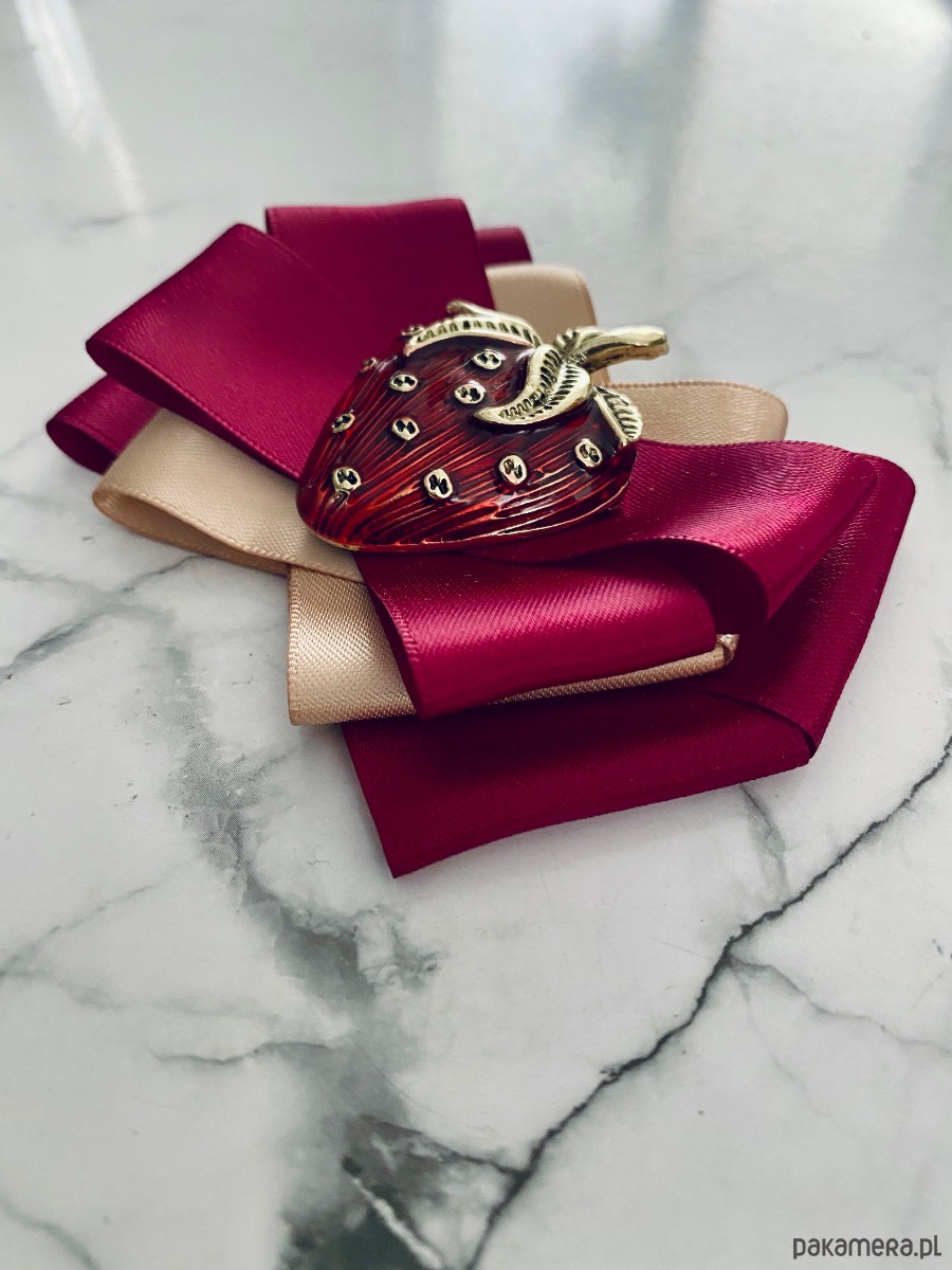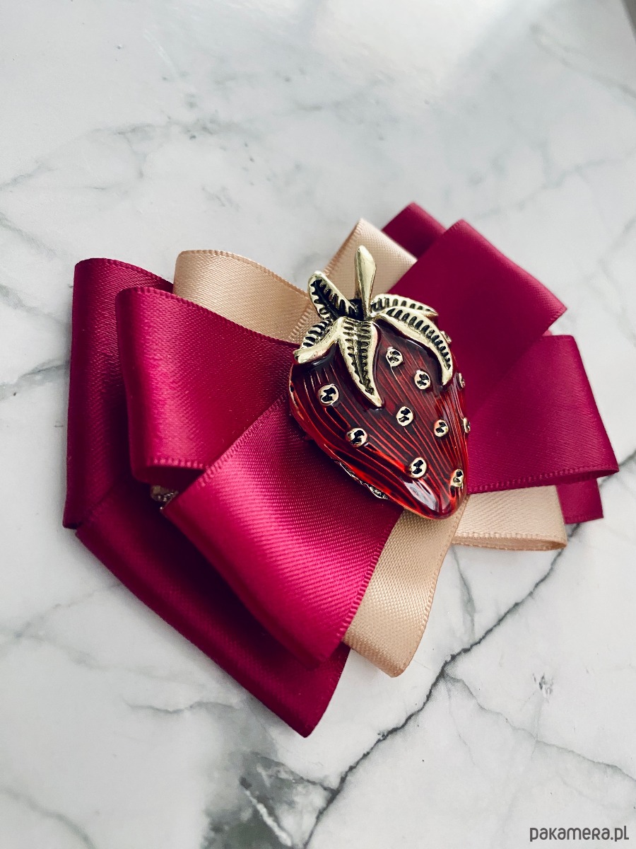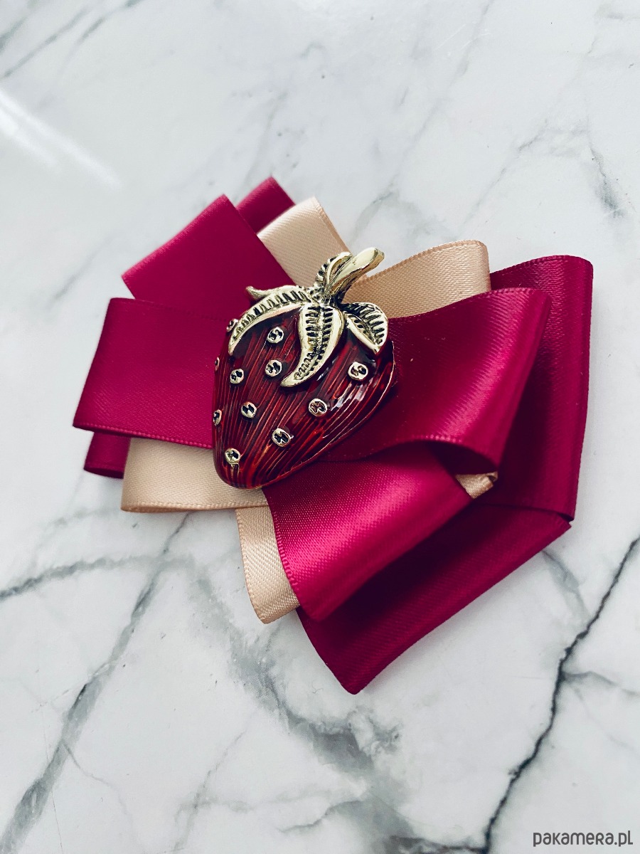 Kolory burgundu i beżu z cudną dużą ozdobą Truskawką.