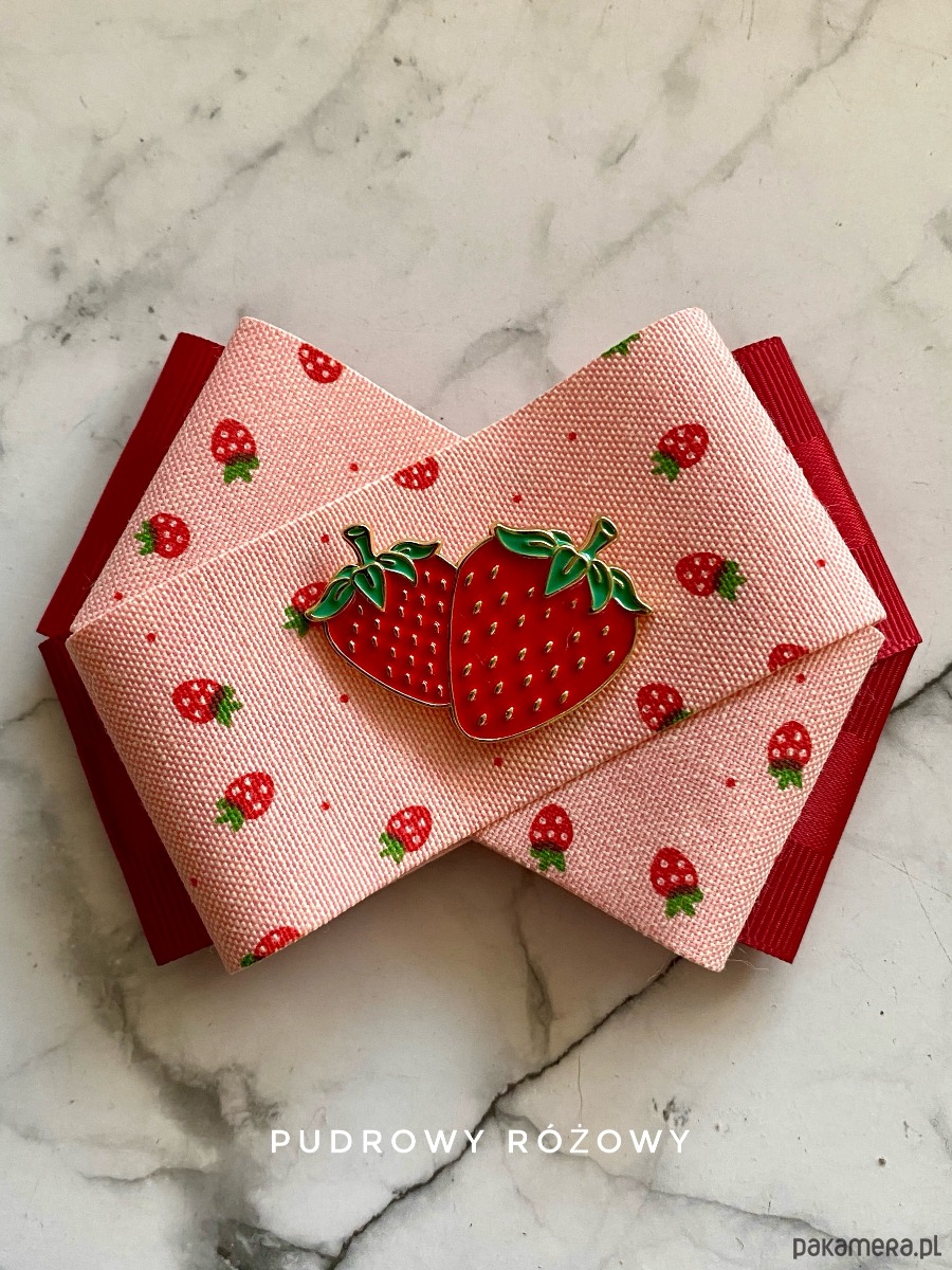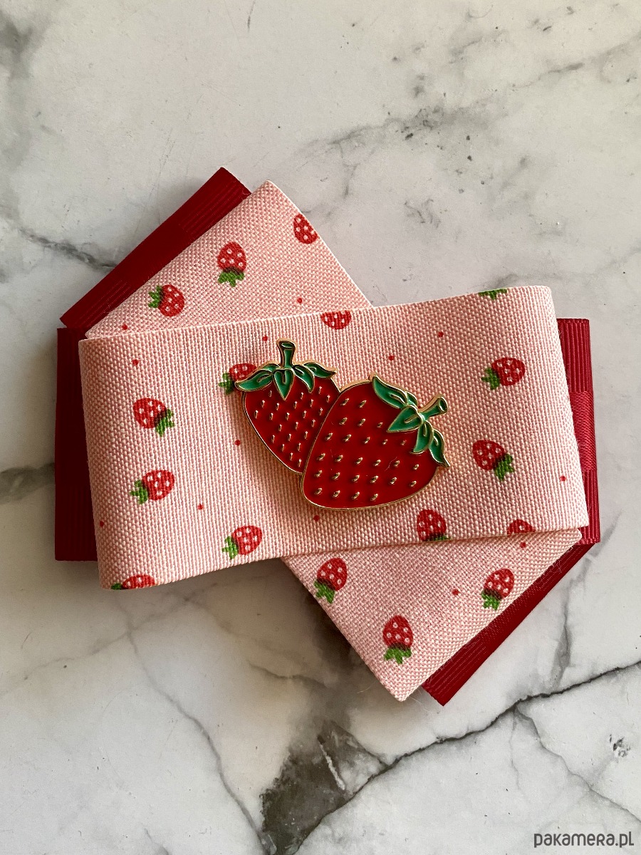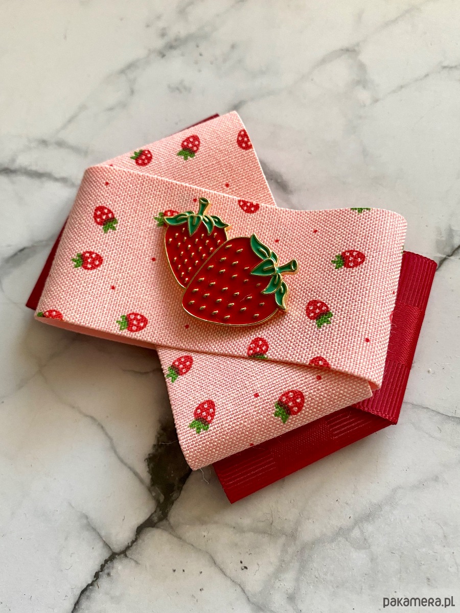 Kolory czerwieni,różu z cudną drukowaną truskawkową wstążką w połączeniu z piękną ozdobą Truskawkami.