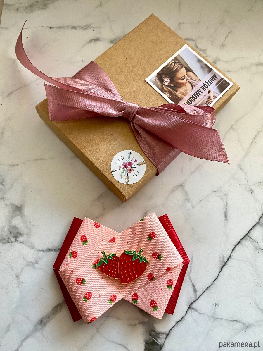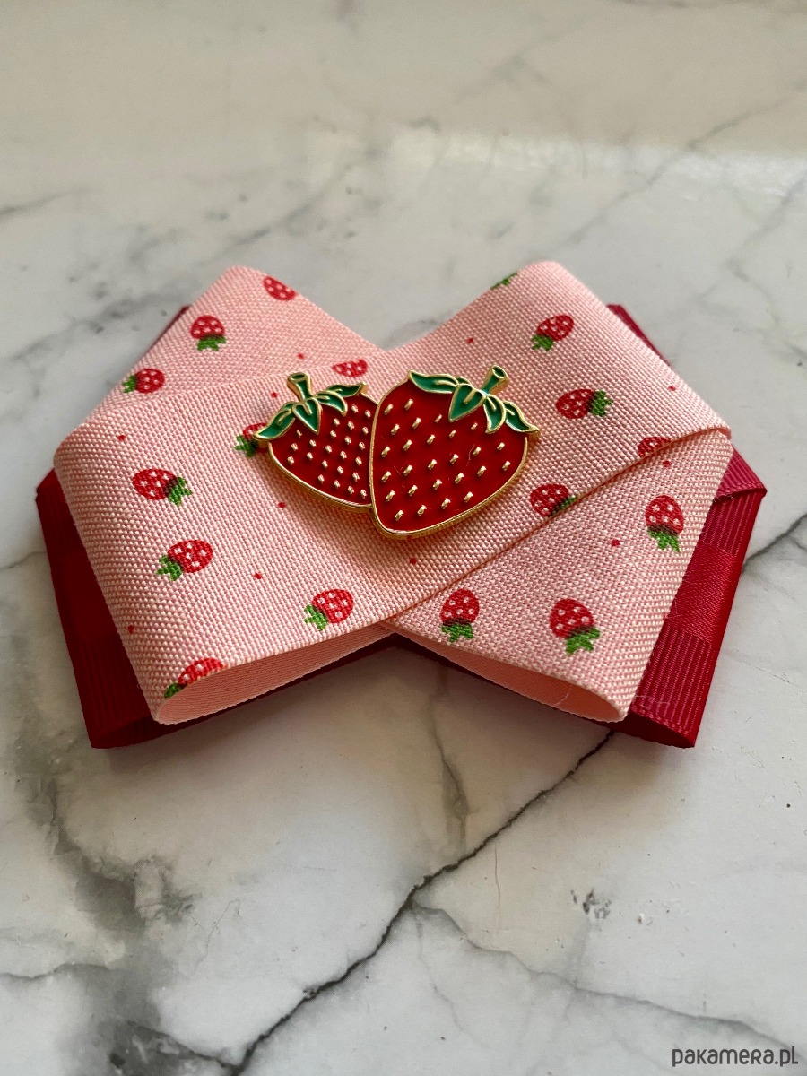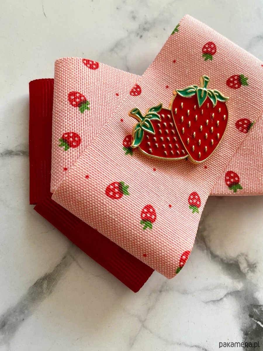 Kolory czerwieni,różu z cudną drukowaną truskawkową wstążką w połączeniu z piękną ozdobą Truskawkami.