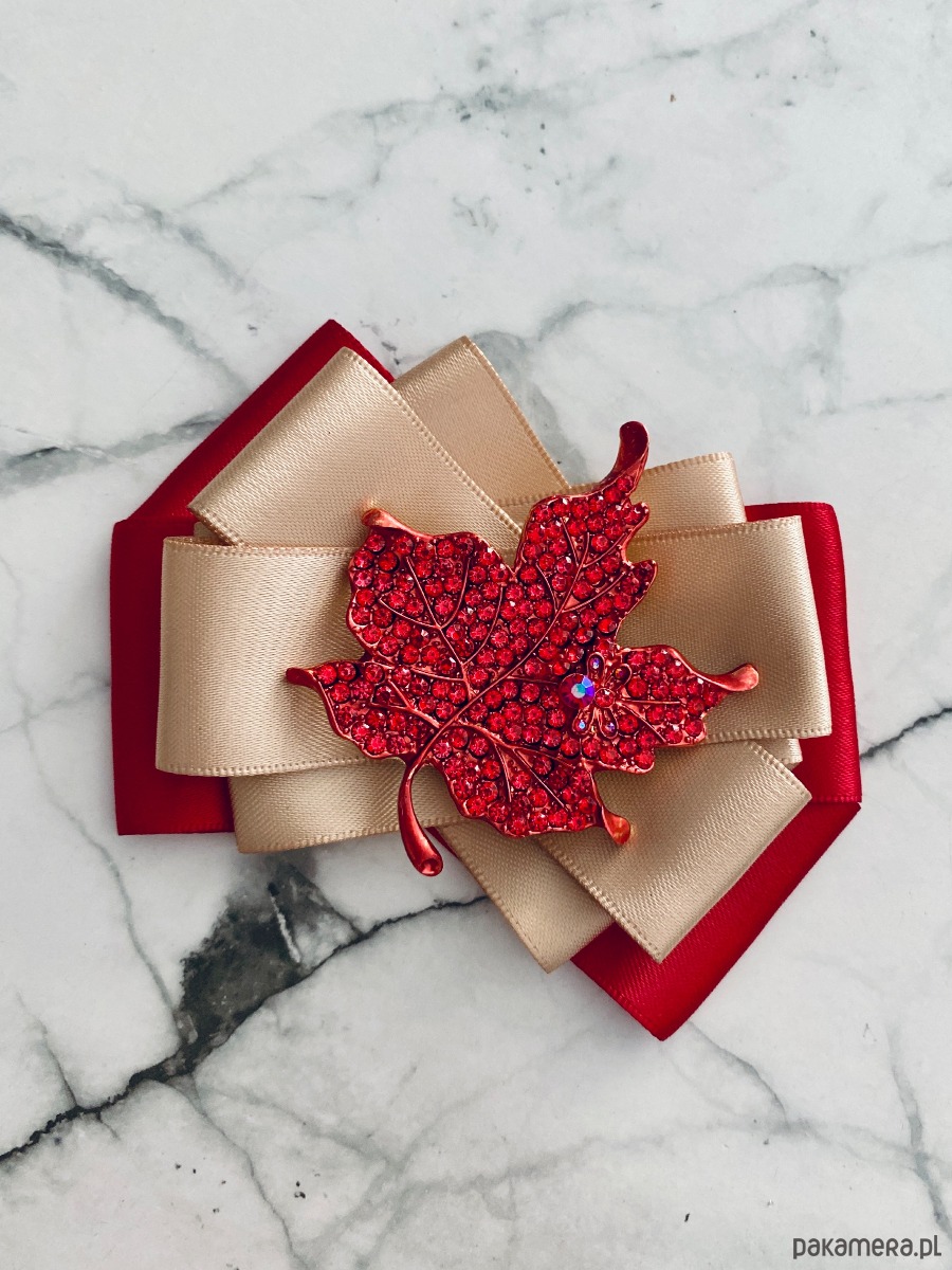 Broszka wykonana z wysokiej jakości taśm i dodatków.