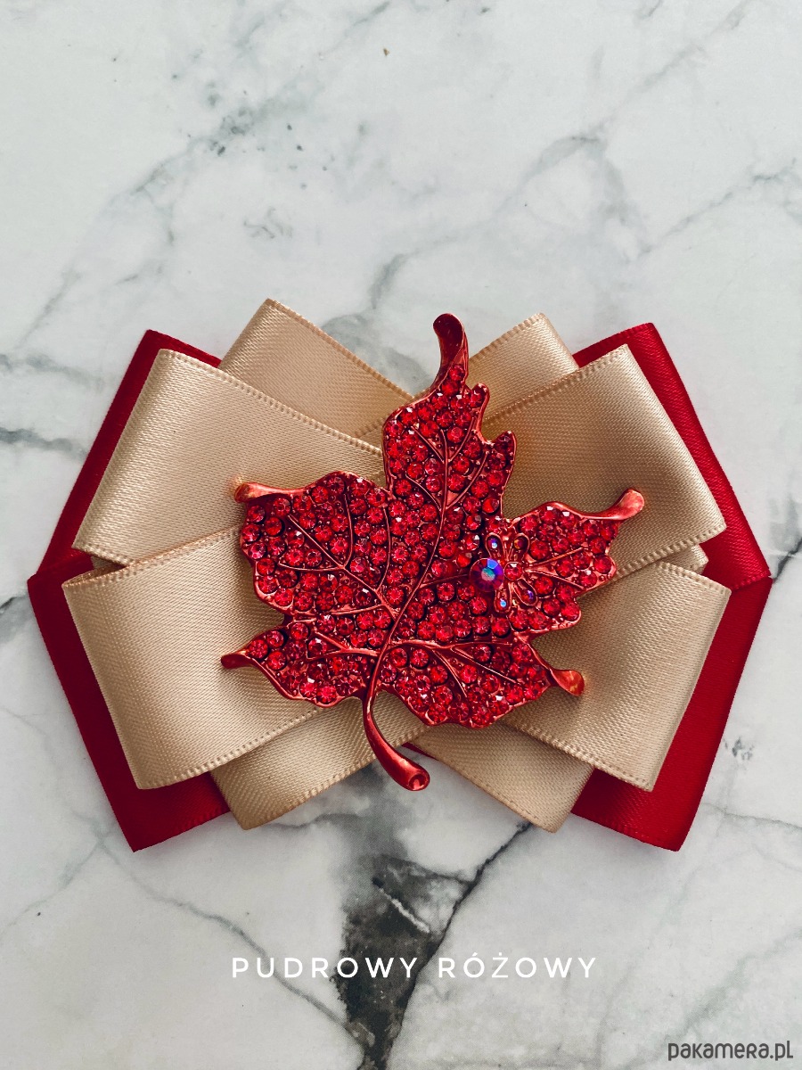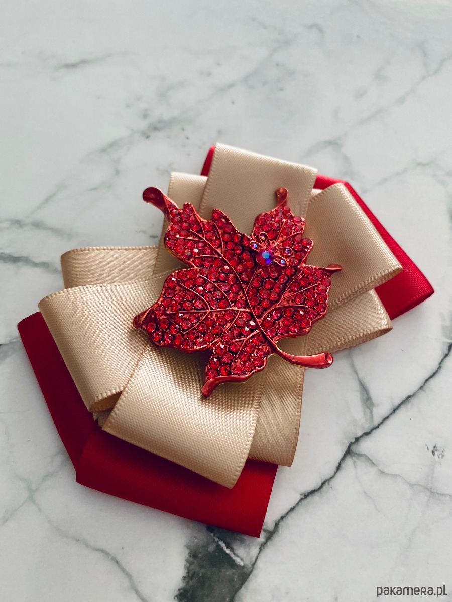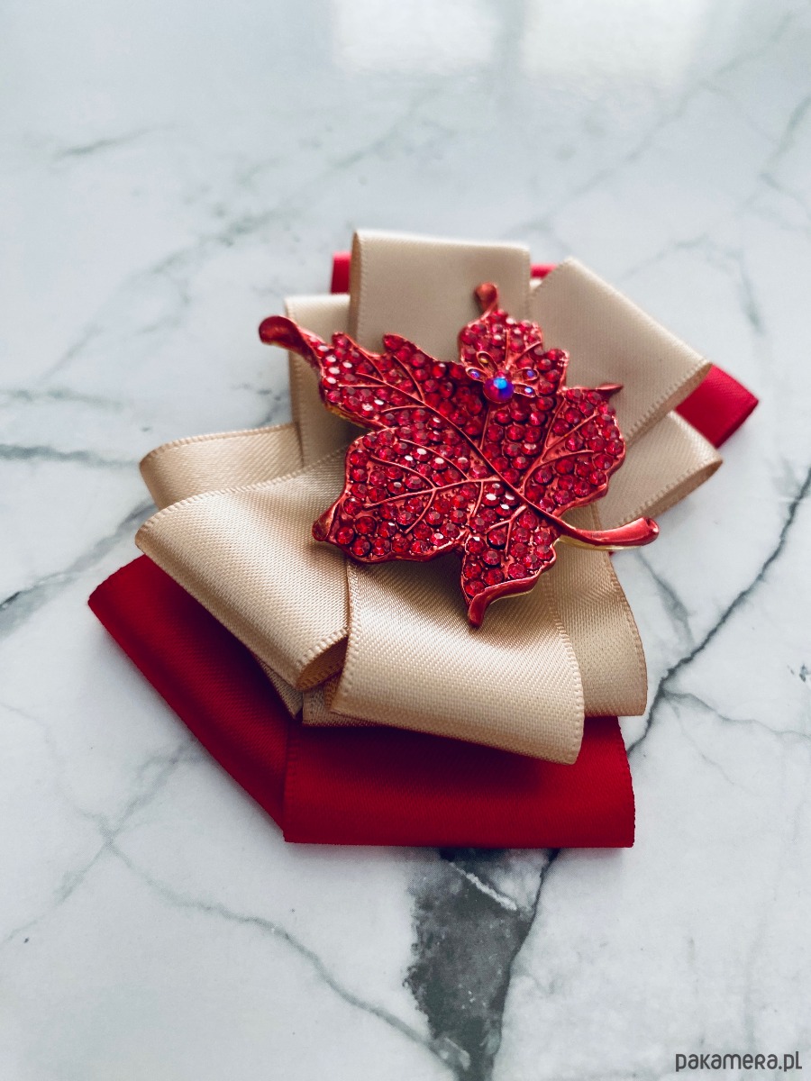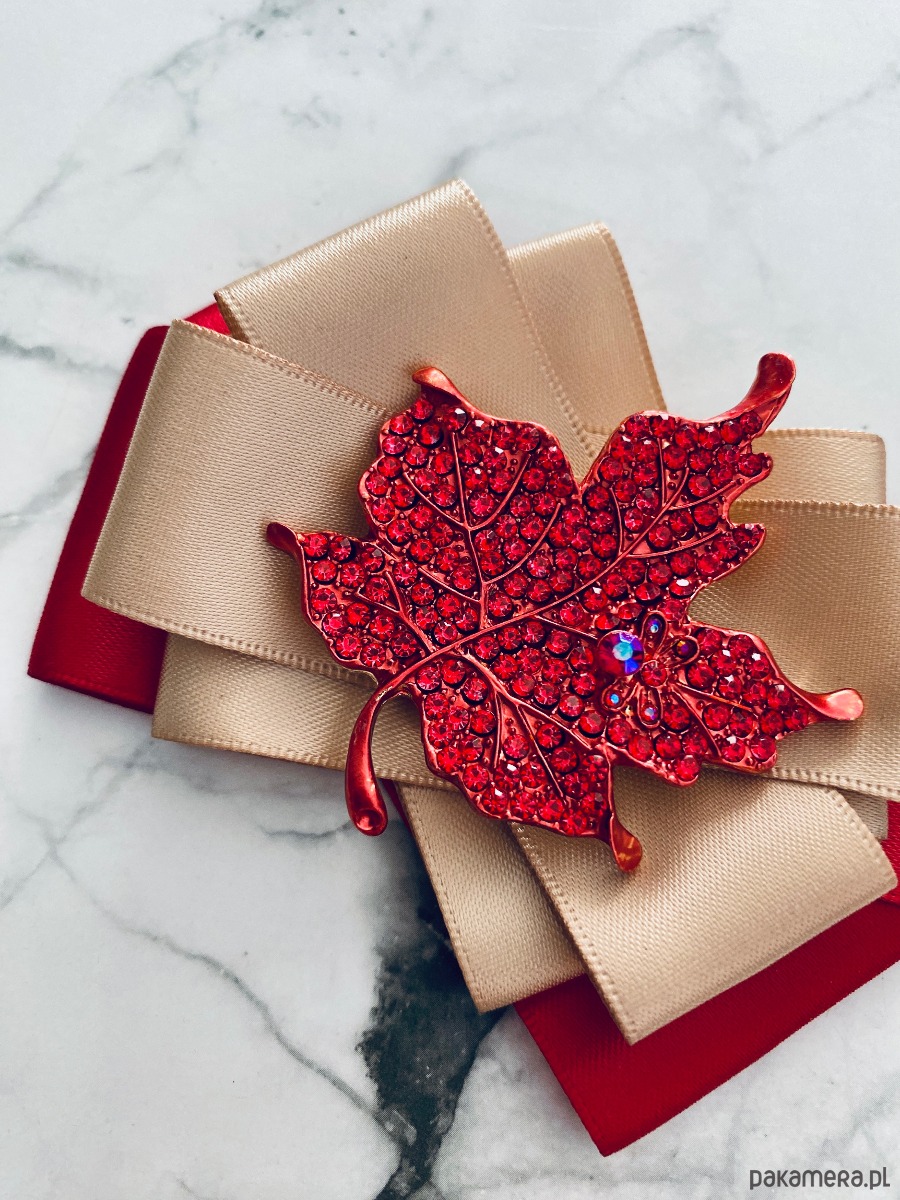 Broszka wykonana z wysokiej jakości taśm i dodatków.