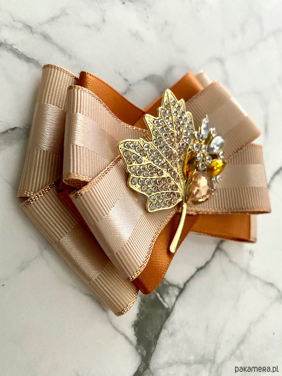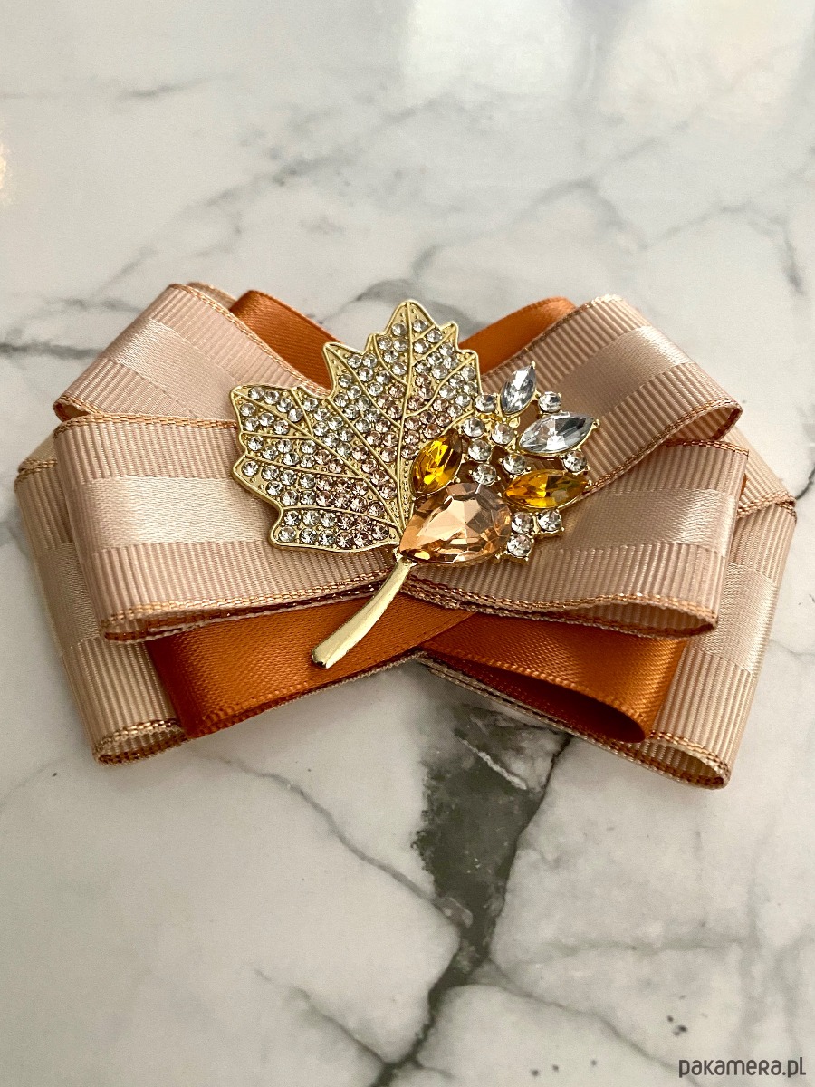 Broszka wykonana z wysokiej jakości taśm i dodatków.
