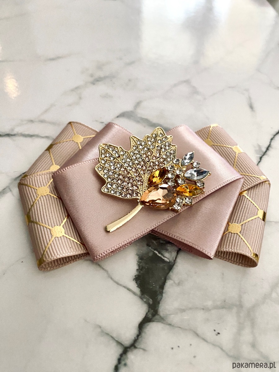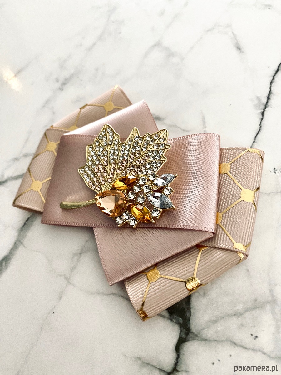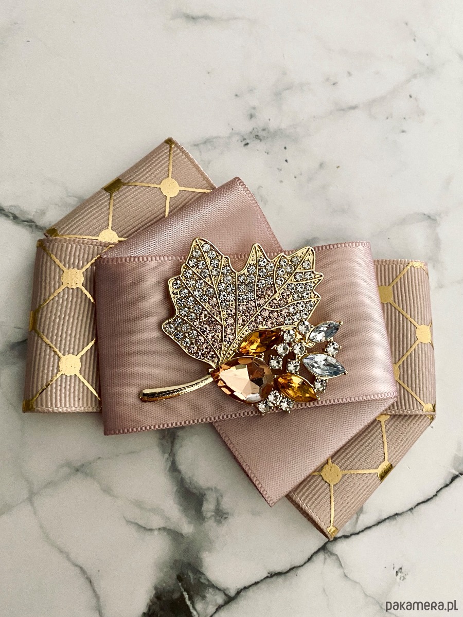 Broszka wykonana z wysokiej jakości taśm i dodatków.
