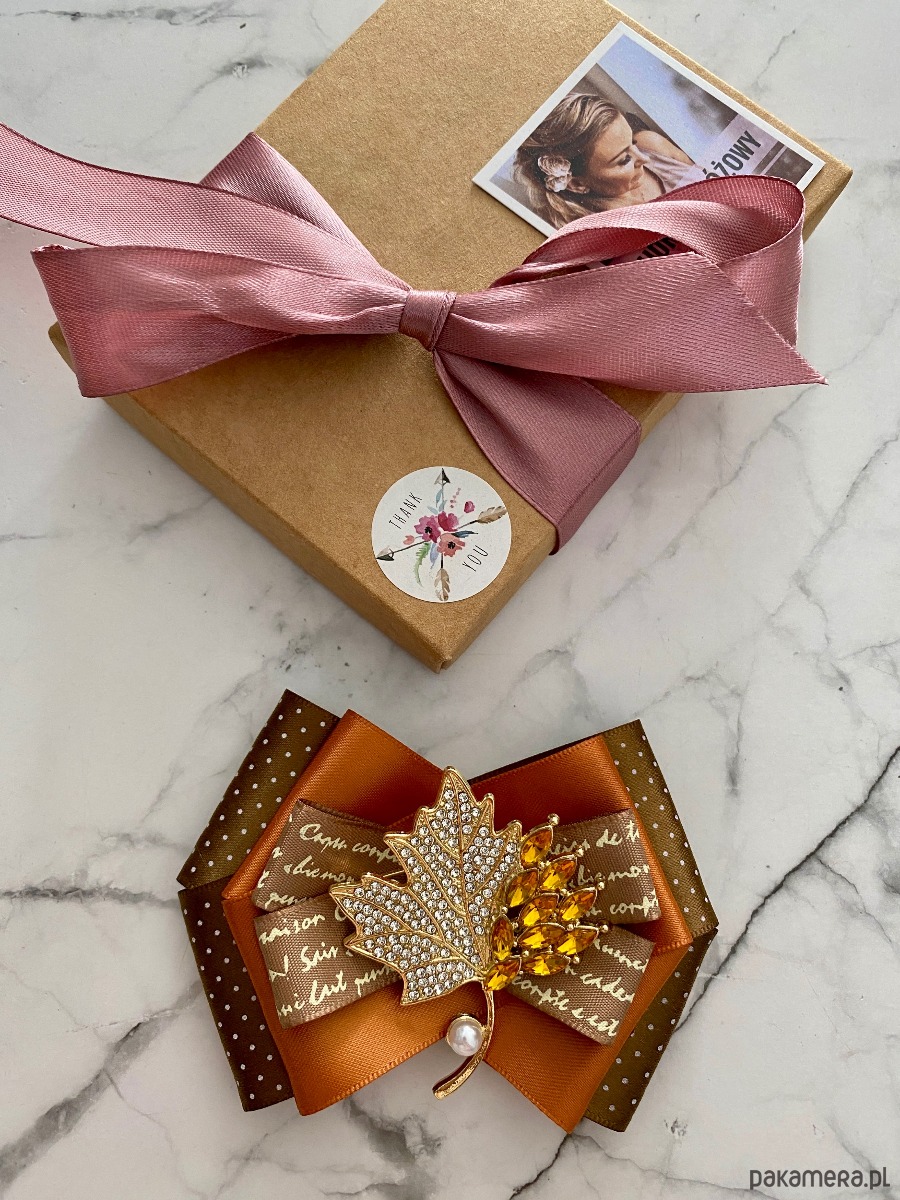 Broszka wykonana z wysokiej jakości taśm i dodatków.