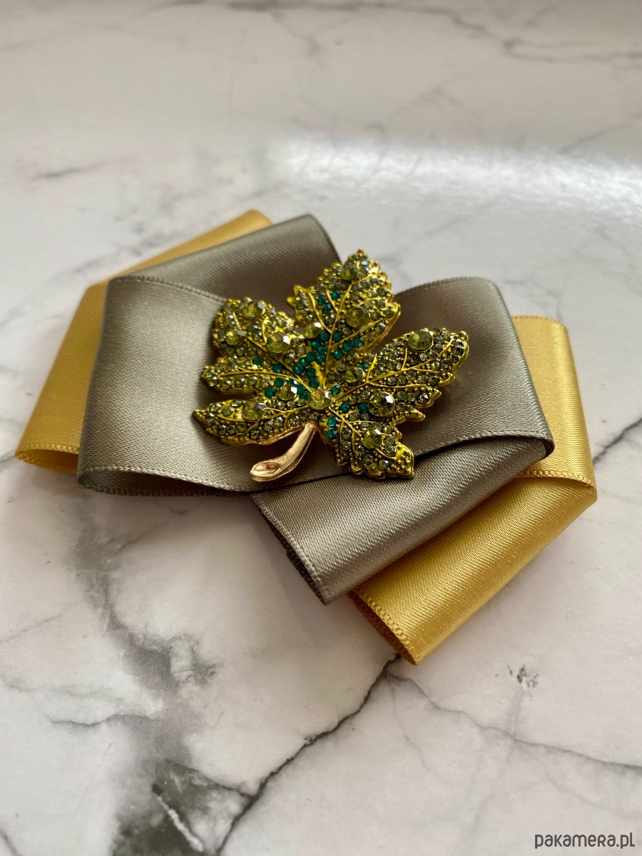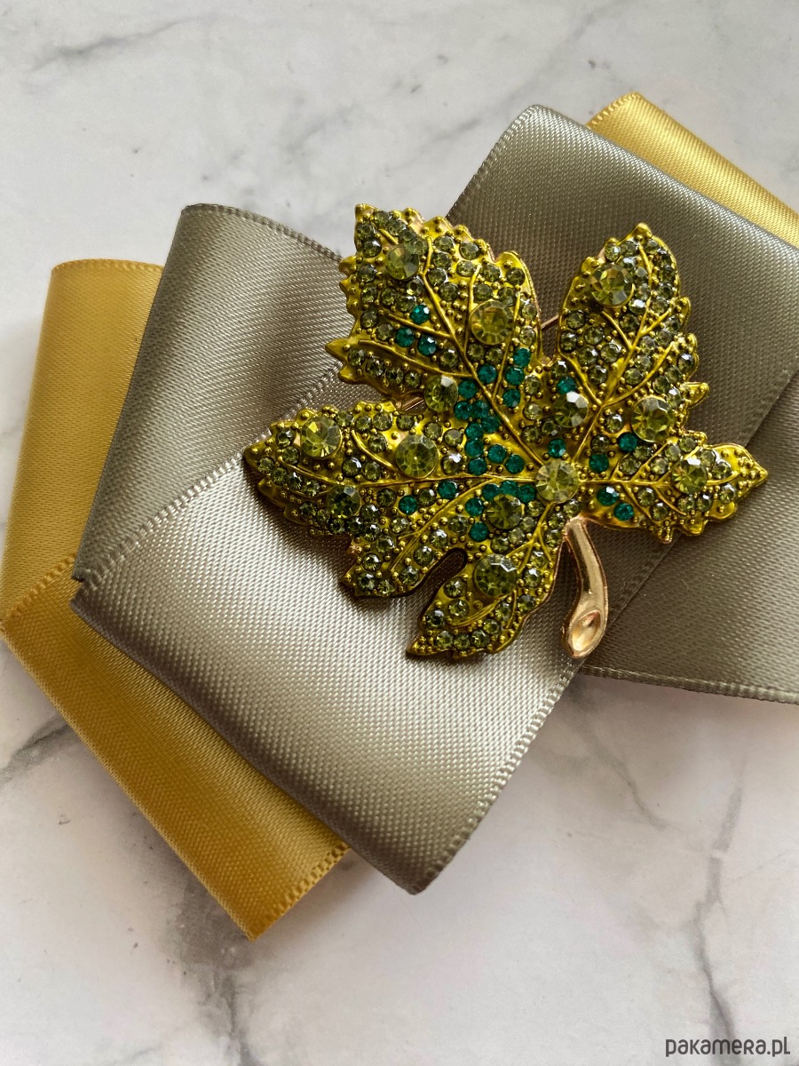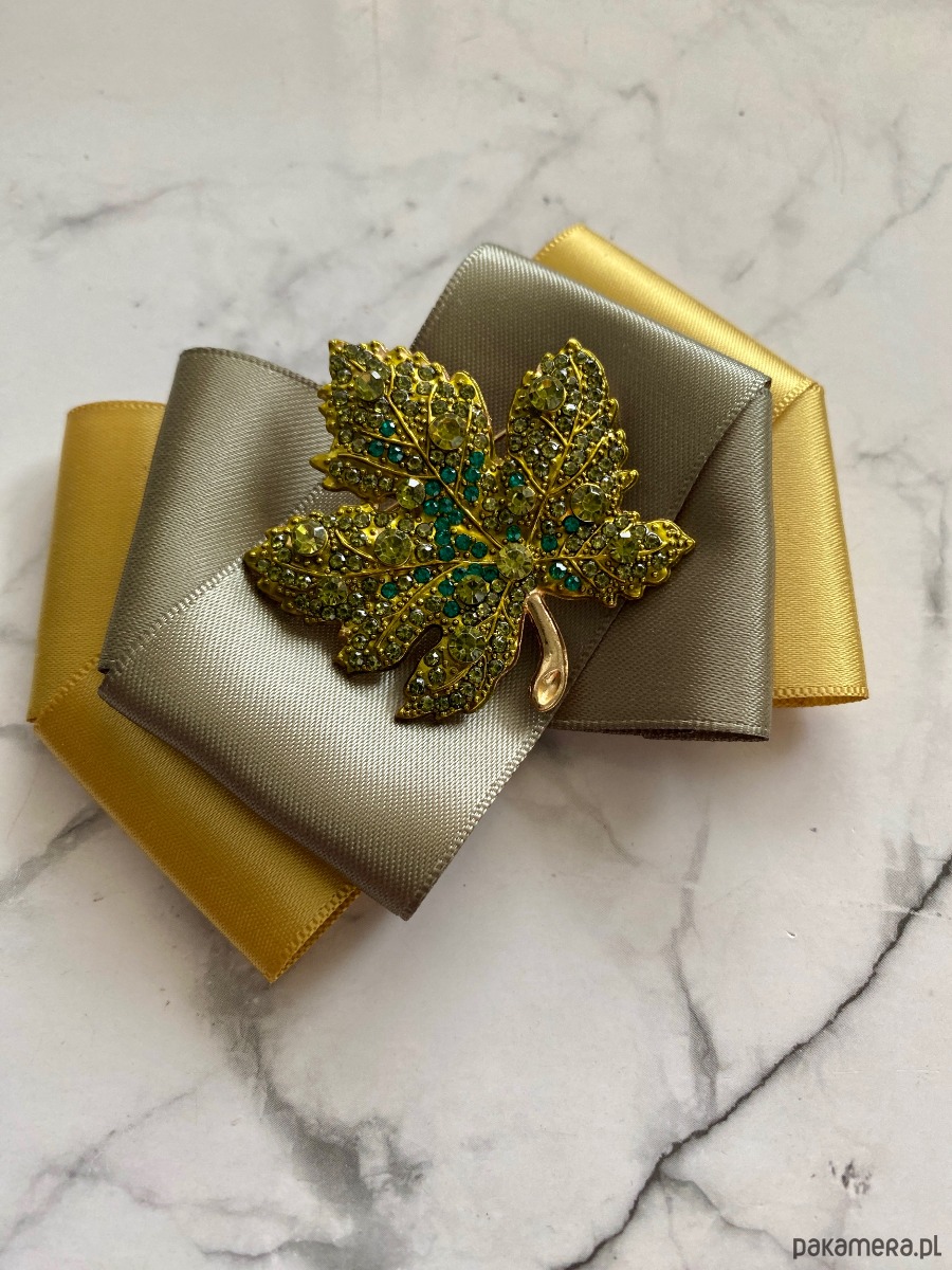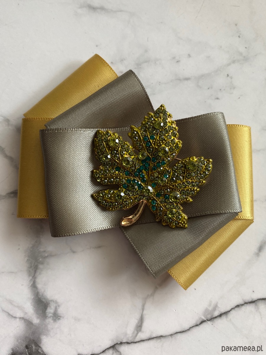 Broszka wykonana z wysokiej jakości taśm i dodatków.