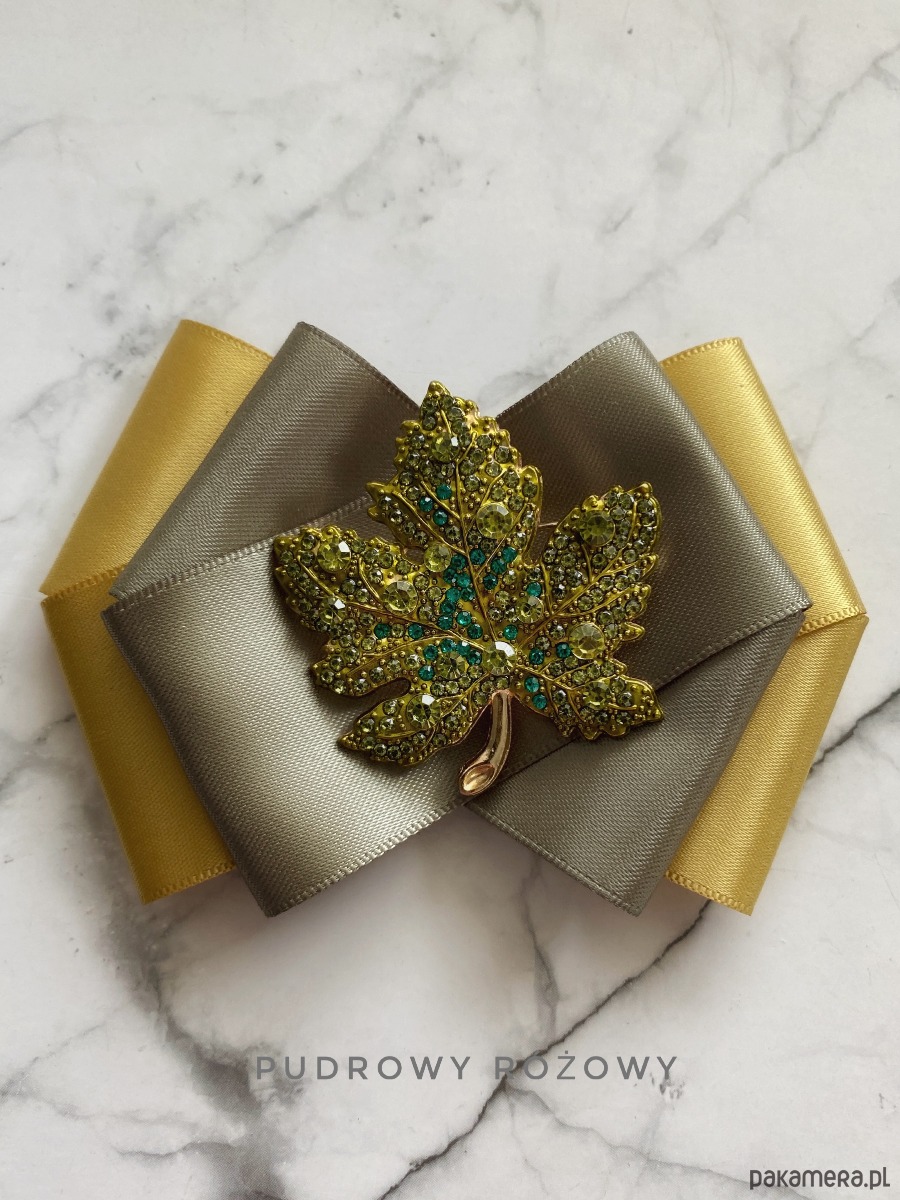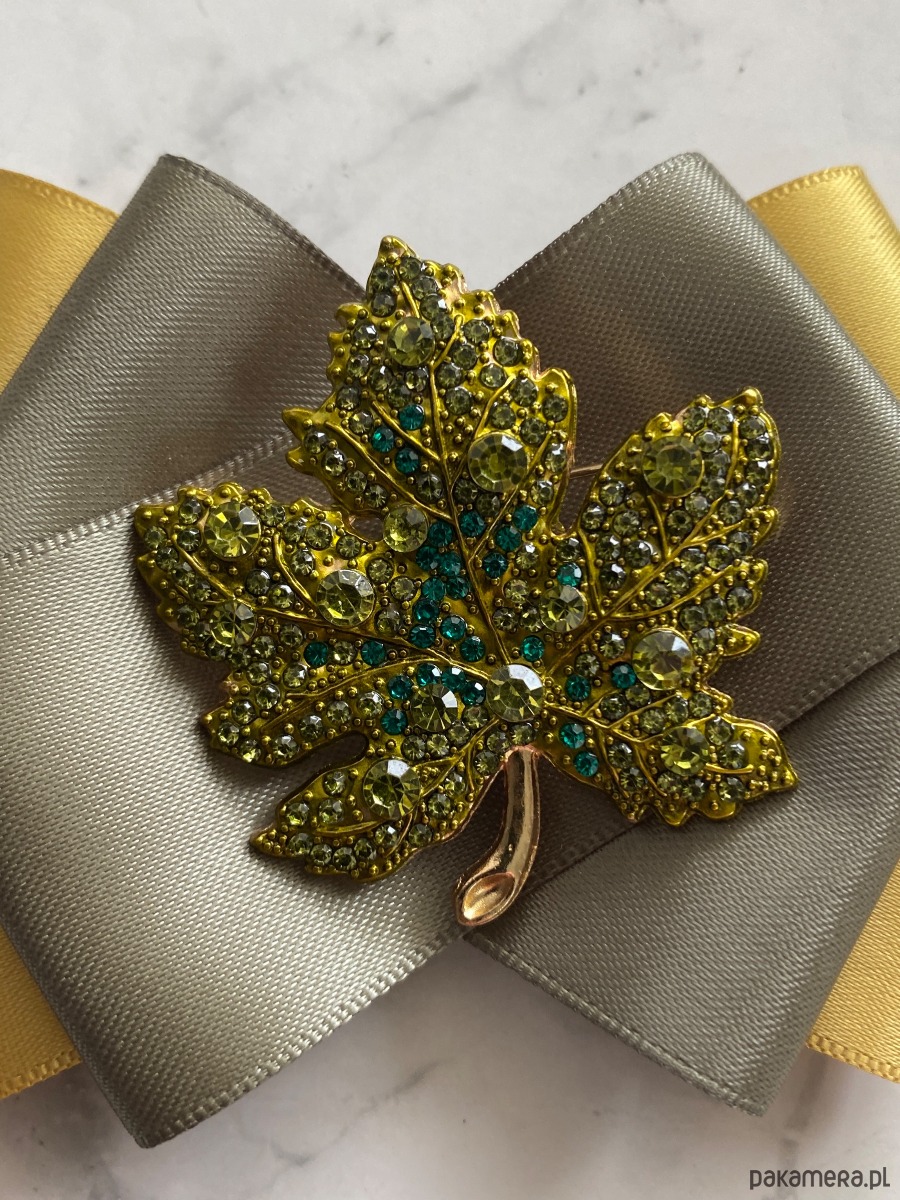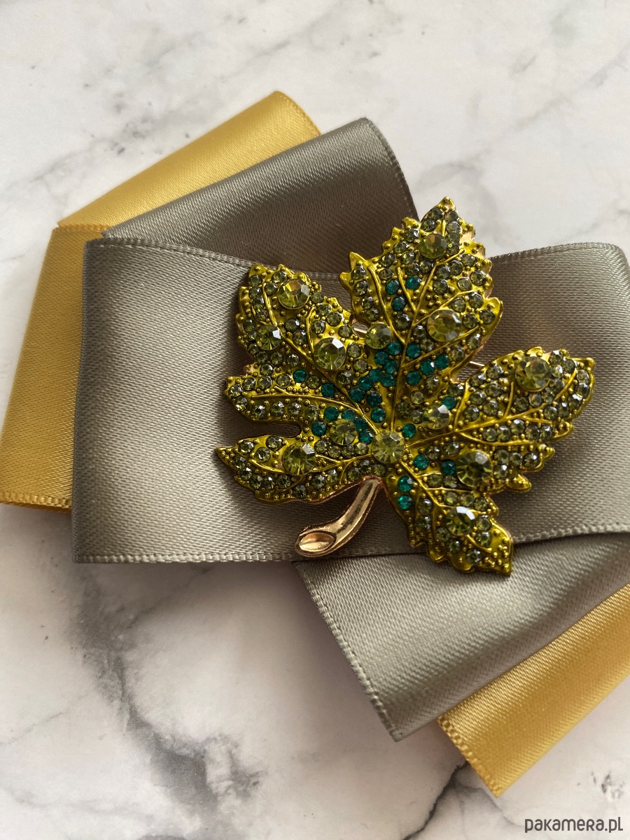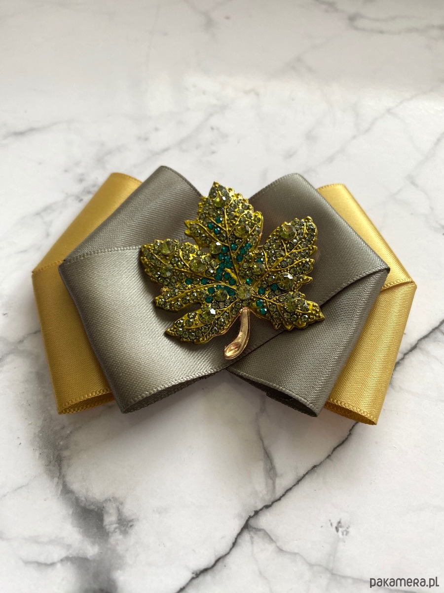 Broszka wykonana z wysokiej jakości taśm i dodatków.