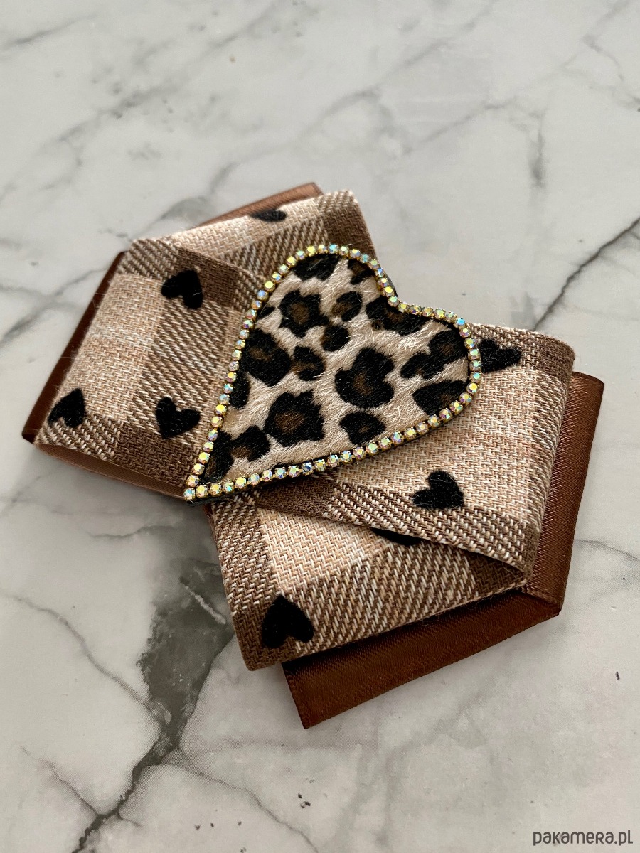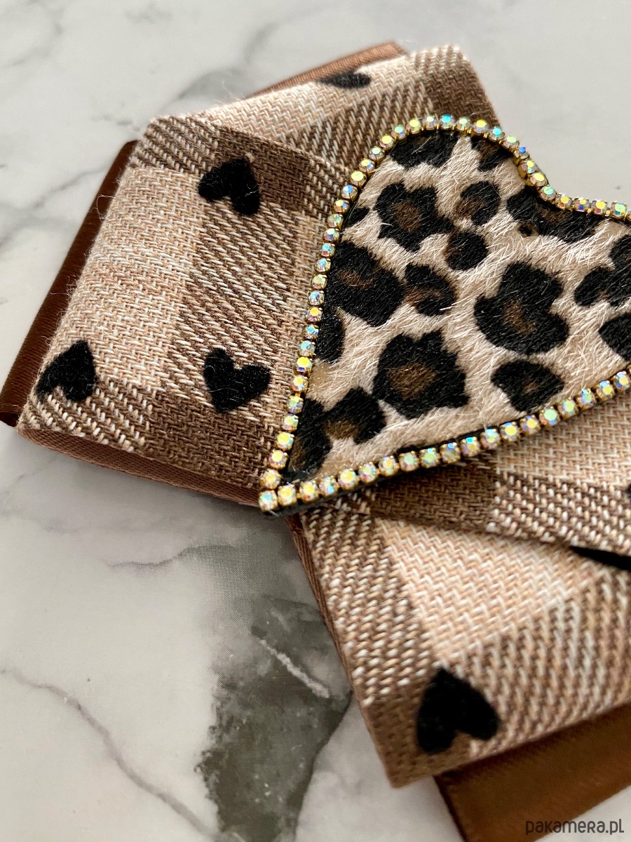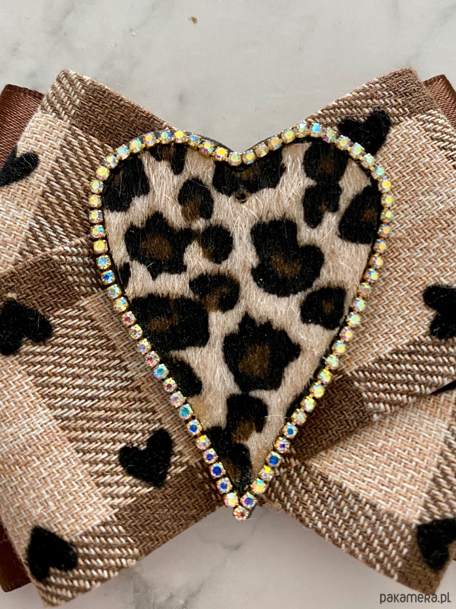 Piękna dekoracyjna ozdoba na środku, serce wykonane z panterki obrobione delikatnymi krysztalkami.