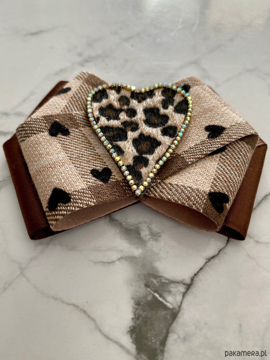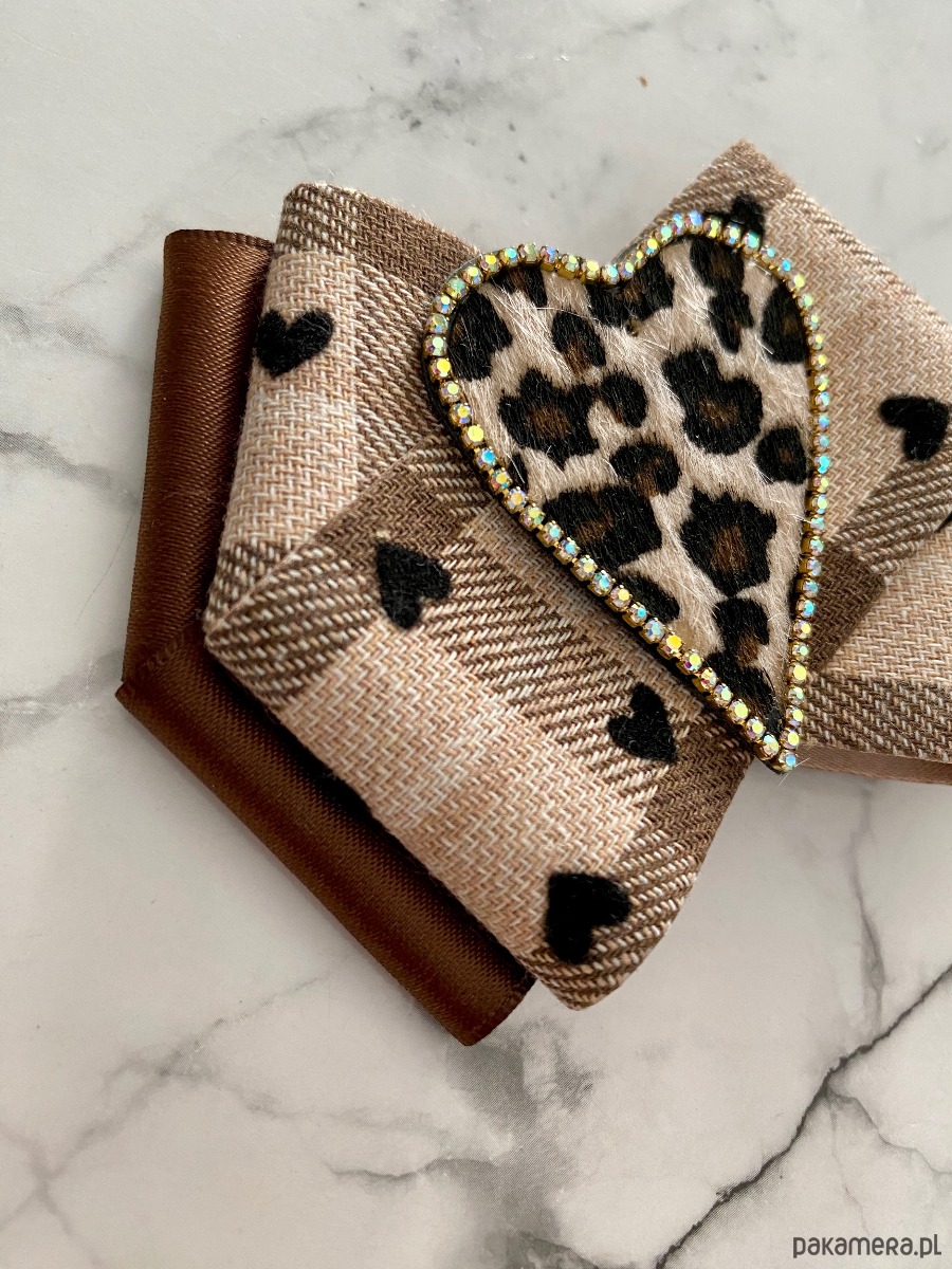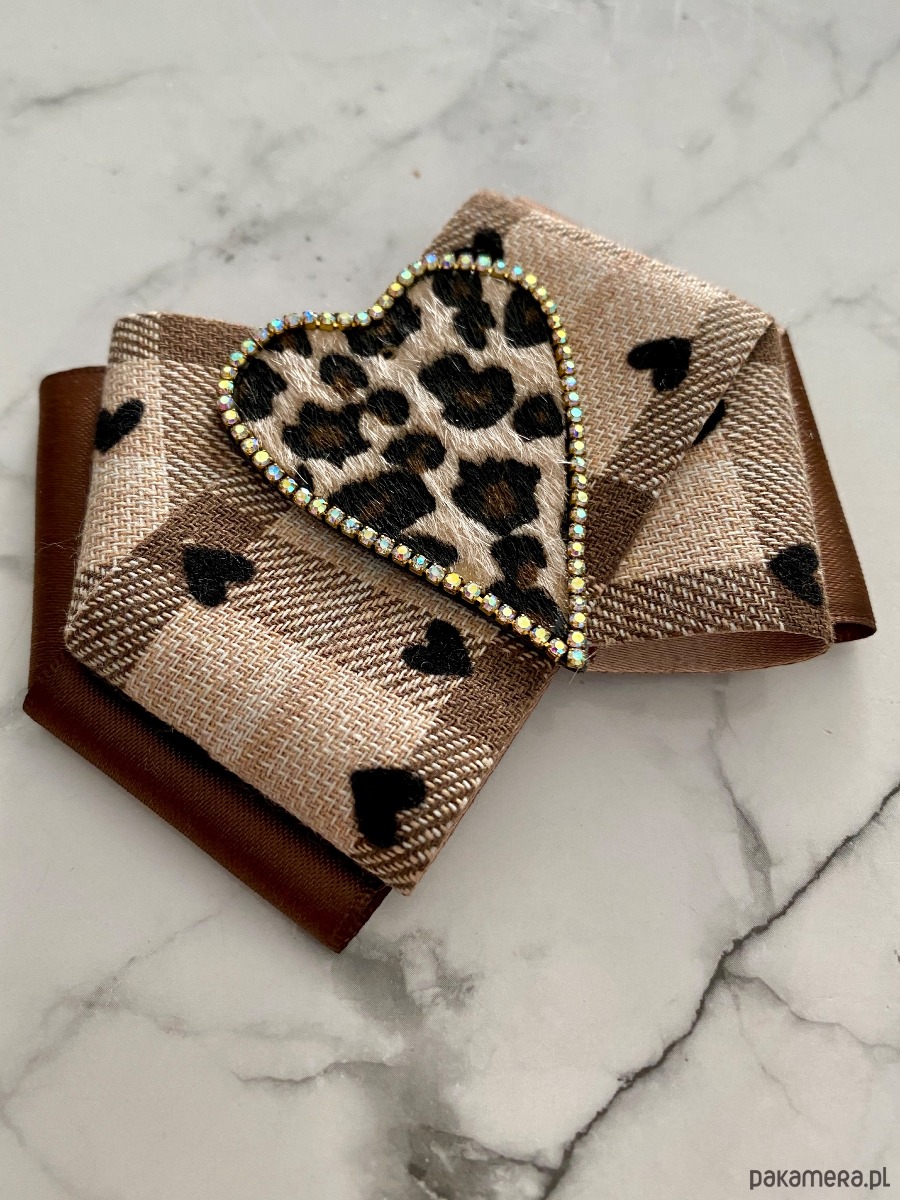 Piękna dekoracyjna ozdoba na środku, serce wykonane z panterki obrobione delikatnymi krysztalkami.