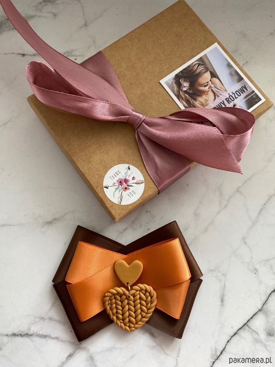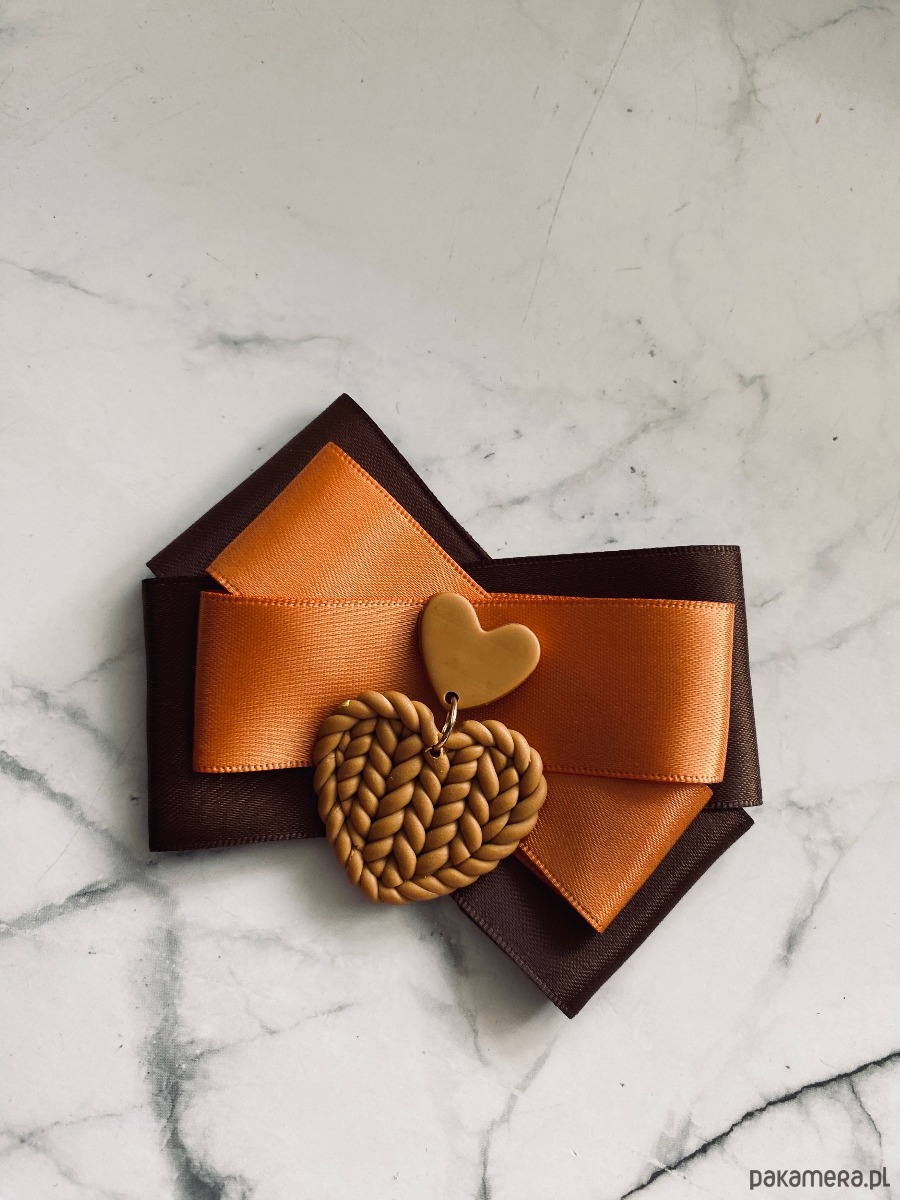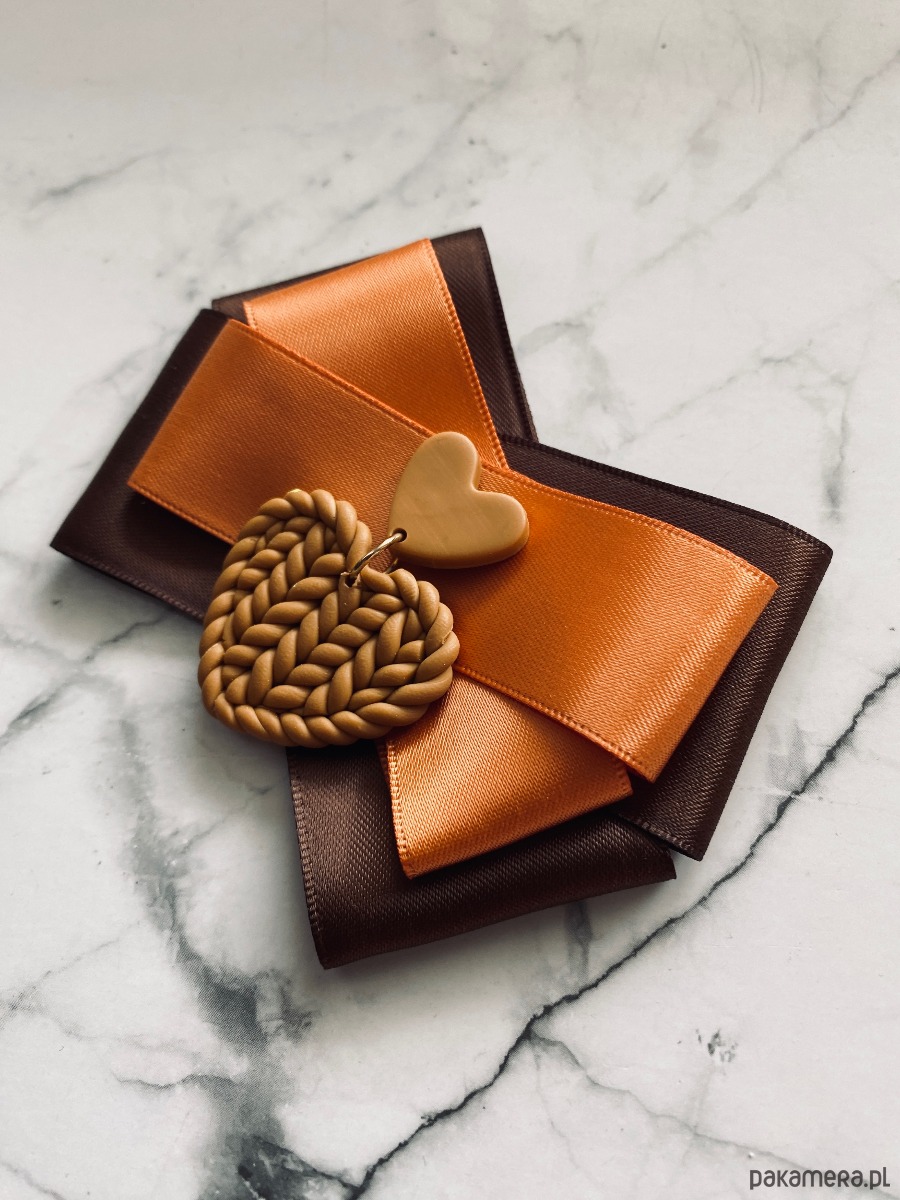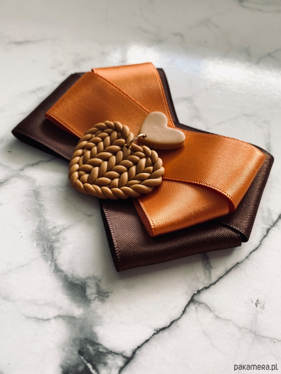 Broszka wykonana z wysokiej jakości taśm i dodatków.