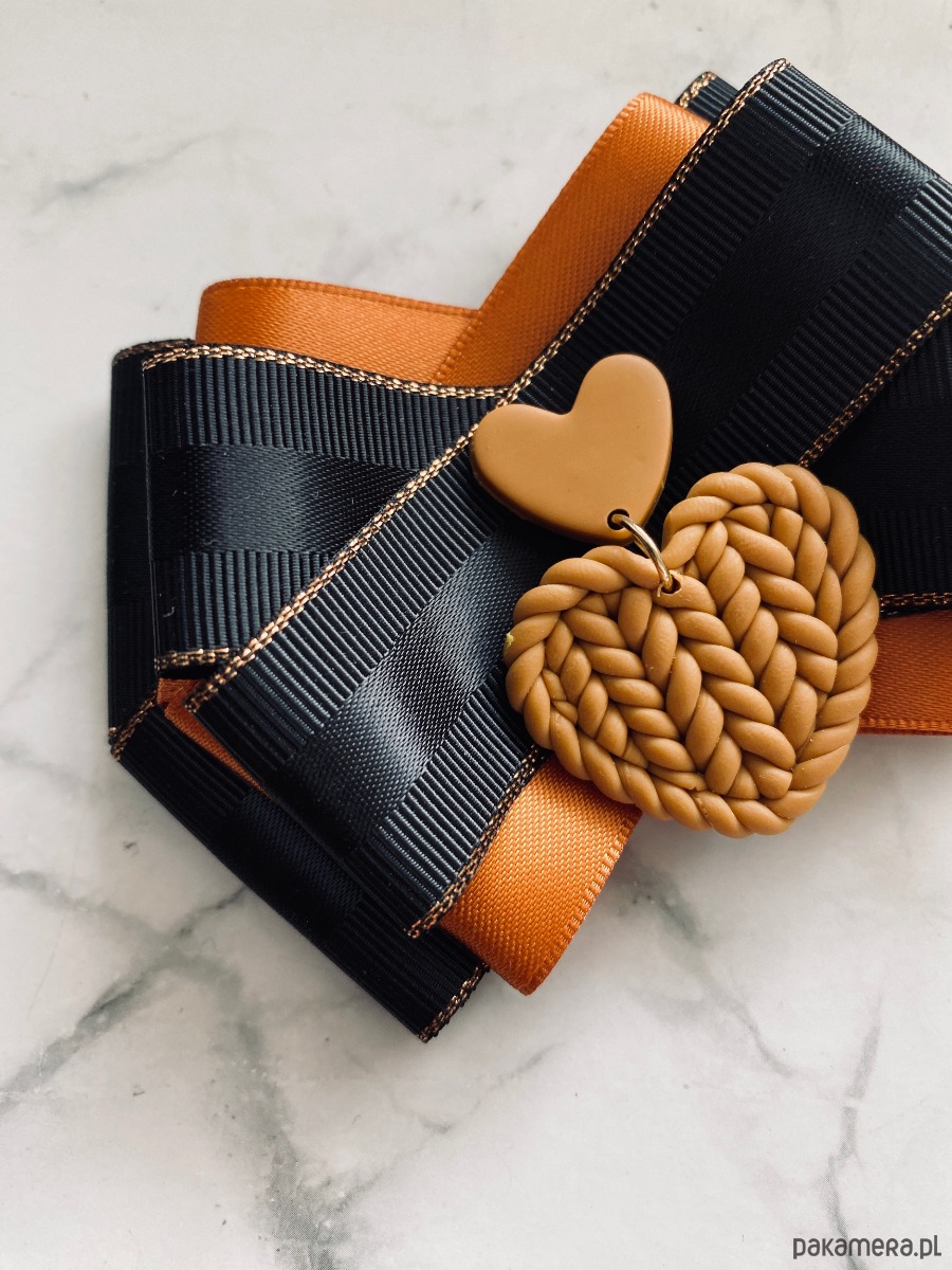 Broszka wykonana z wysokiej jakości taśm i dodatków.