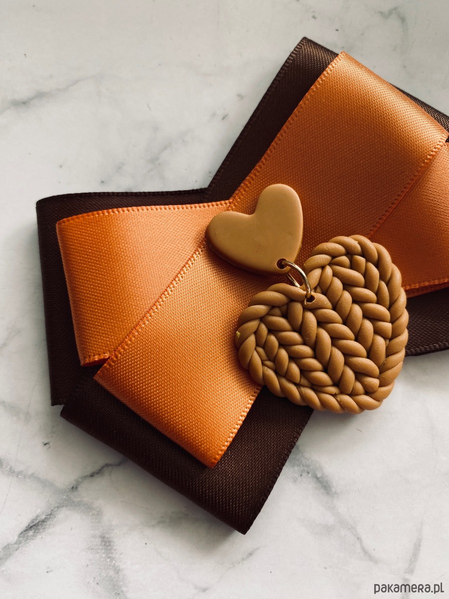 Broszka wykonana z wysokiej jakości taśm i dodatków.