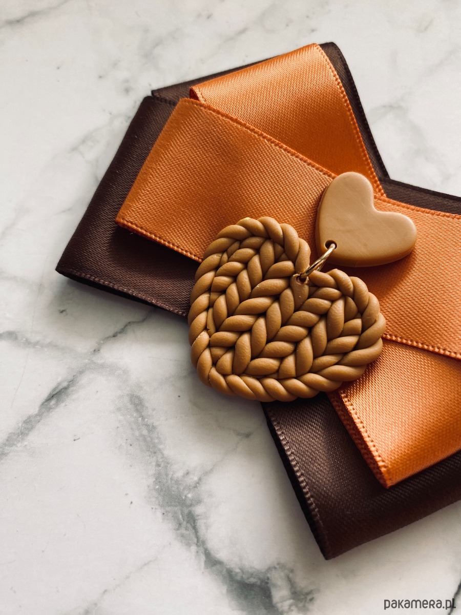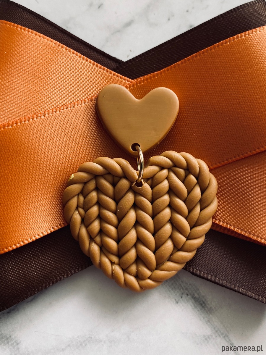 Piękna niespotykana ozdoba na środku, serce wykonane z tworzywa do złudzenia przypominające sweterek.