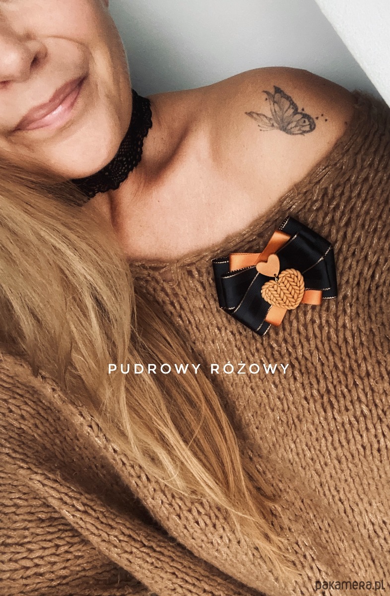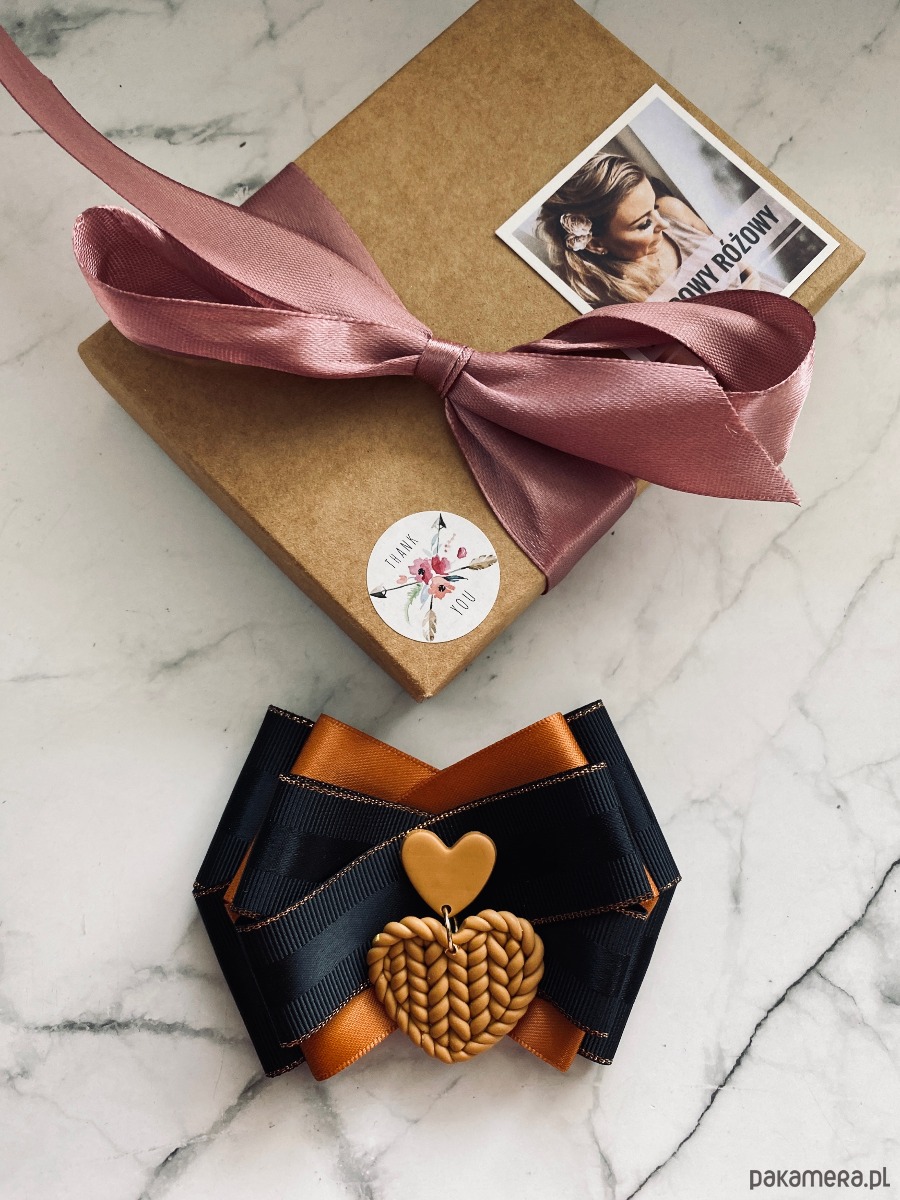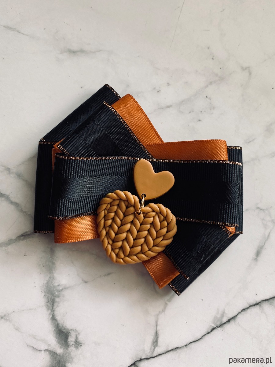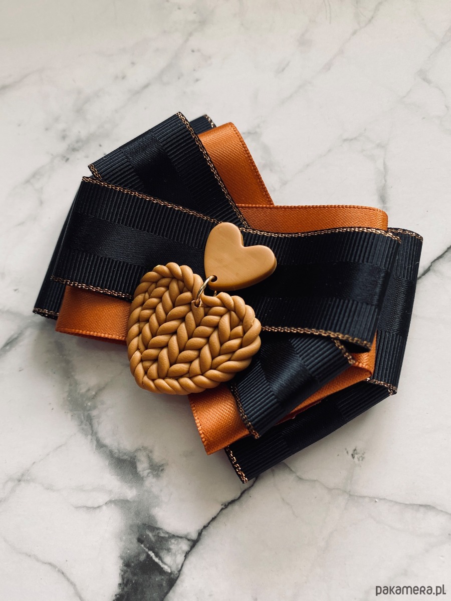 Broszka wykonana z wysokiej jakości taśm i dodatków.