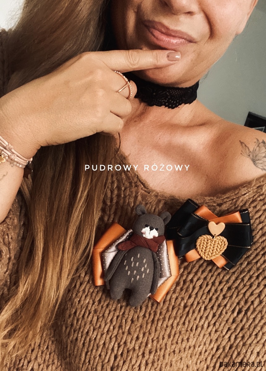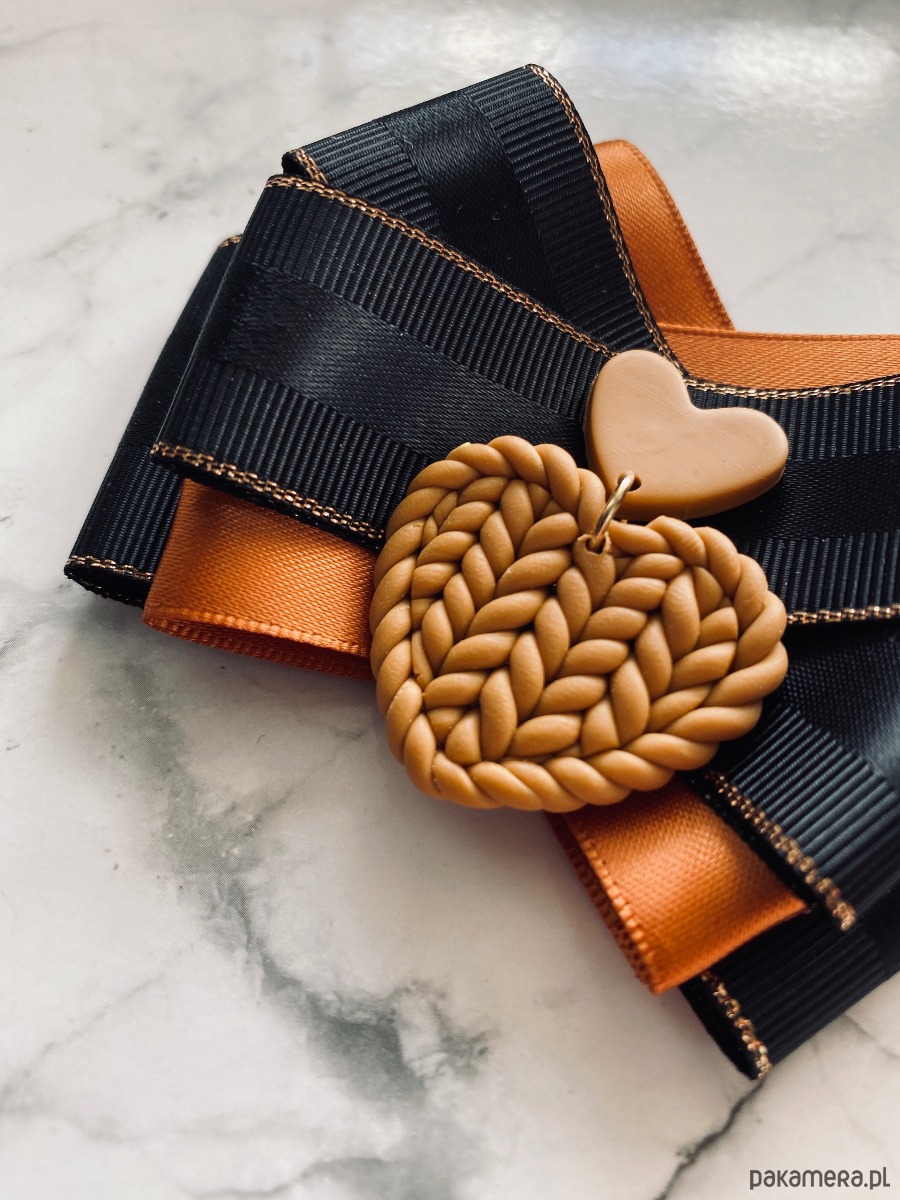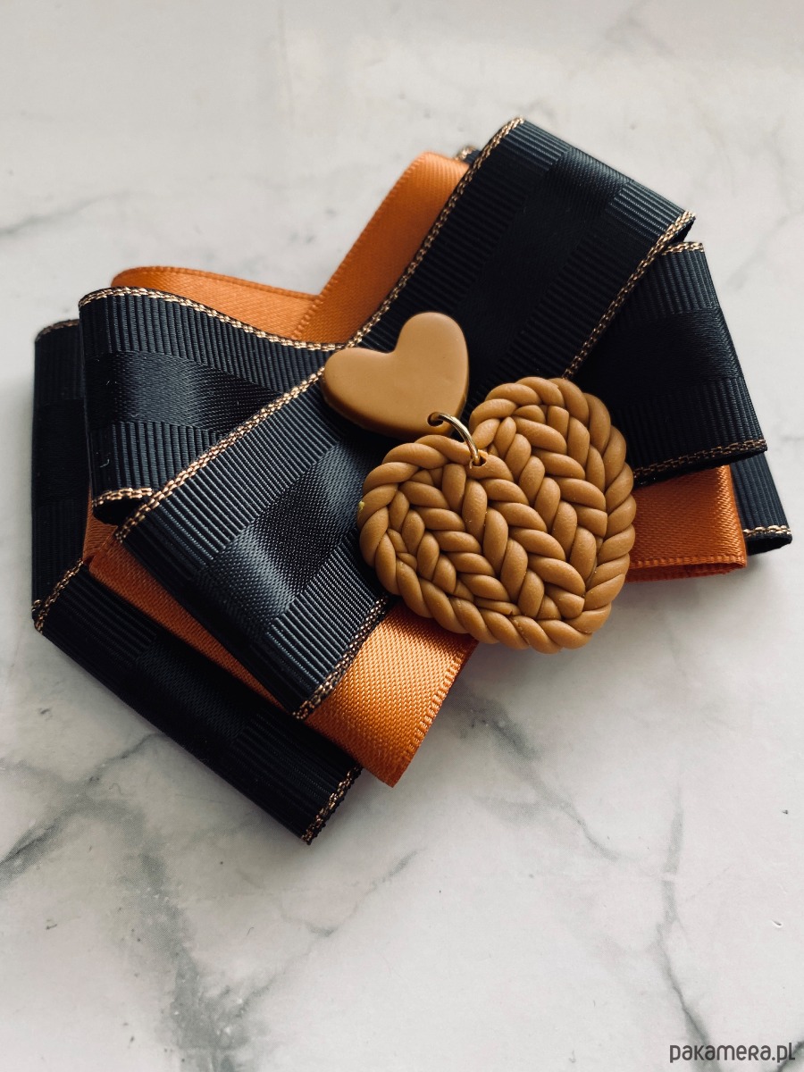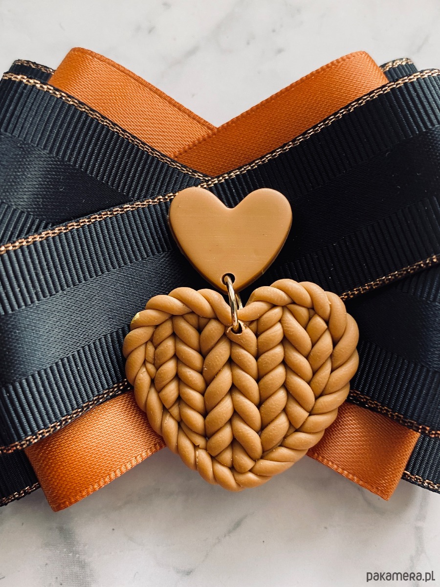 Broszka wykonana z wysokiej jakości taśm i dodatków.