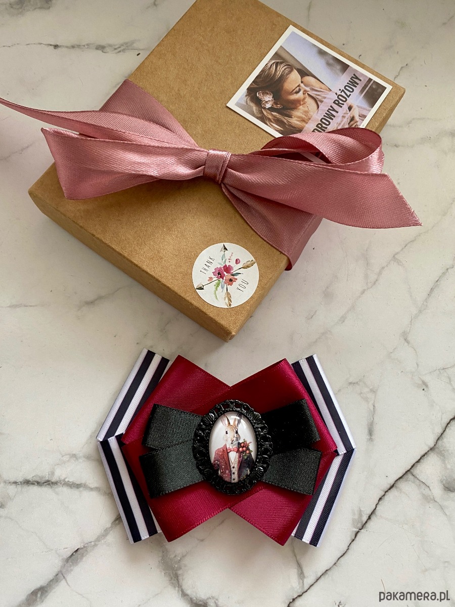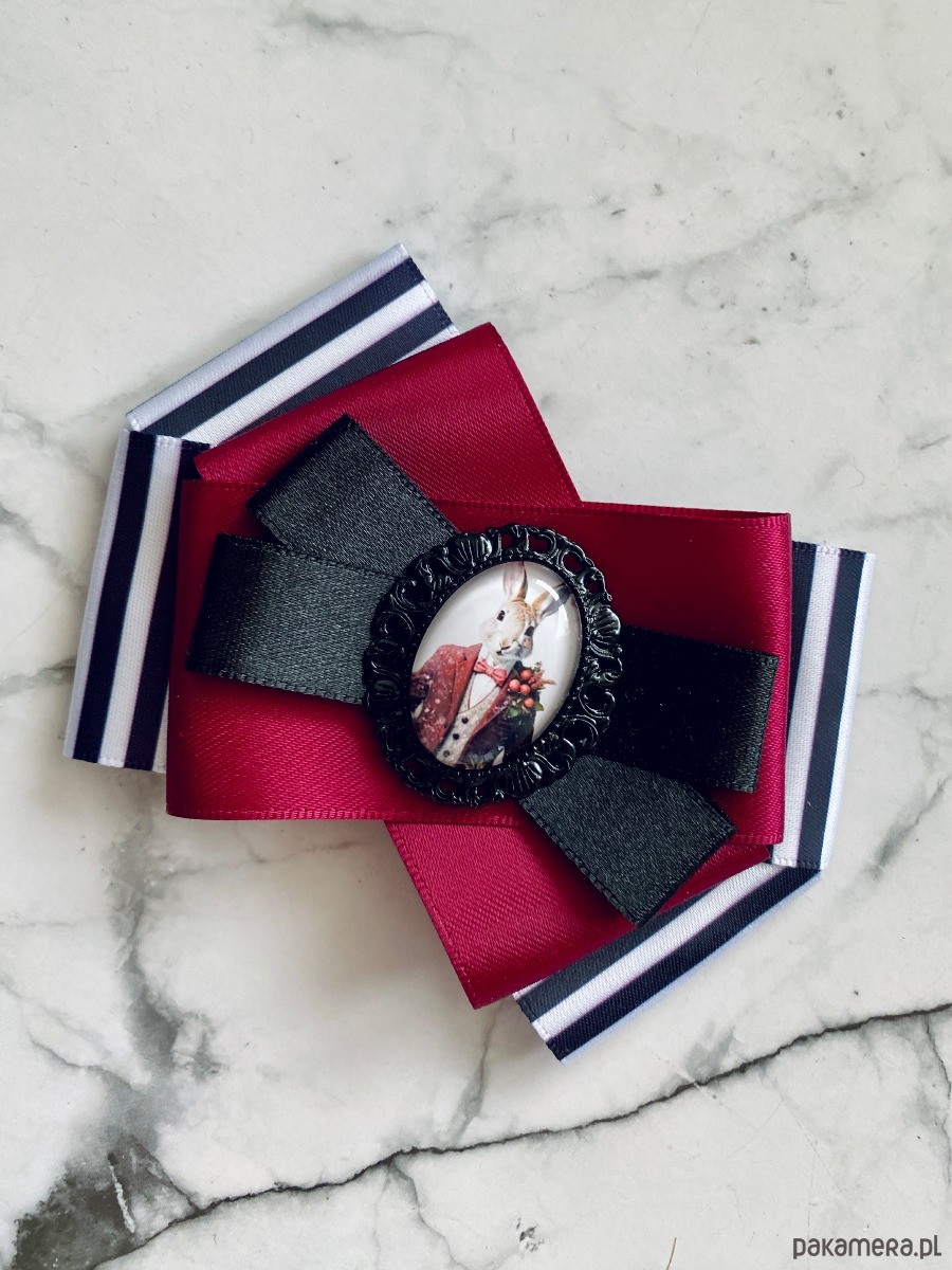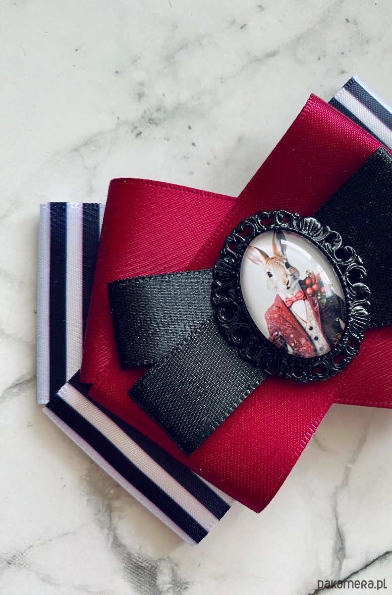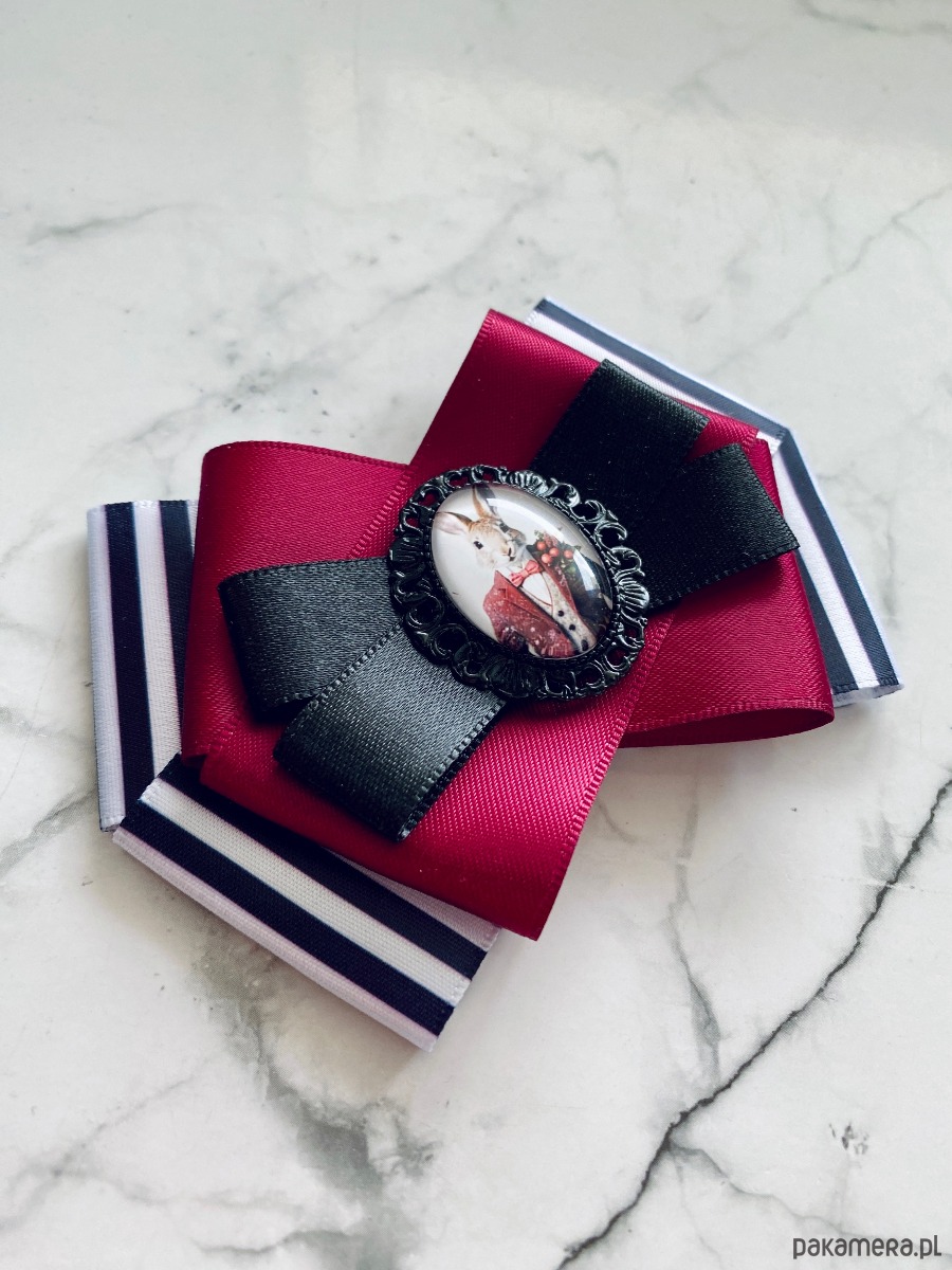 Broszka wykonana z wysokiej jakości taśm i dodatków.