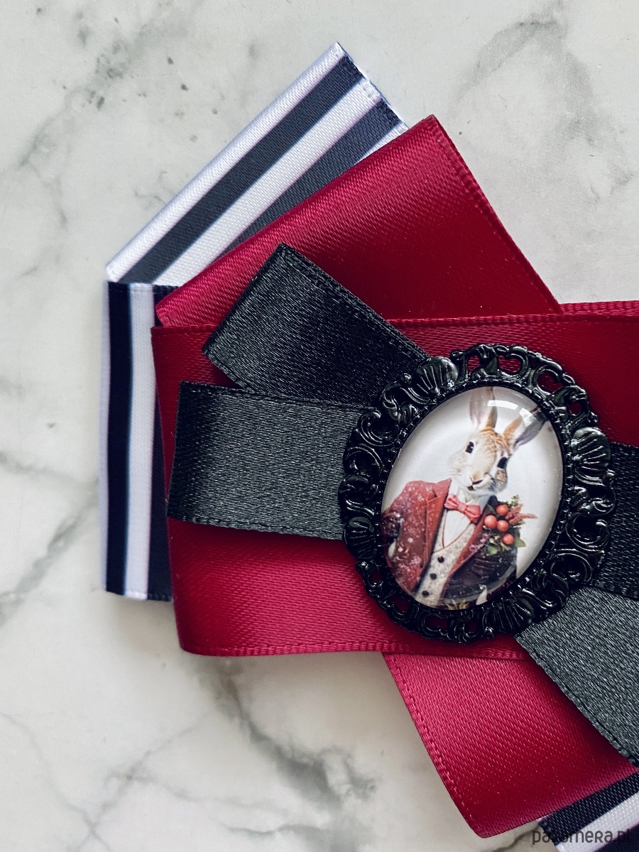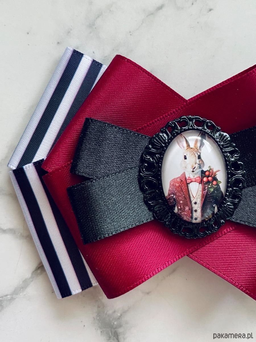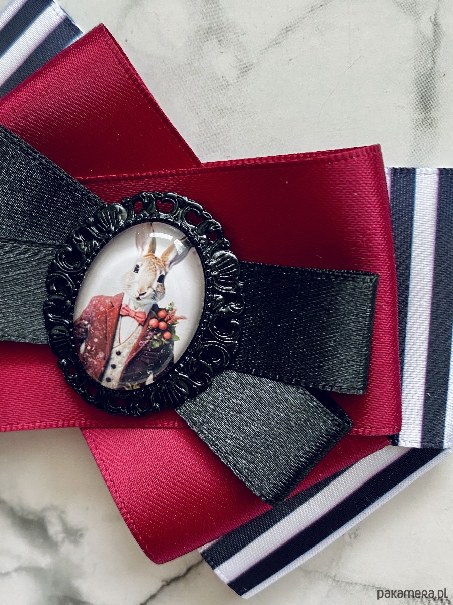 Broszka wykonana z wysokiej jakości taśm i dodatków.