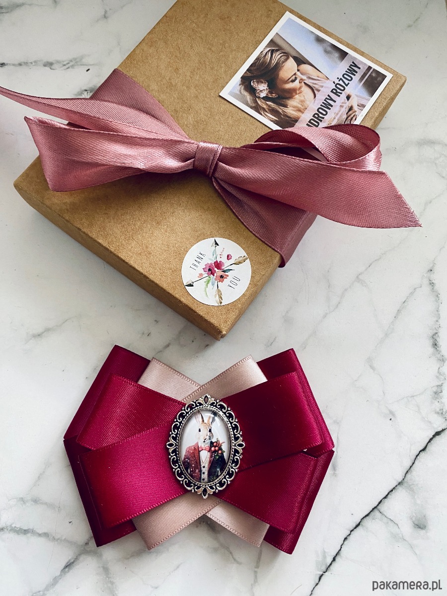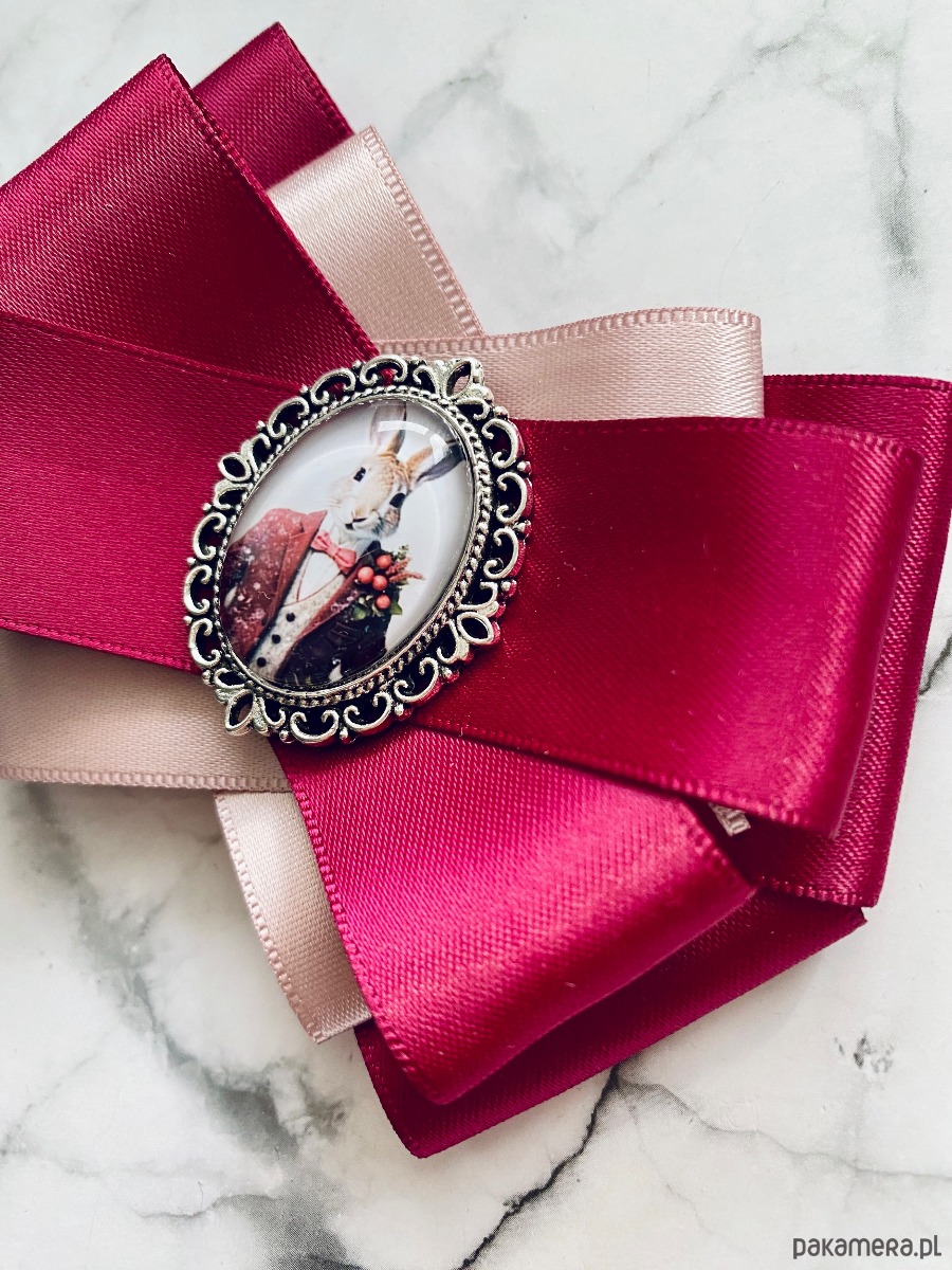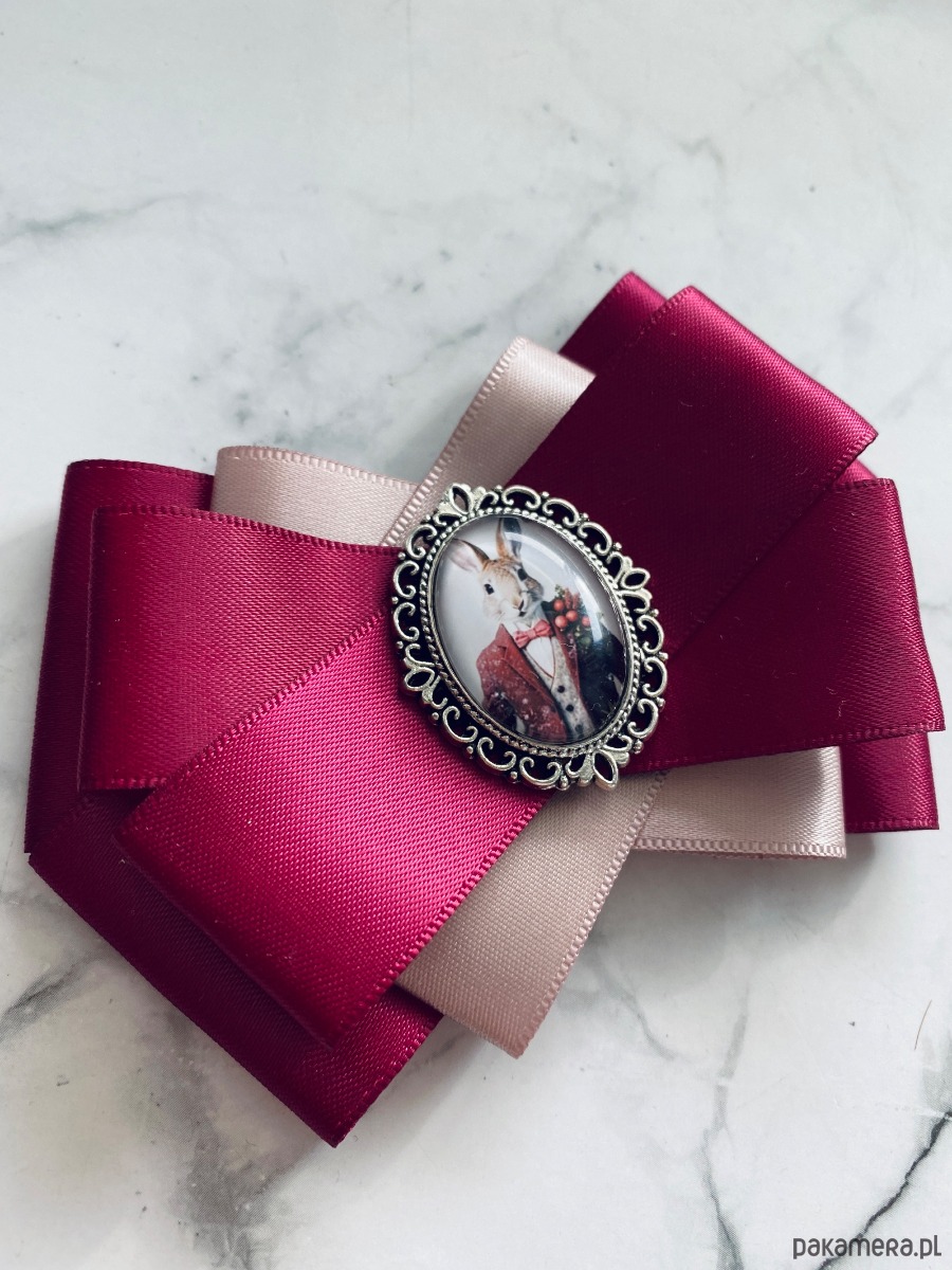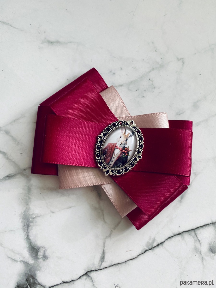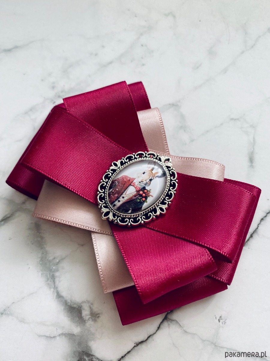 Broszka wykonana z wysokiej jakości taśm i dodatków.
