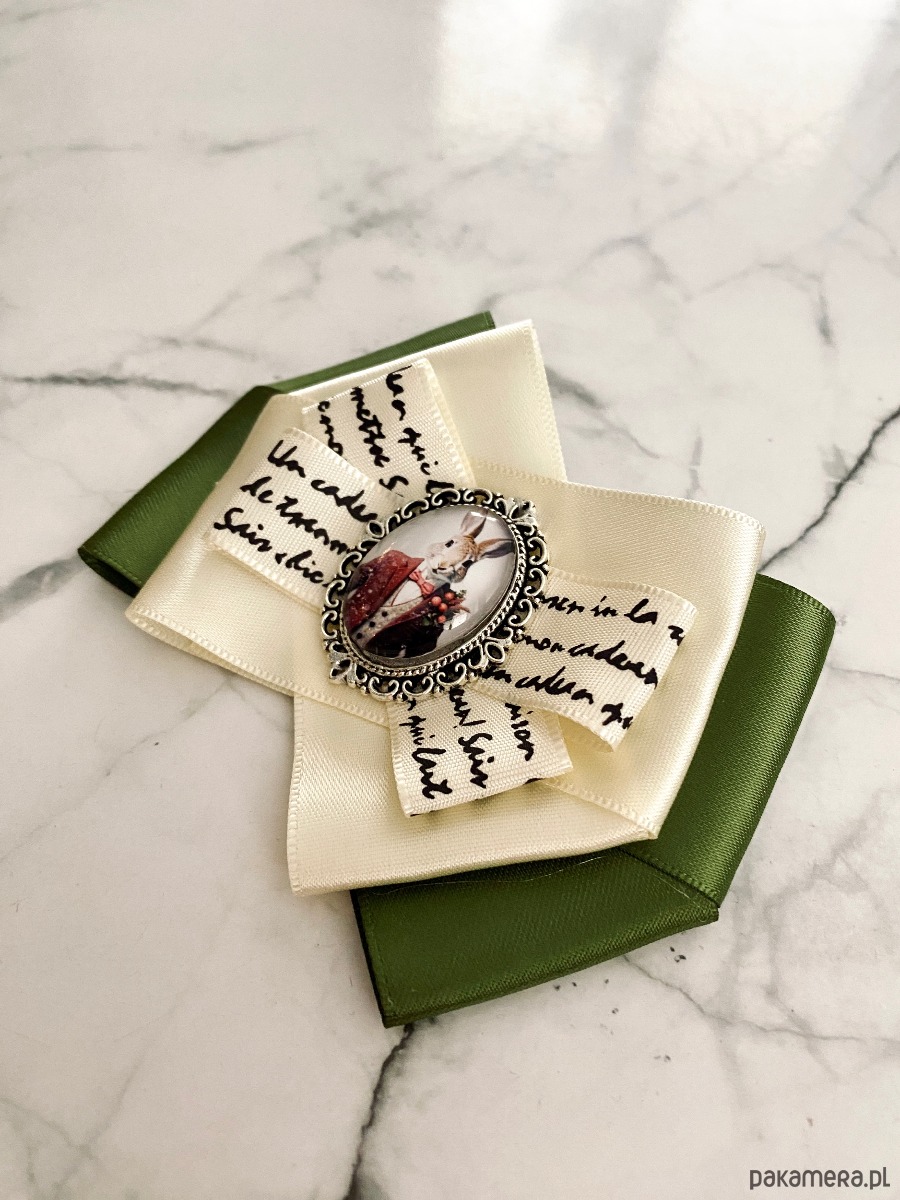Broszka wykonana z wysokiej jakości taśm i dodatków.