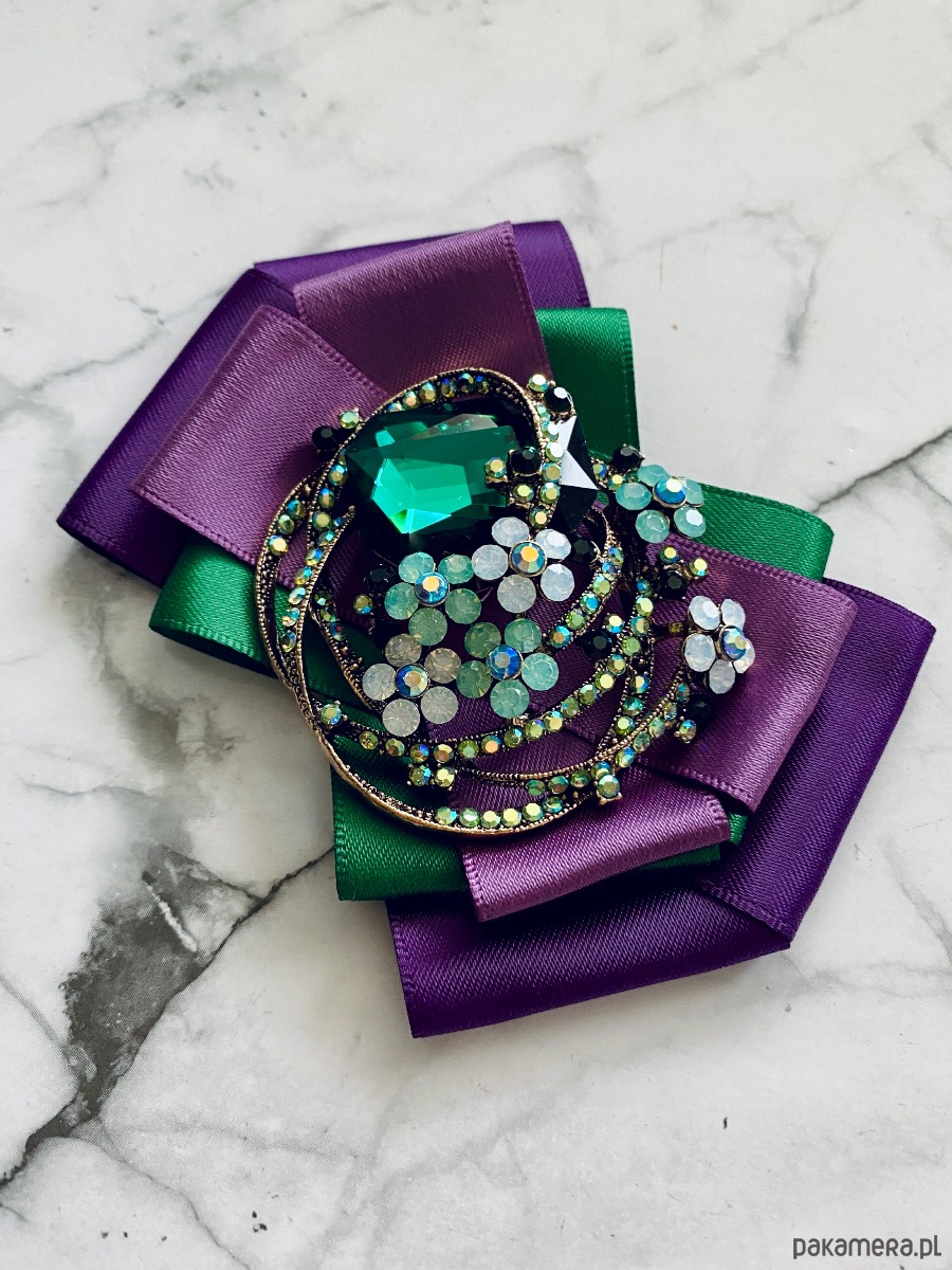 Broszka wykonana z wysokiej jakości taśm i dodatków.