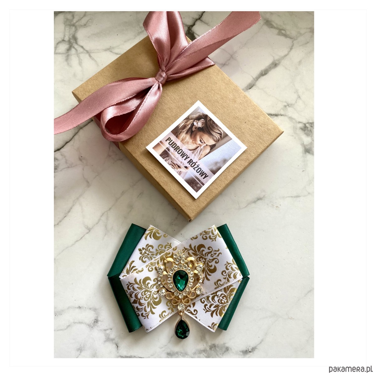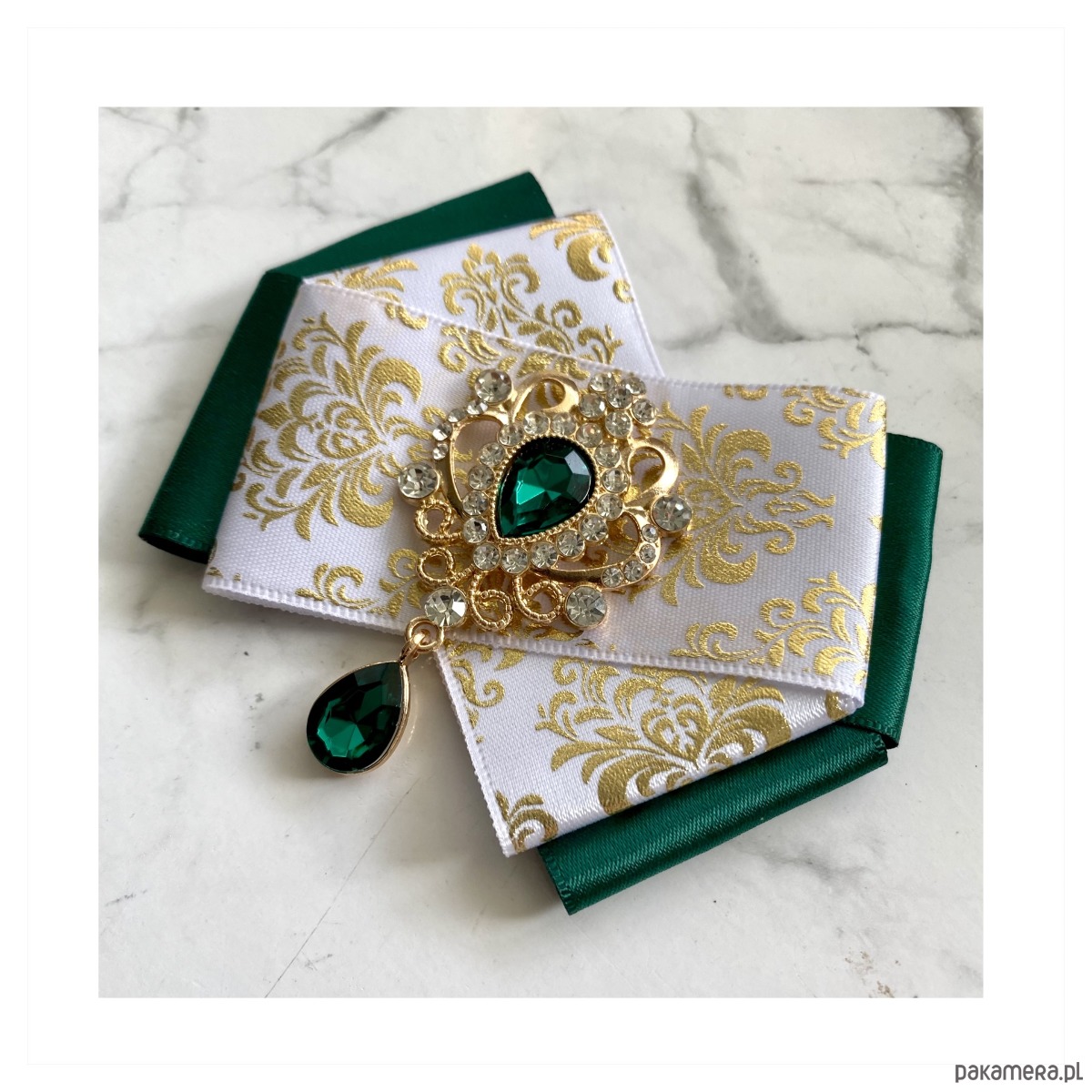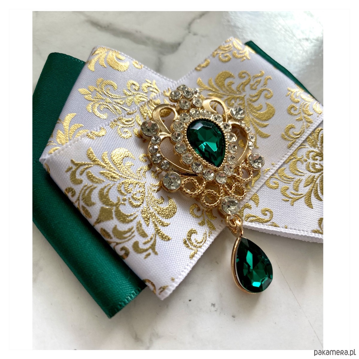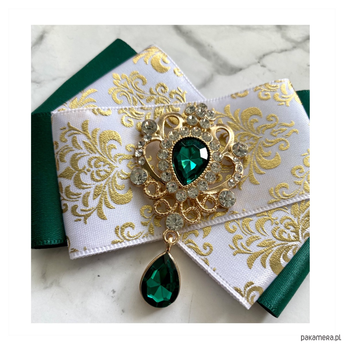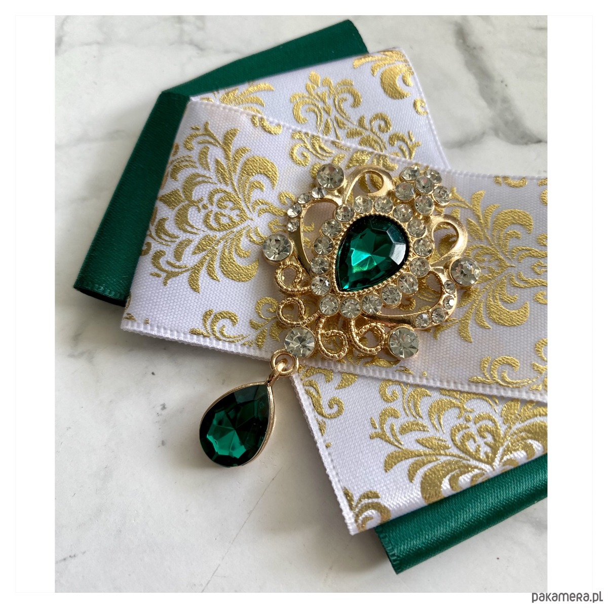 Zieleń połączona ze wstążką białą w stylu glamour ze złotym wzorem.