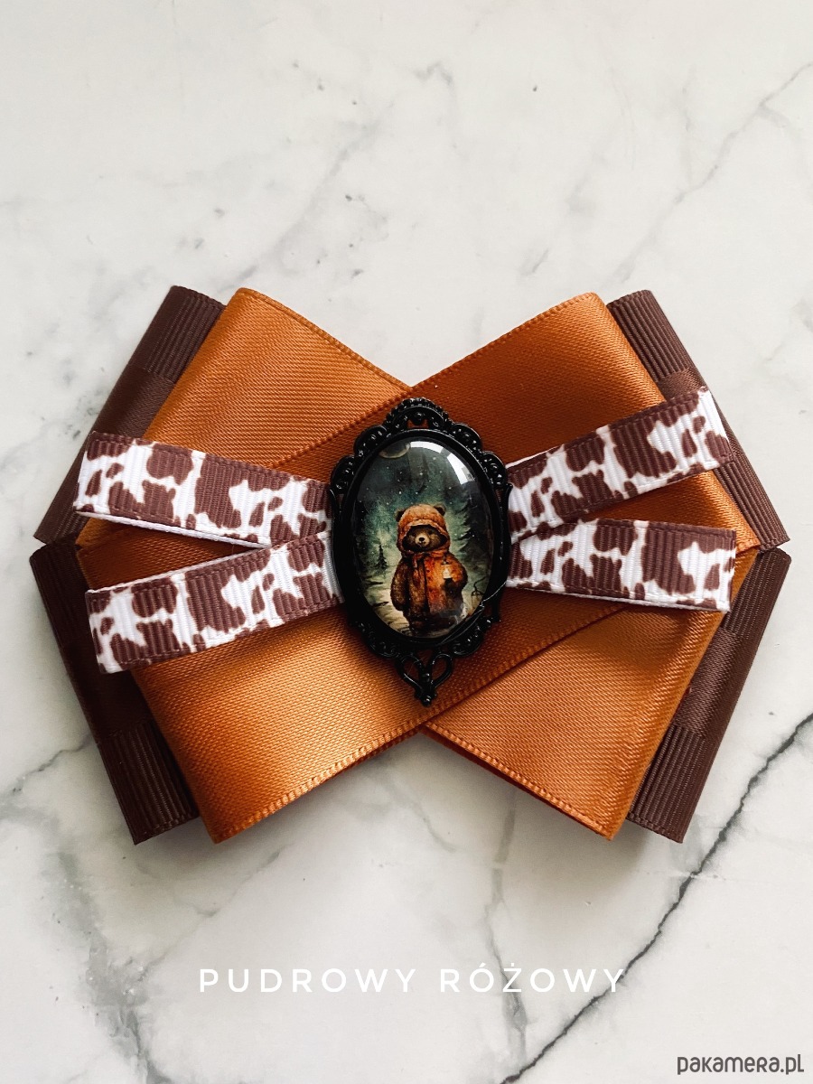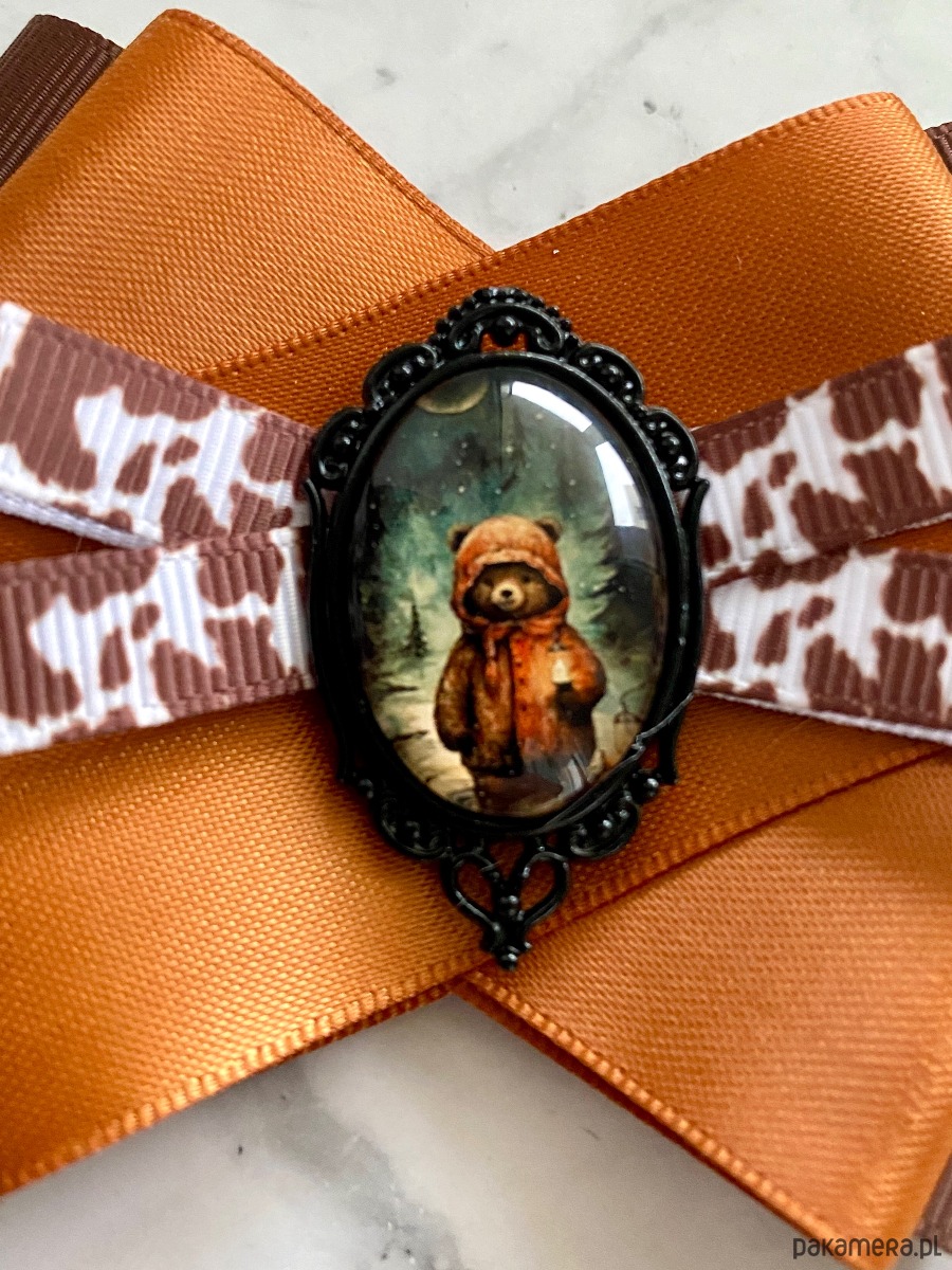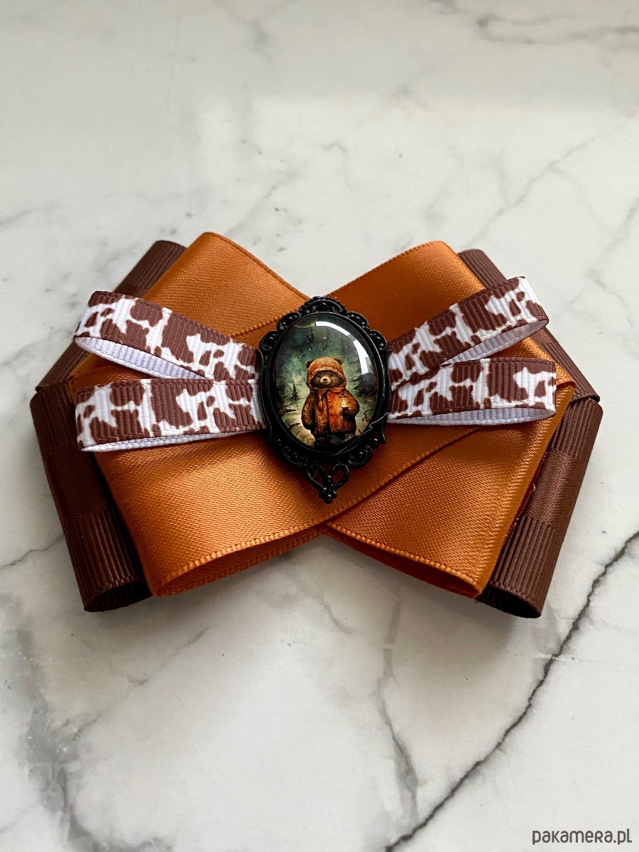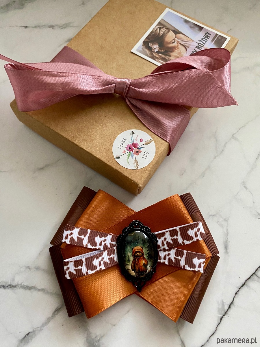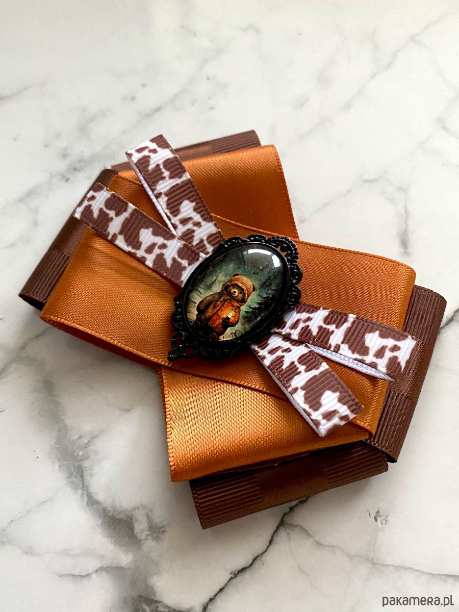 Broszka wykonana z wysokiej jakości taśm i dodatków.