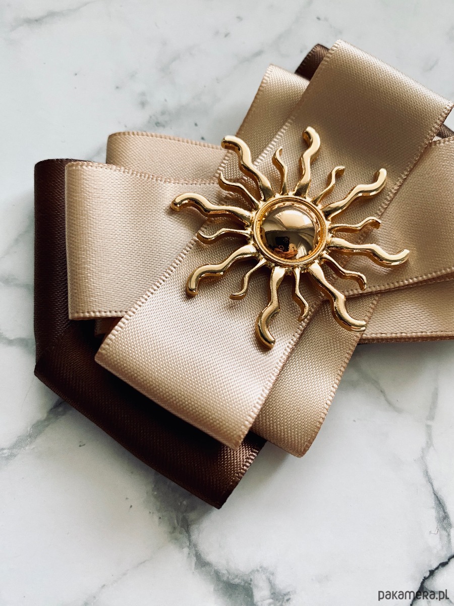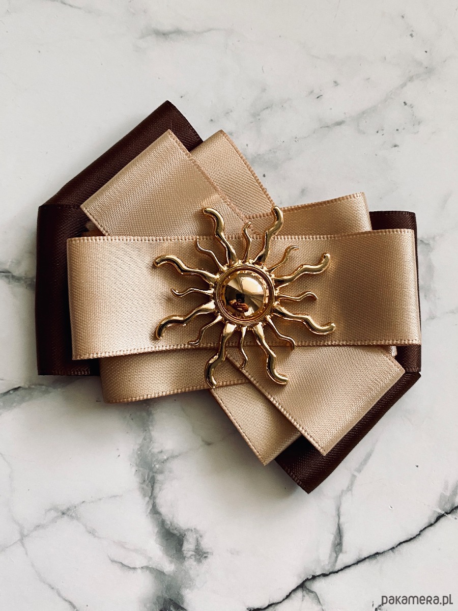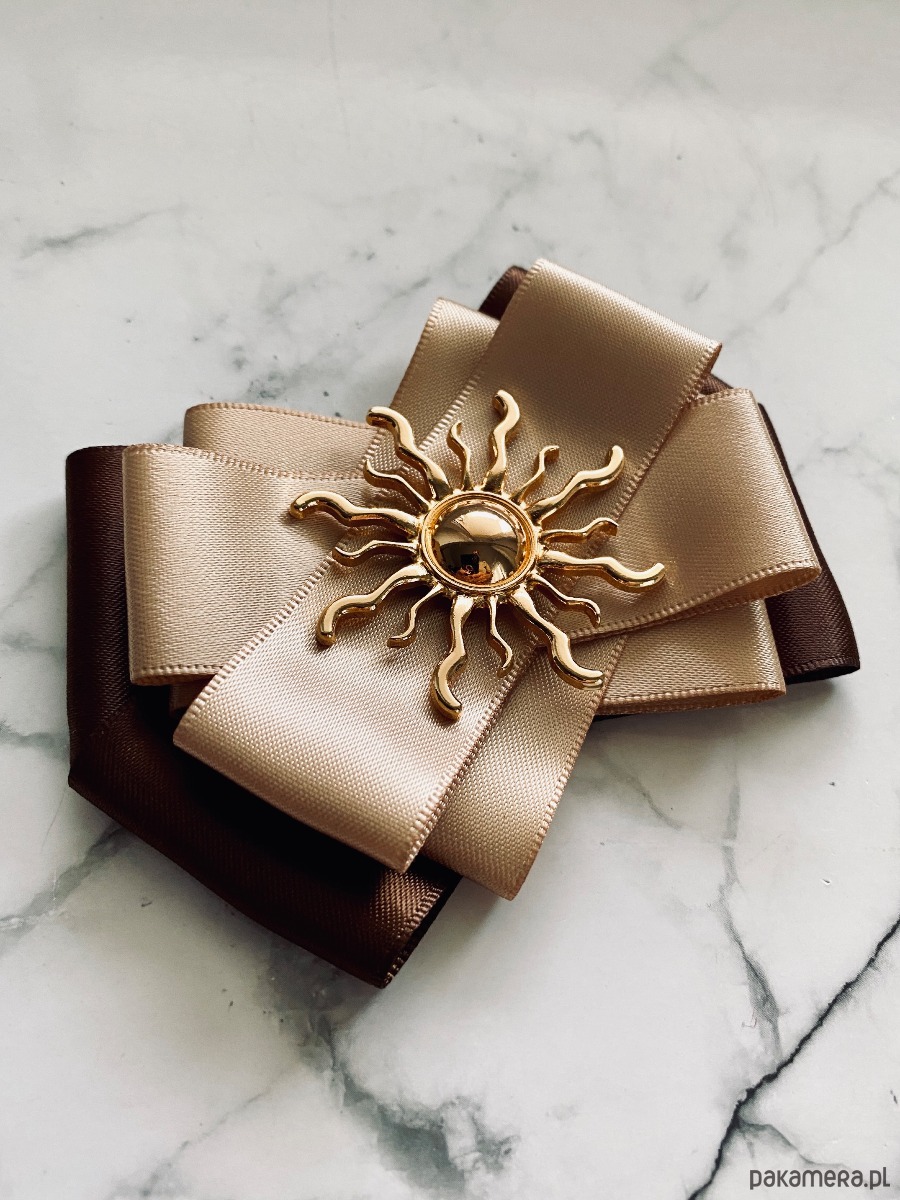 Broszka wykonana z wysokiej jakości taśm i dodatków.