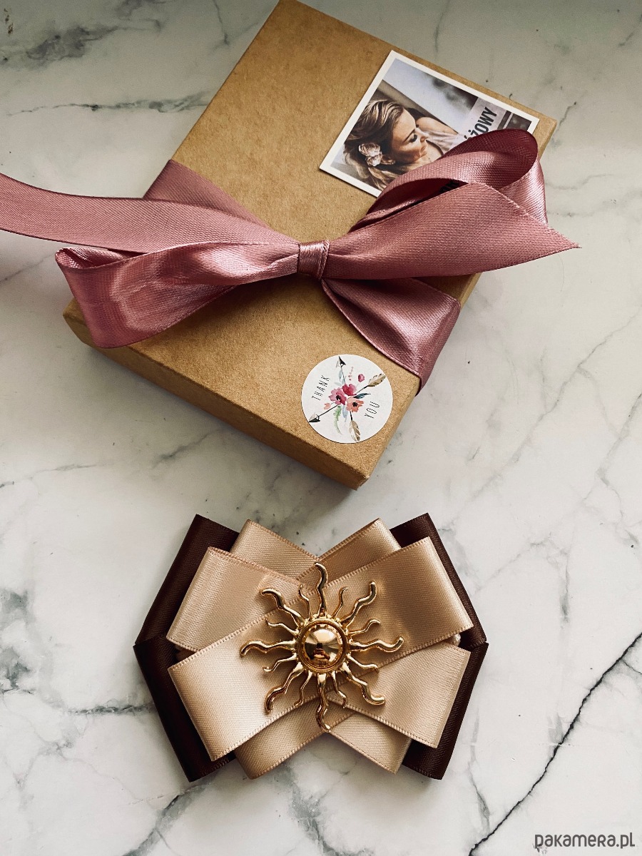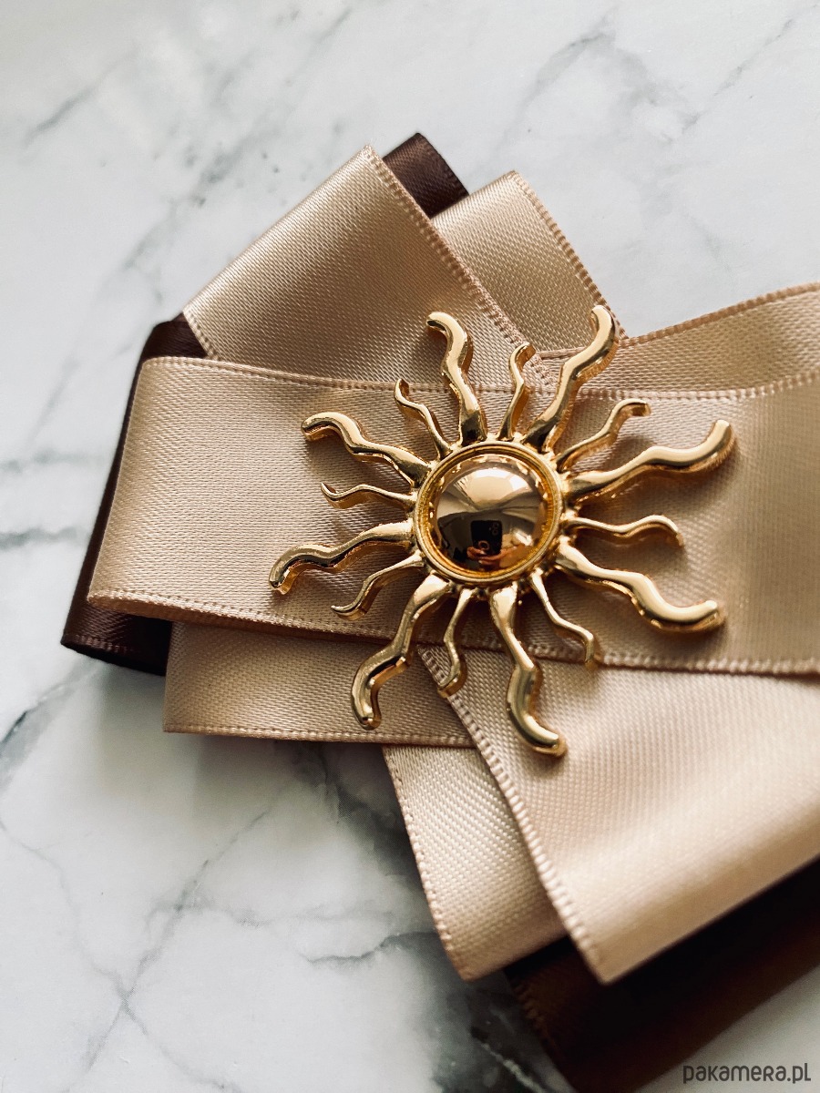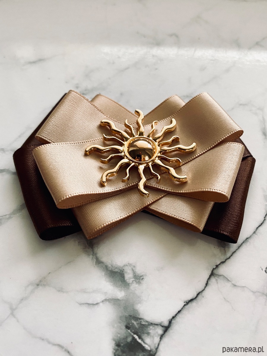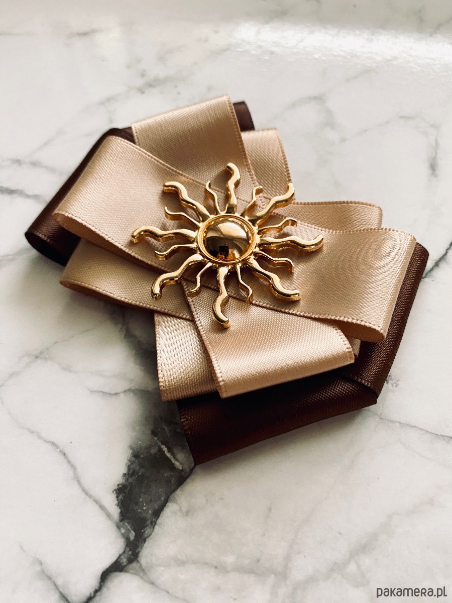 Broszka wykonana z wysokiej jakości taśm i dodatków.