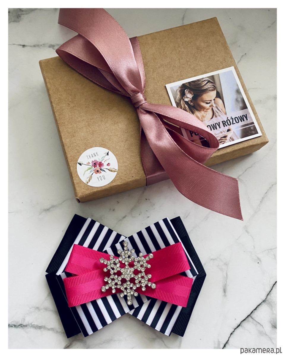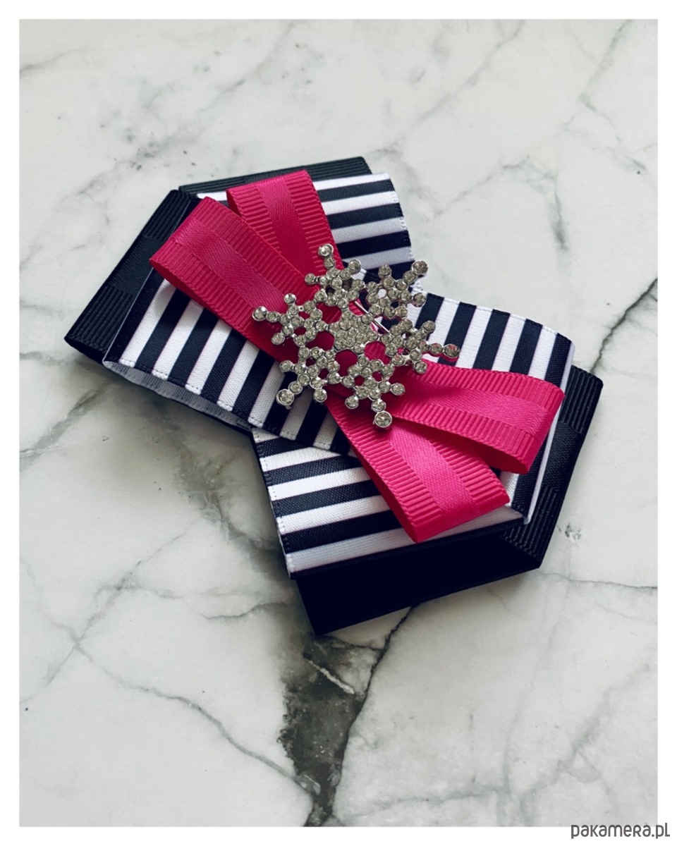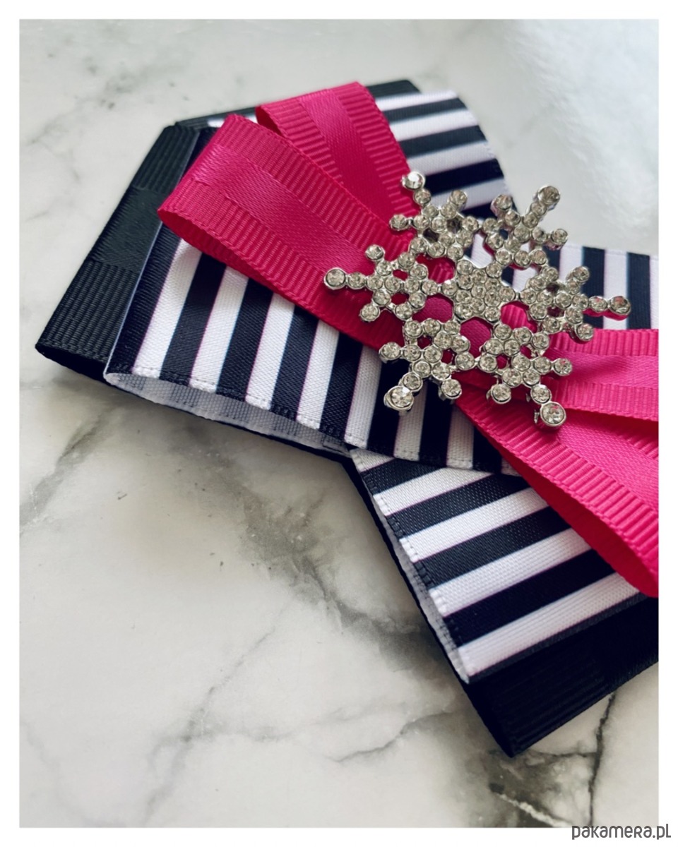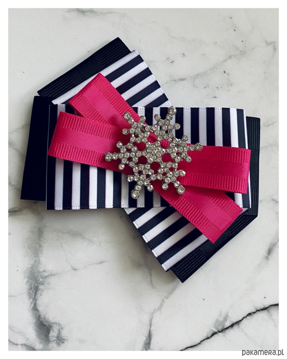 Broszka wykonana z wysokiej jakości taśm i dodatków.