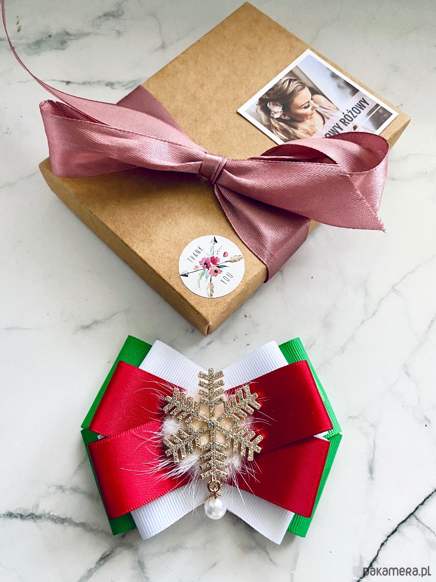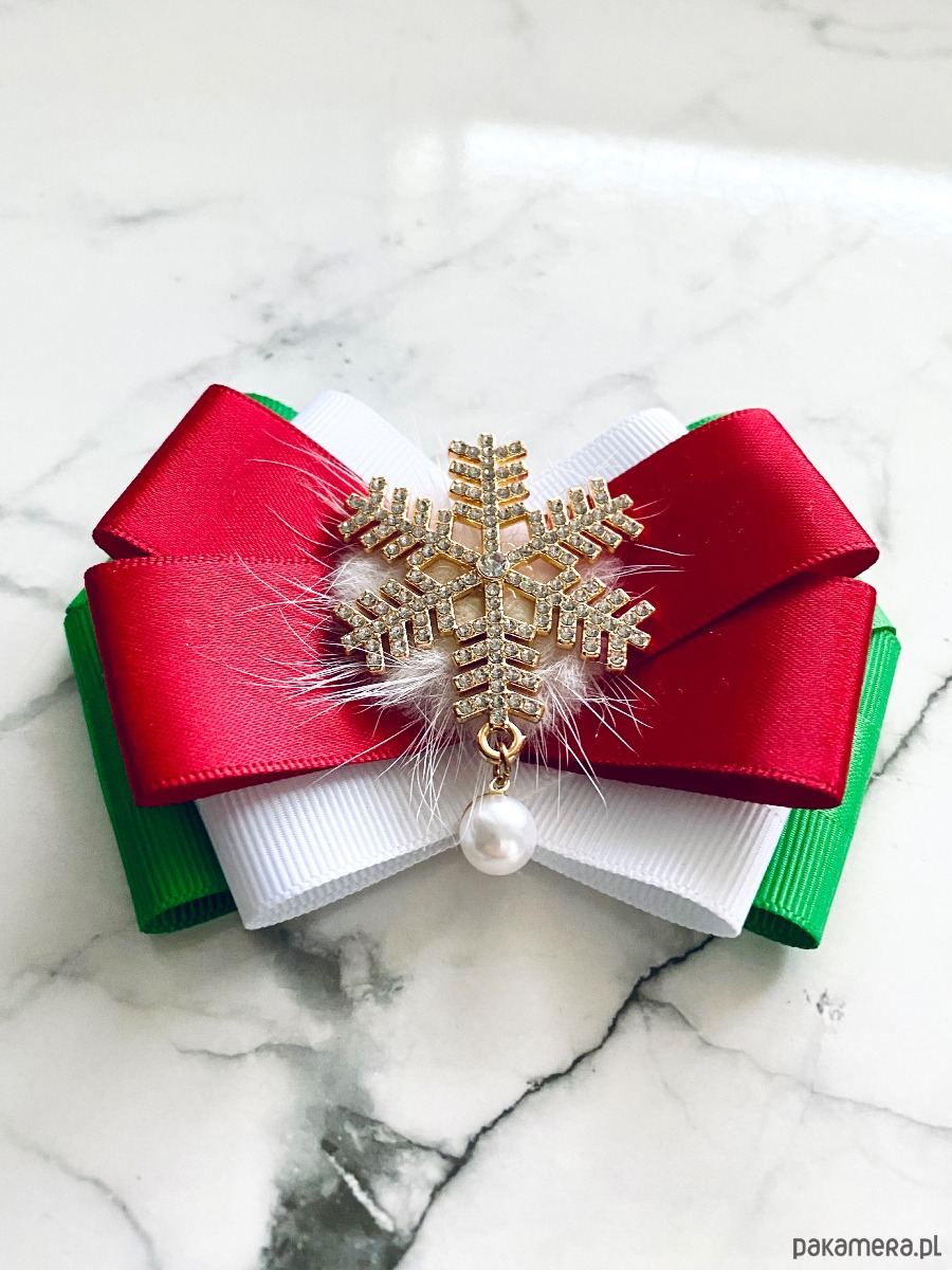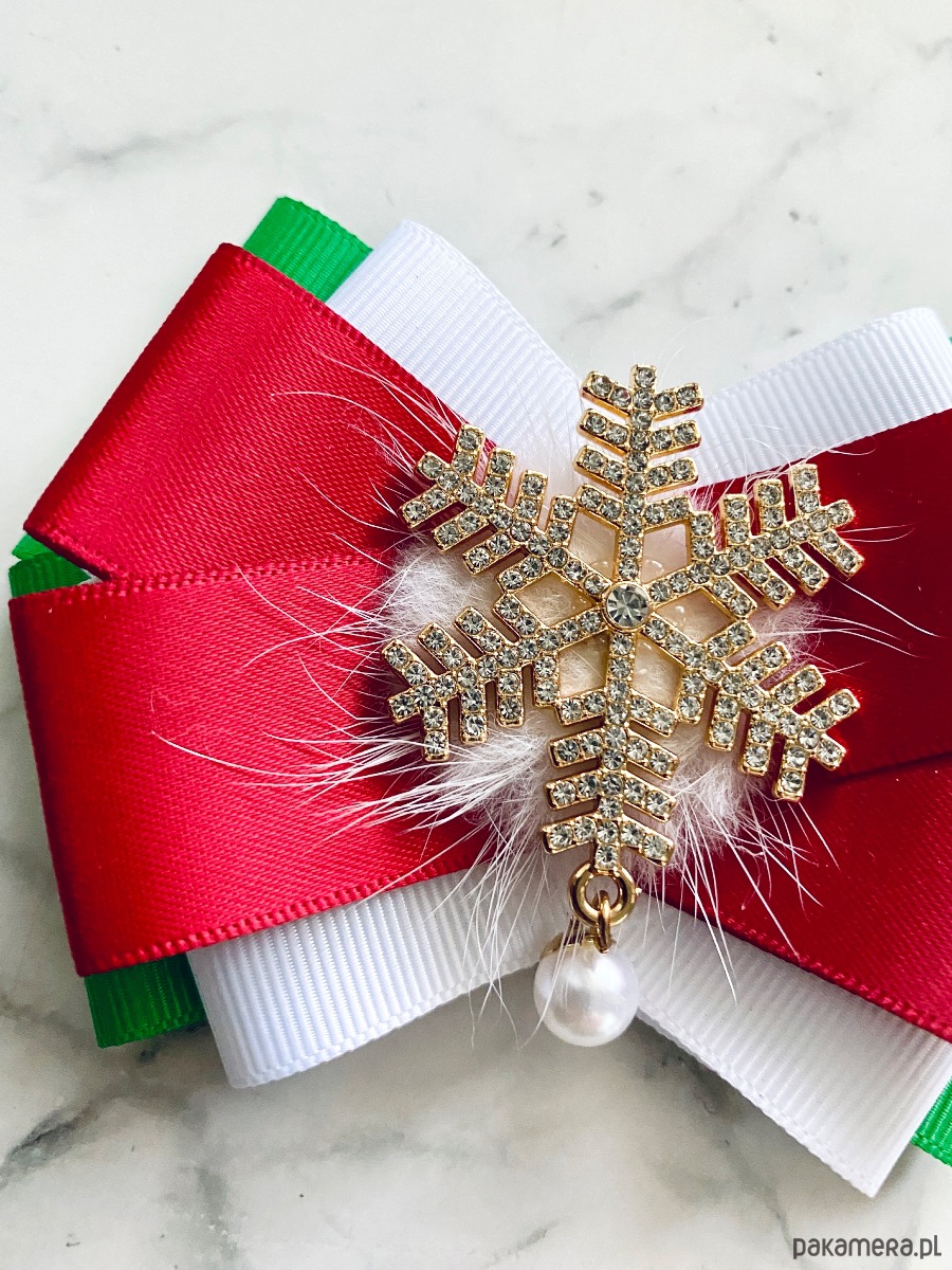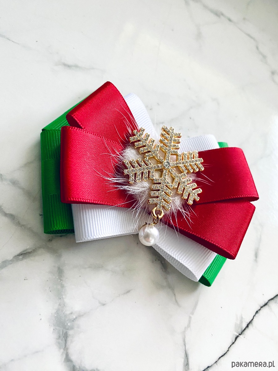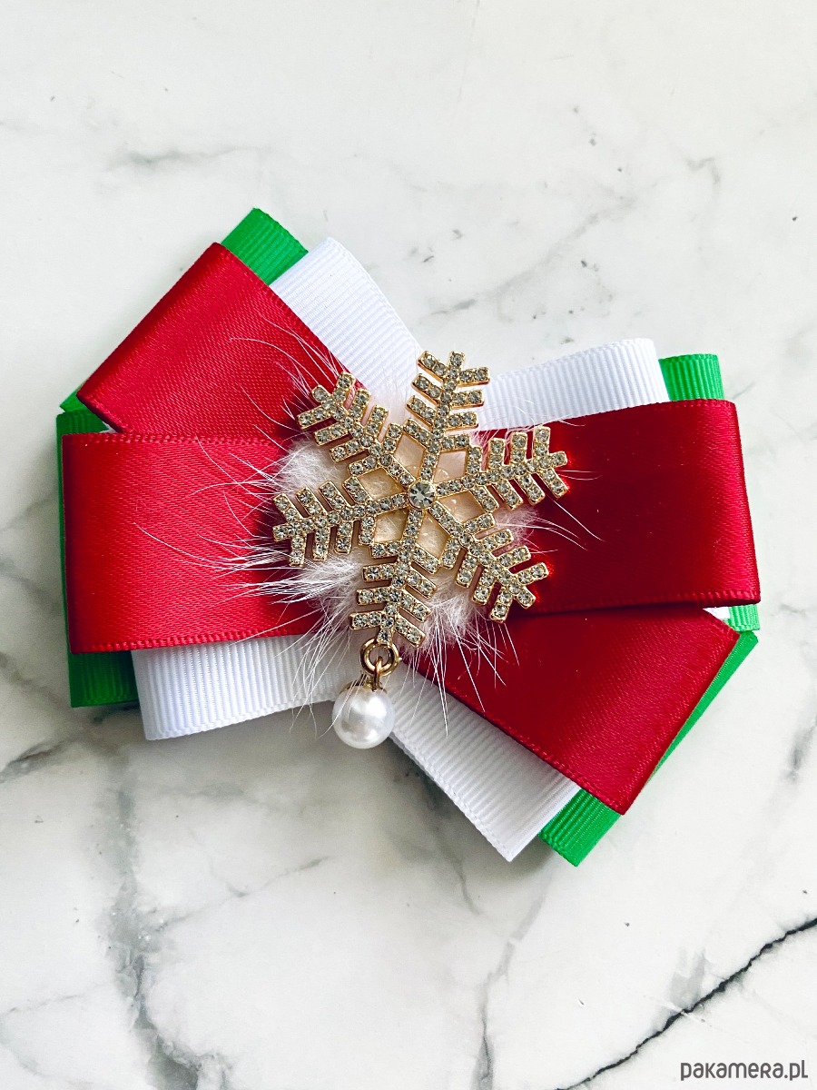 Brosza ze śnieżynką gwiazdką z puszkiem Mikołajki Święta