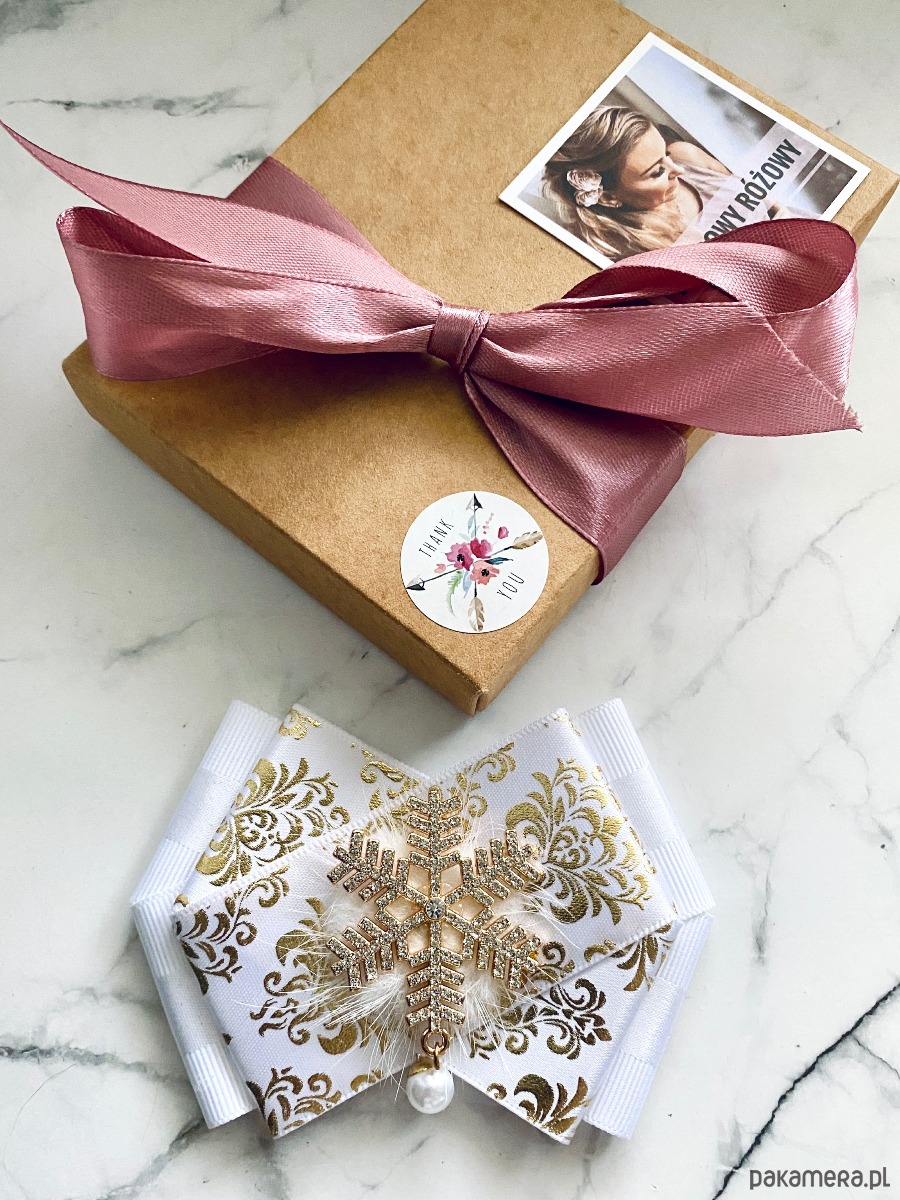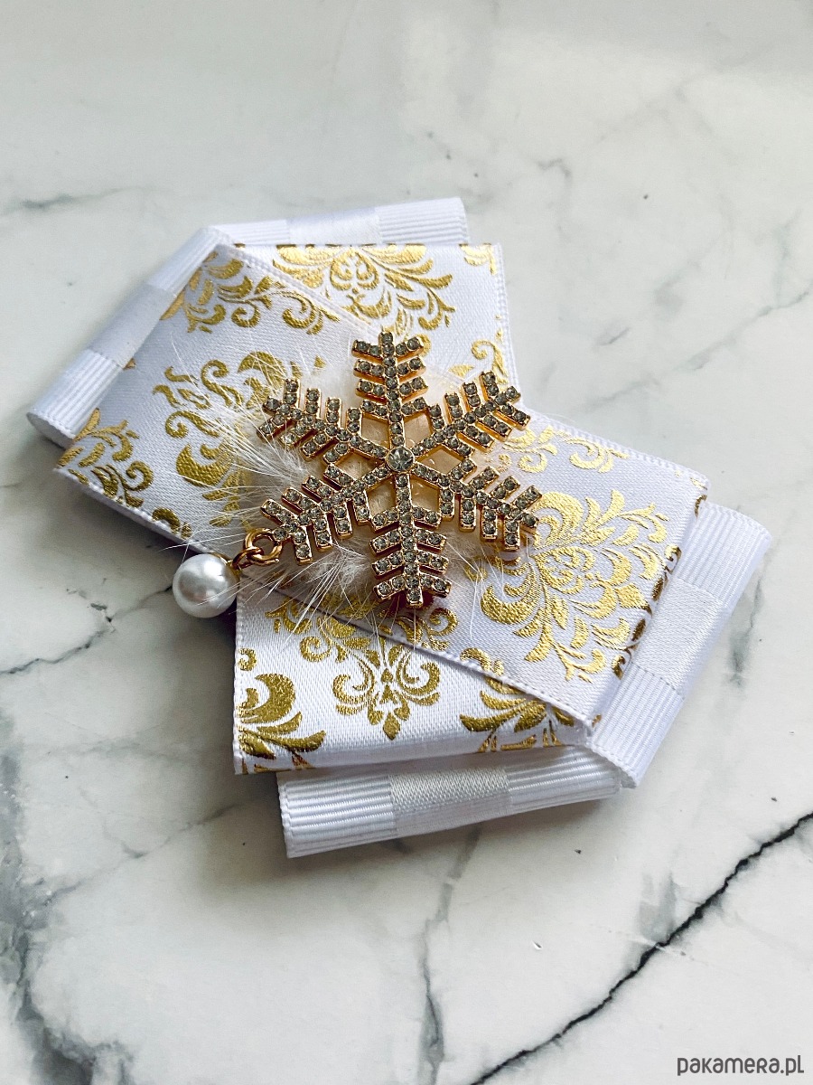 Broszka wykonana z wysokiej jakości taśm i dodatków.