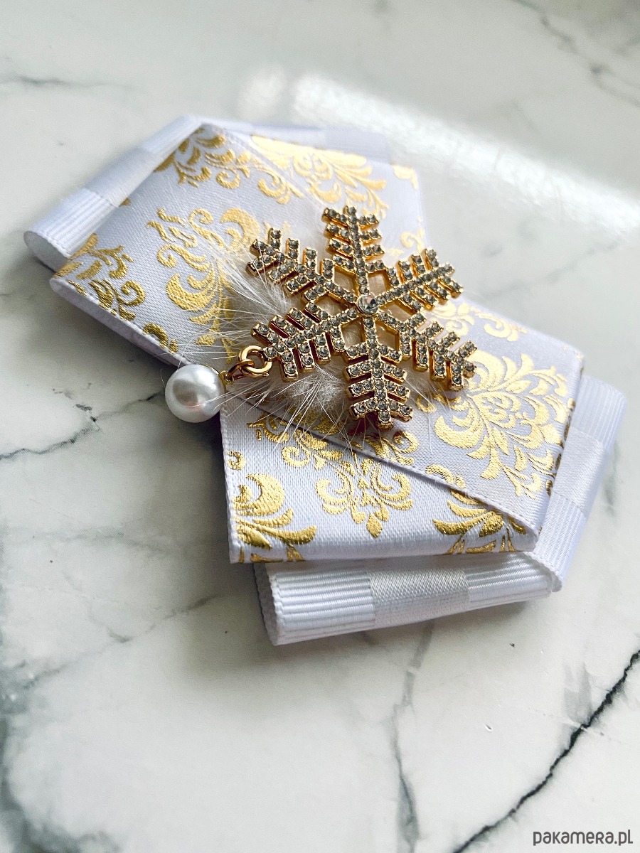 Brosza ze śnieżynką gwiazdką z puszkiem Mikołajki Święta