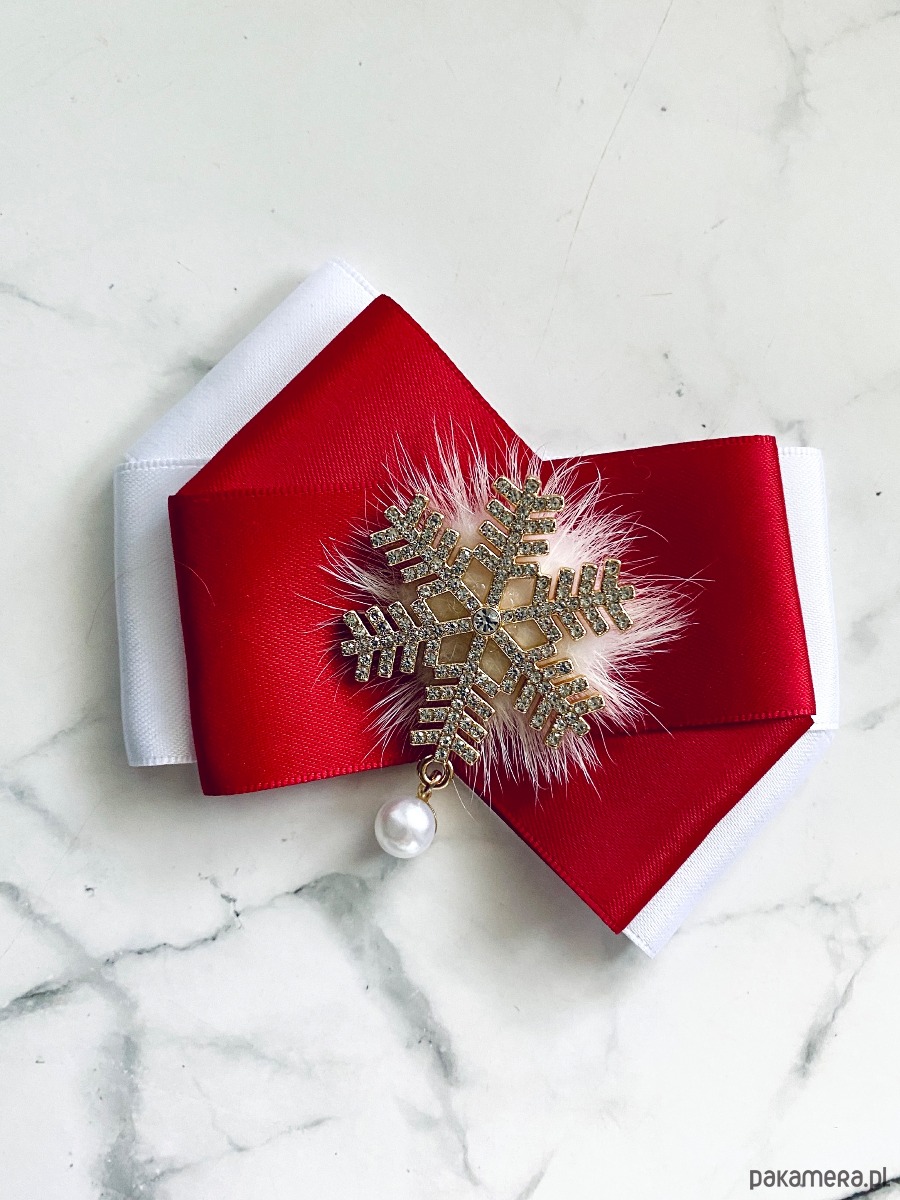 Brosza ze śnieżynką gwiazdką z puszkiem Mikołajki Święta