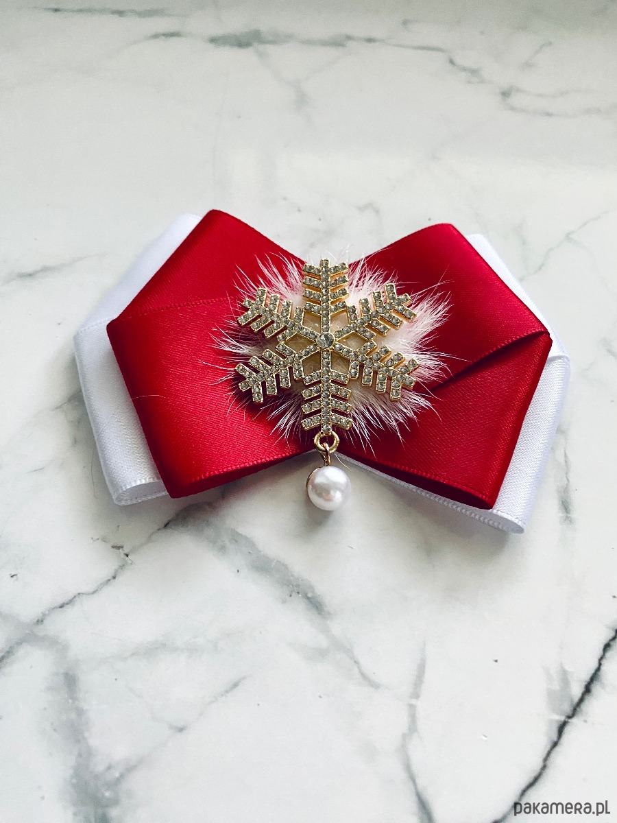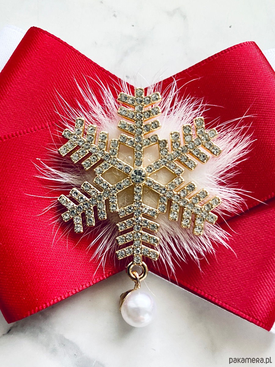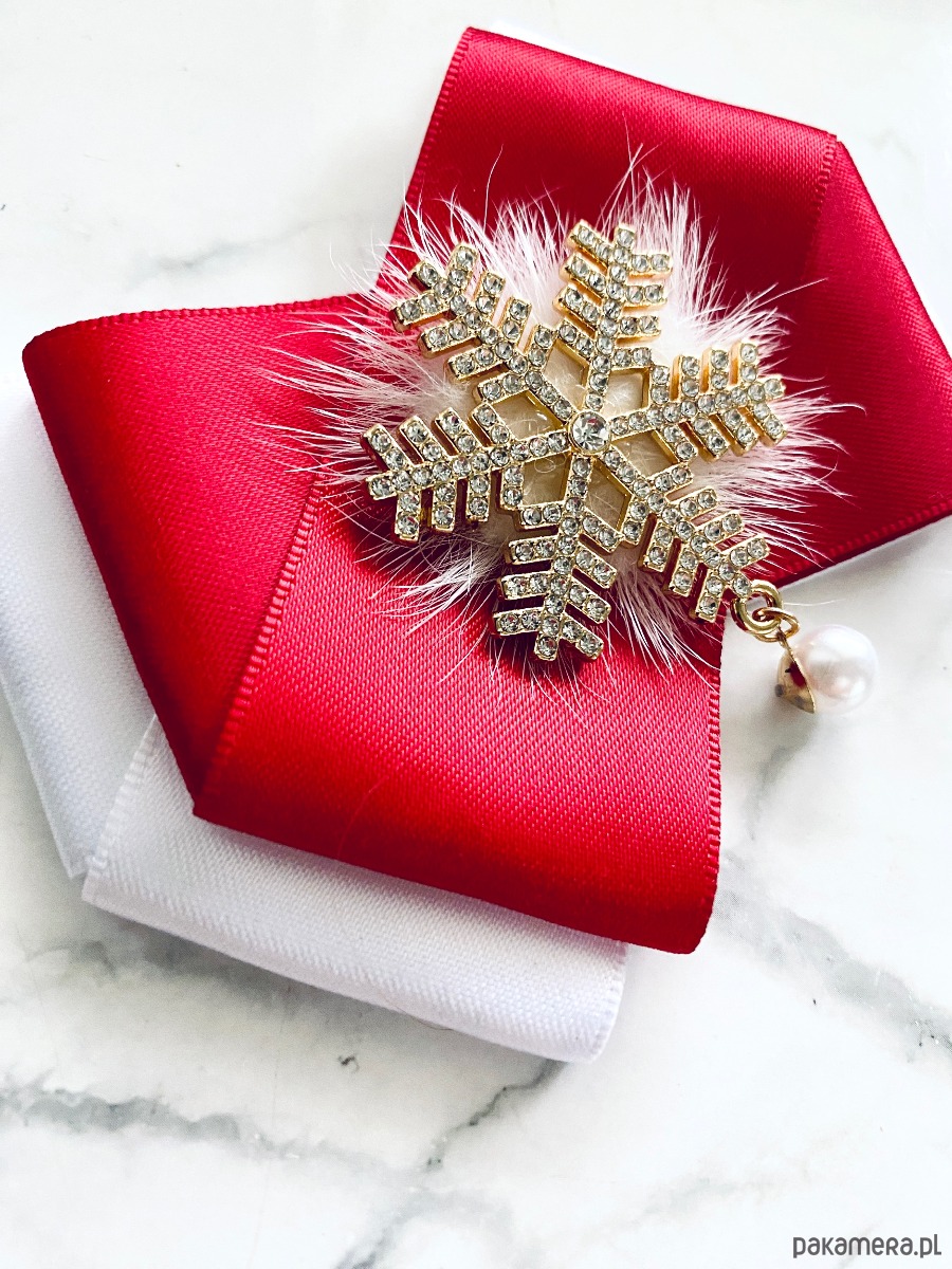 Brosza ze śnieżynką gwiazdką z puszkiem Mikołajki Święta