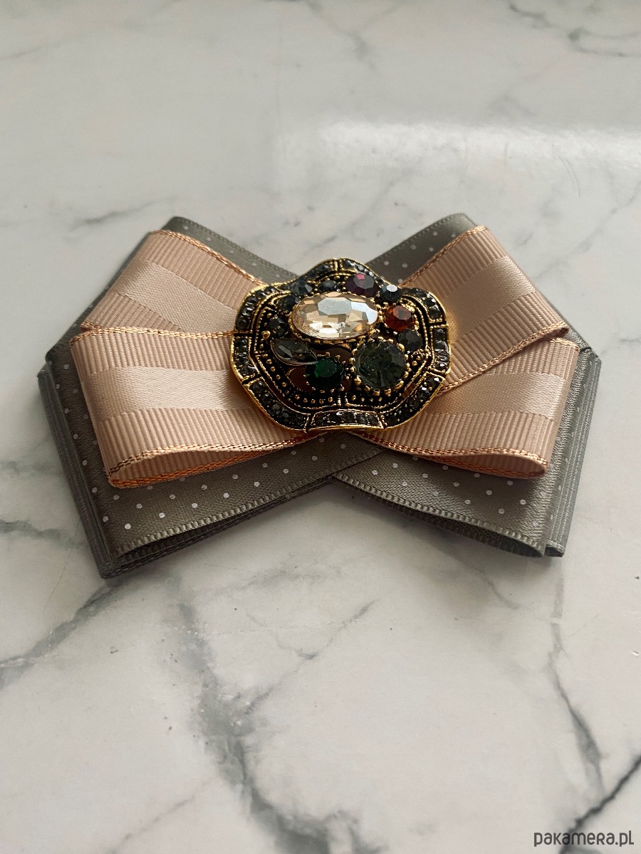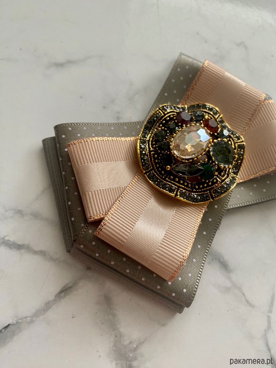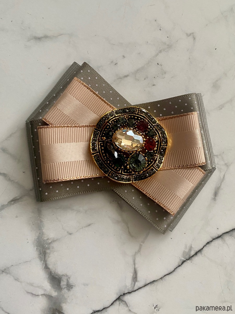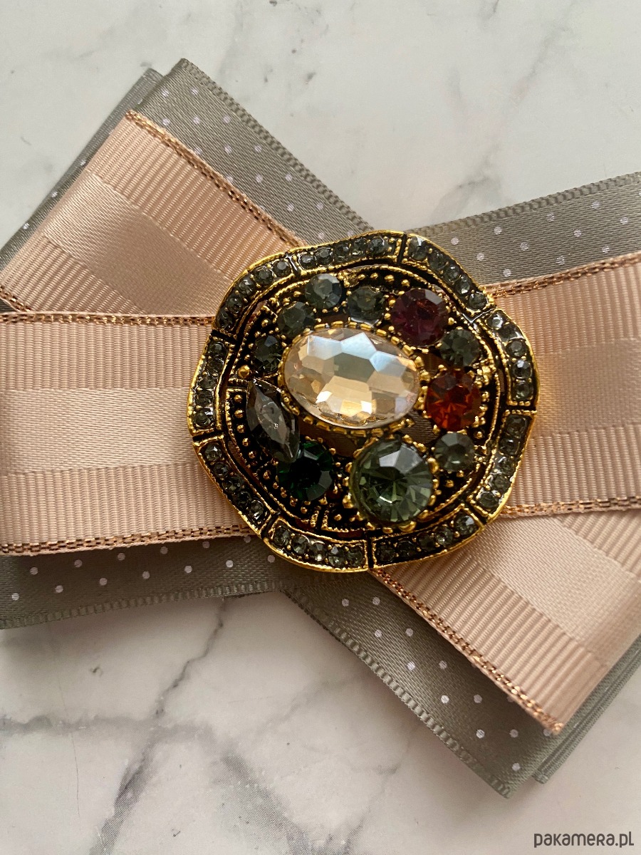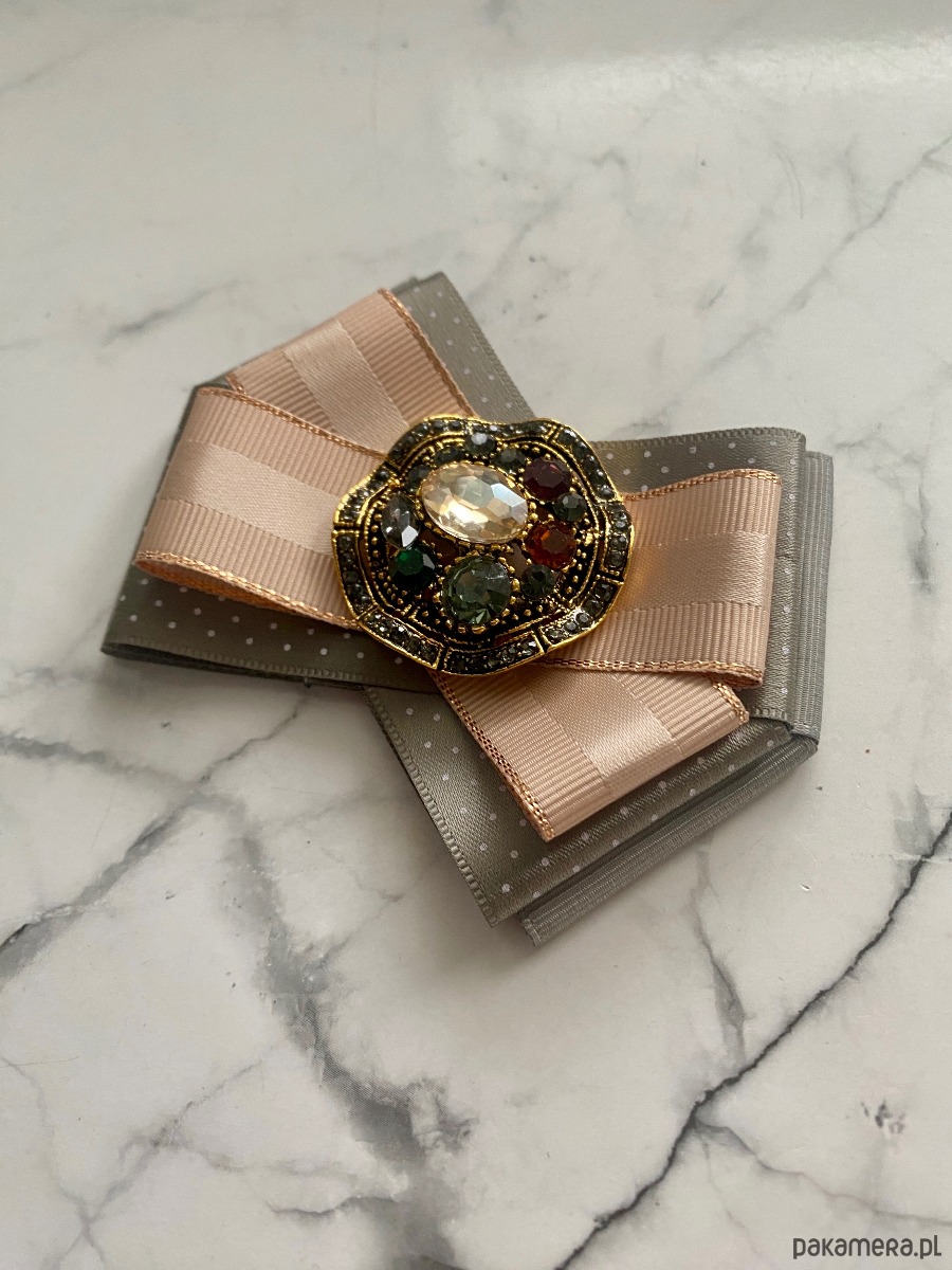 Broszka wykonana z wysokiej jakości taśm i dodatków.