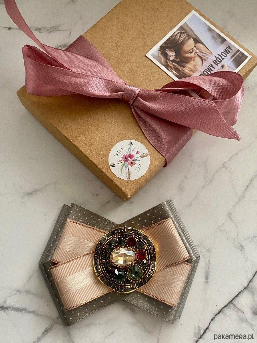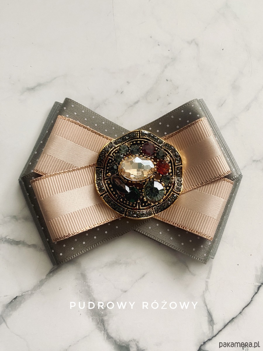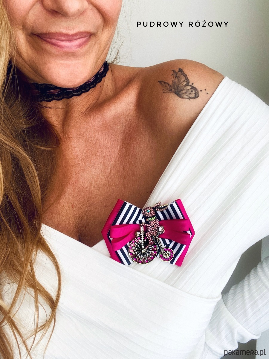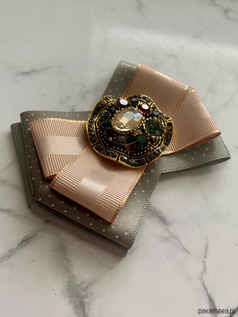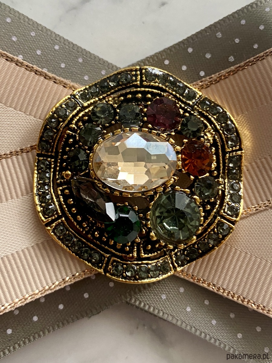 Broszka wykonana z wysokiej jakości taśm i dodatków.