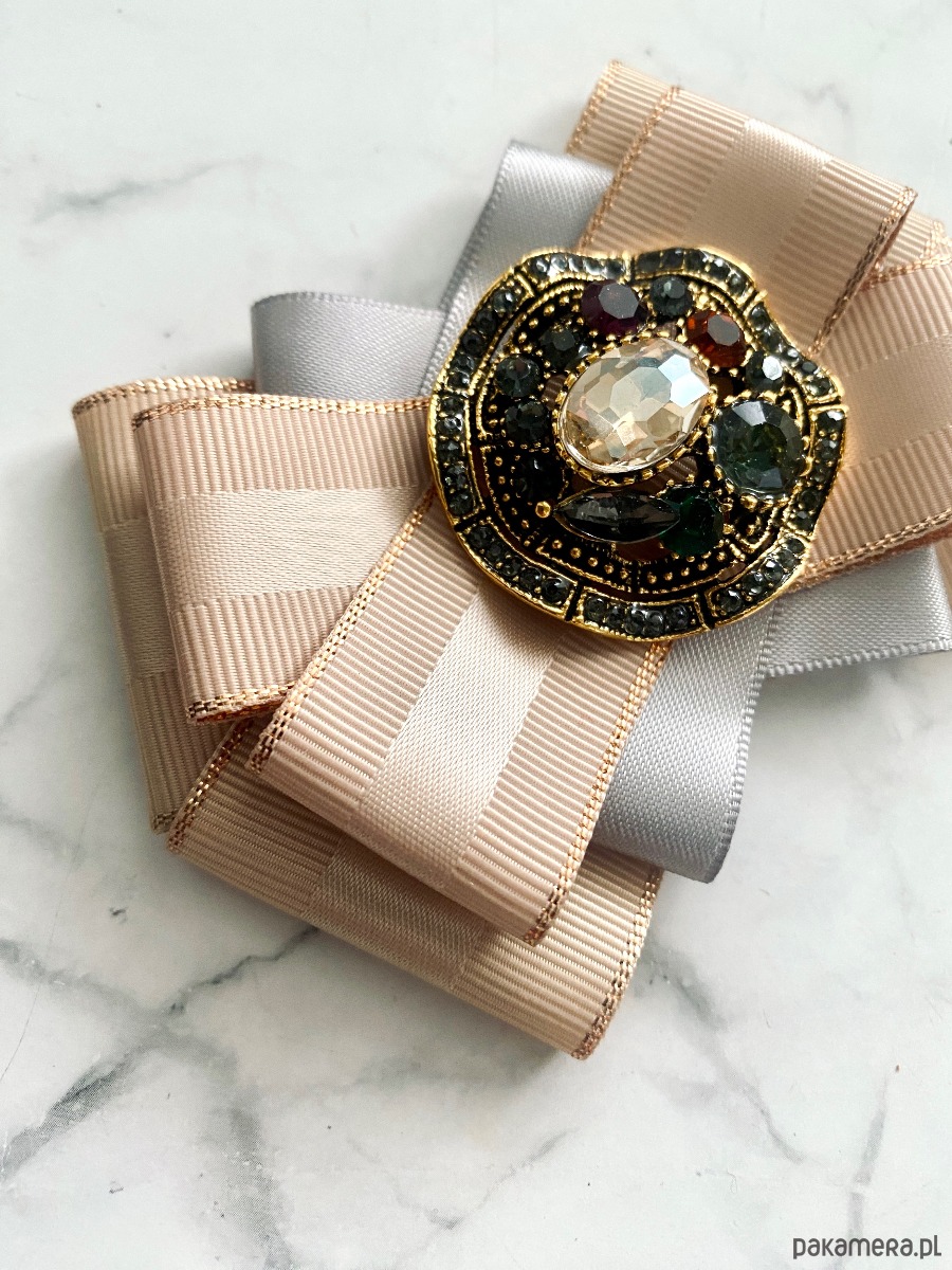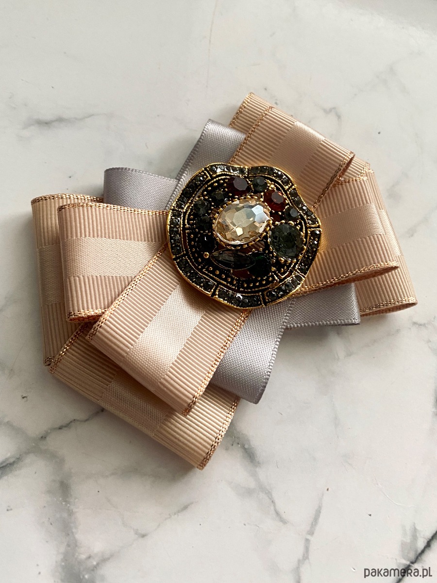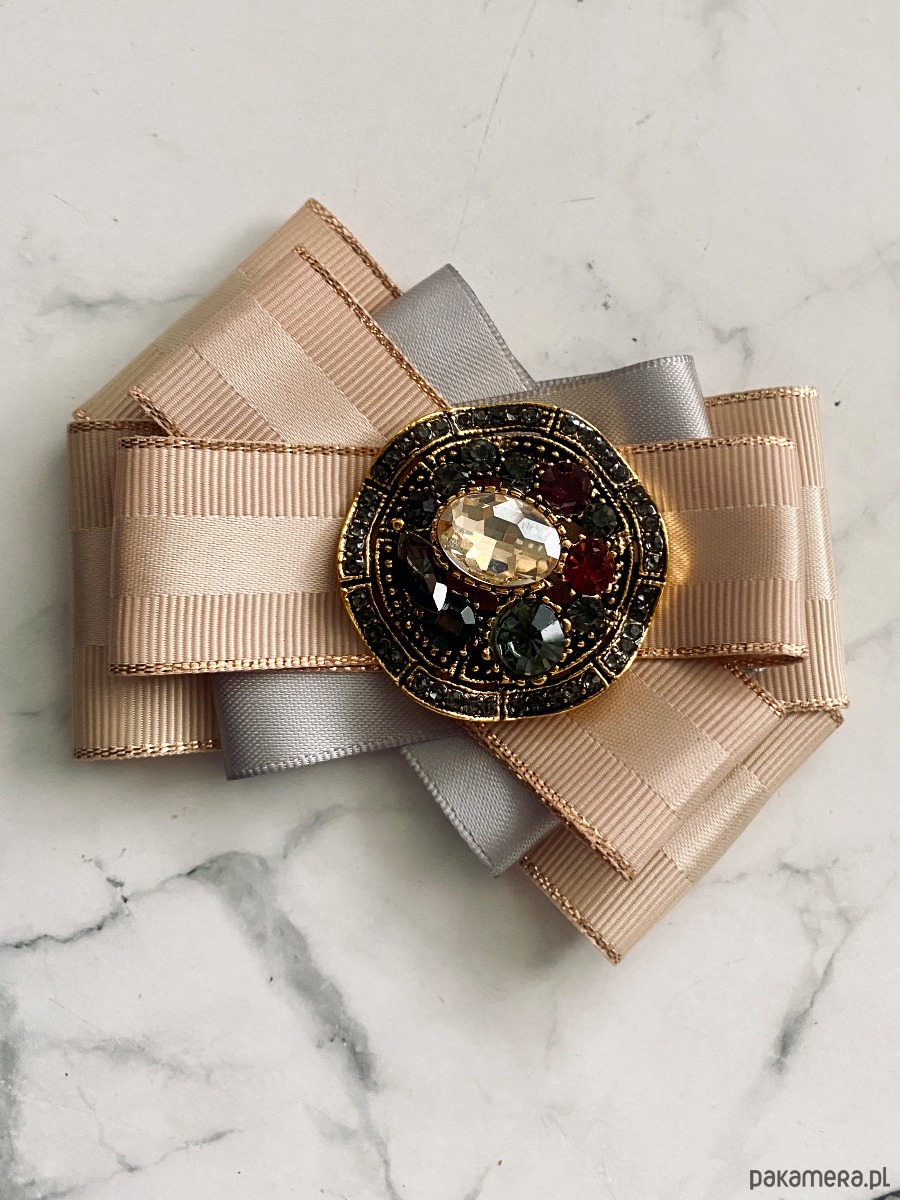 Broszka wykonana z wysokiej jakości taśm i dodatków.