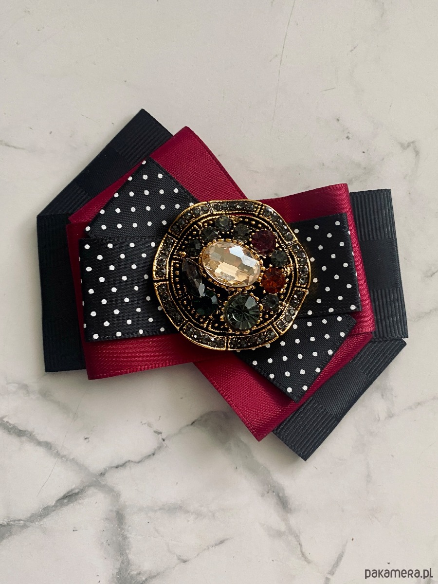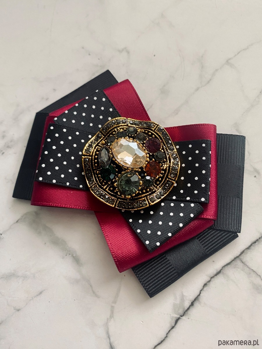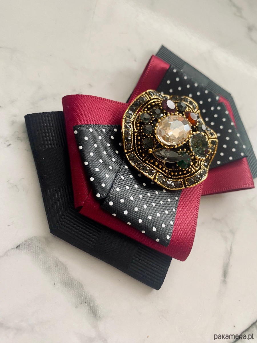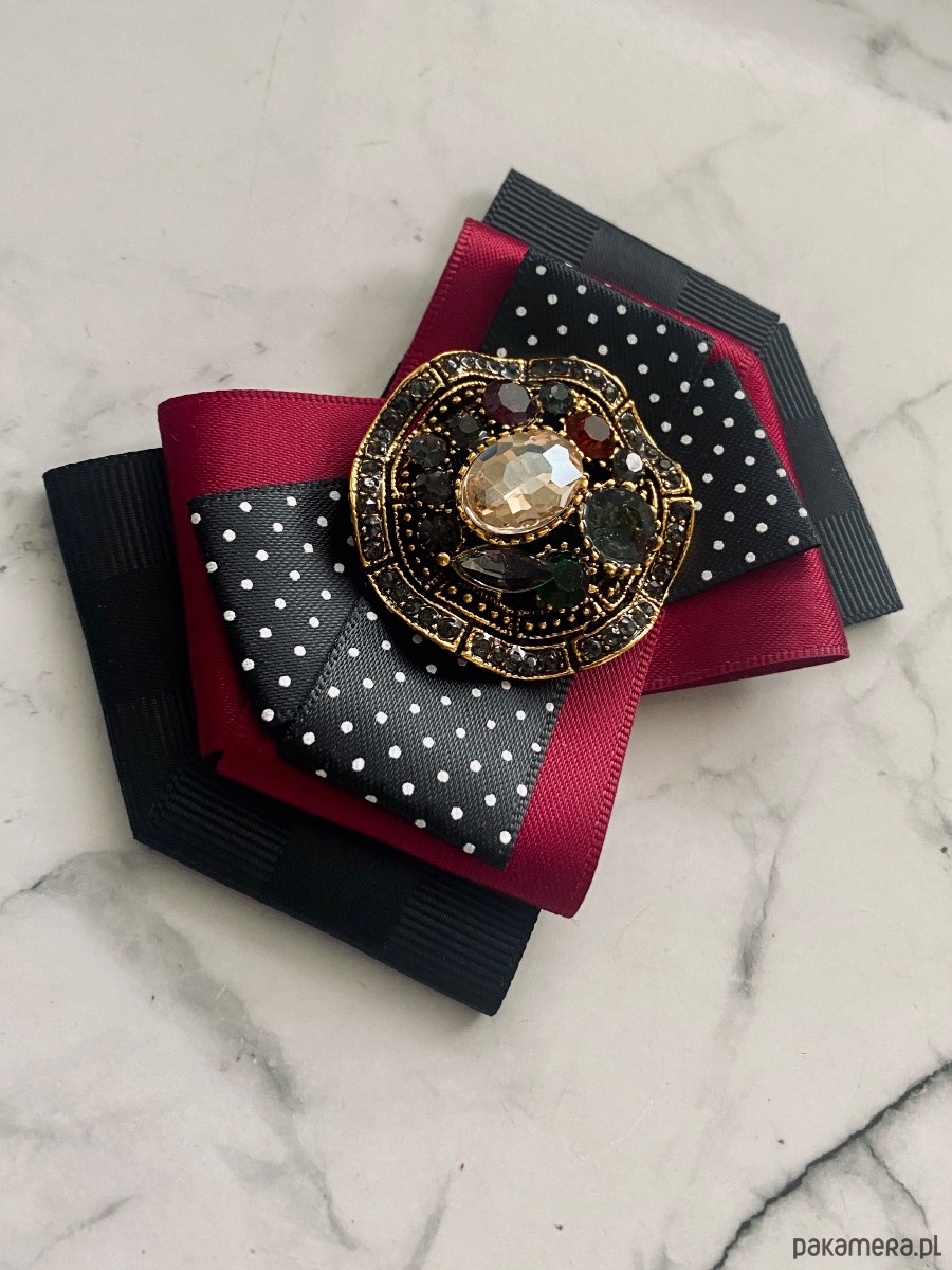 Broszka wykonana z wysokiej jakości taśm i dodatków.
