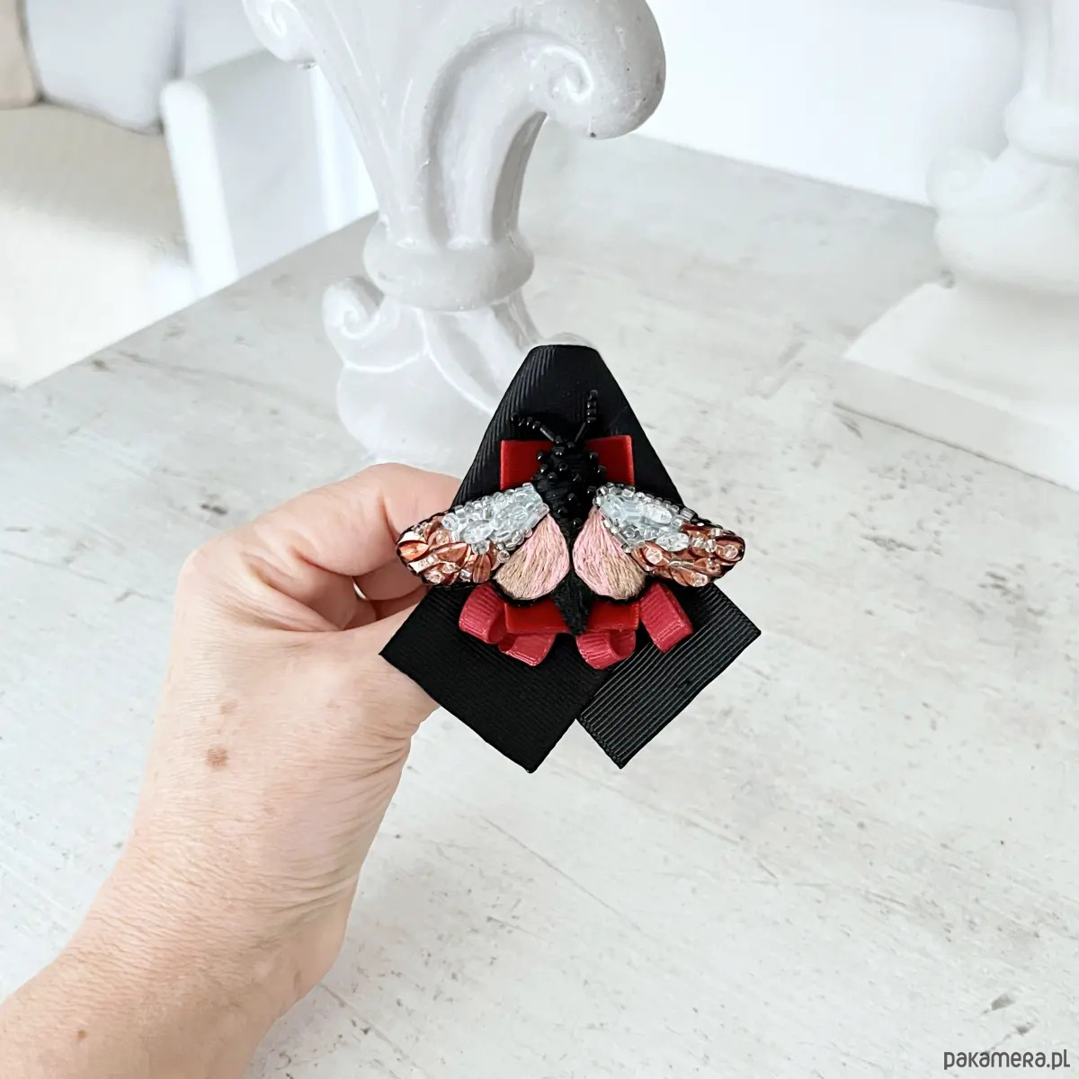 Broszka ART ĆMA 1 ręcznie haftowana przypinka owady koraliki