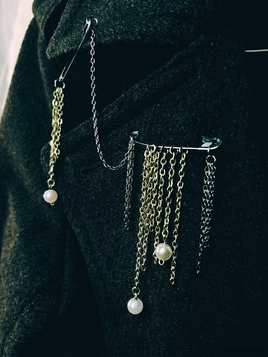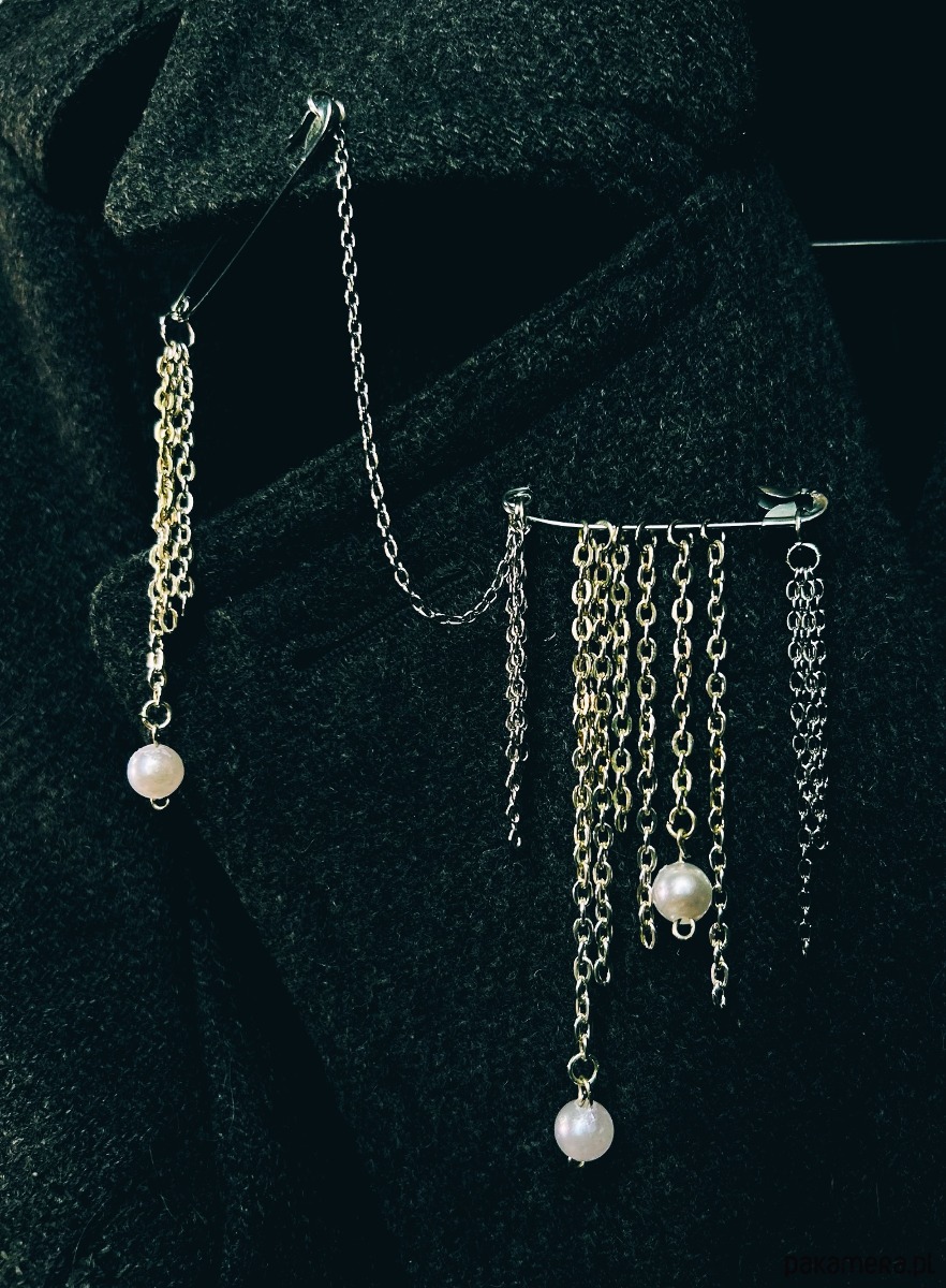 Broszka wykonana ręcznie na bazie klasycznej agrafki.