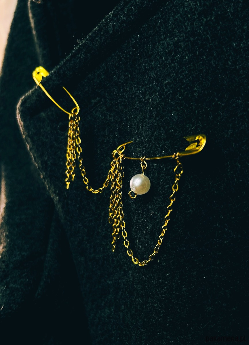 Broszka handmade na agrafce złota biżuteria artystyczna slow fashion
