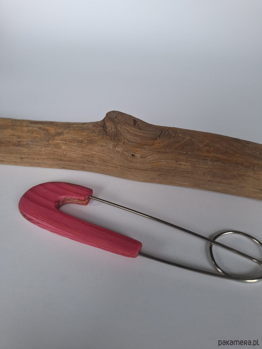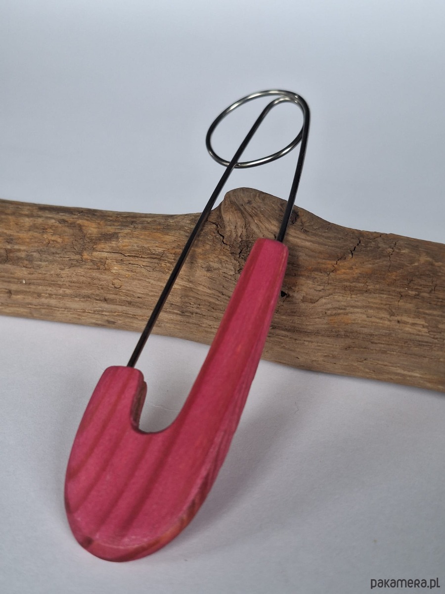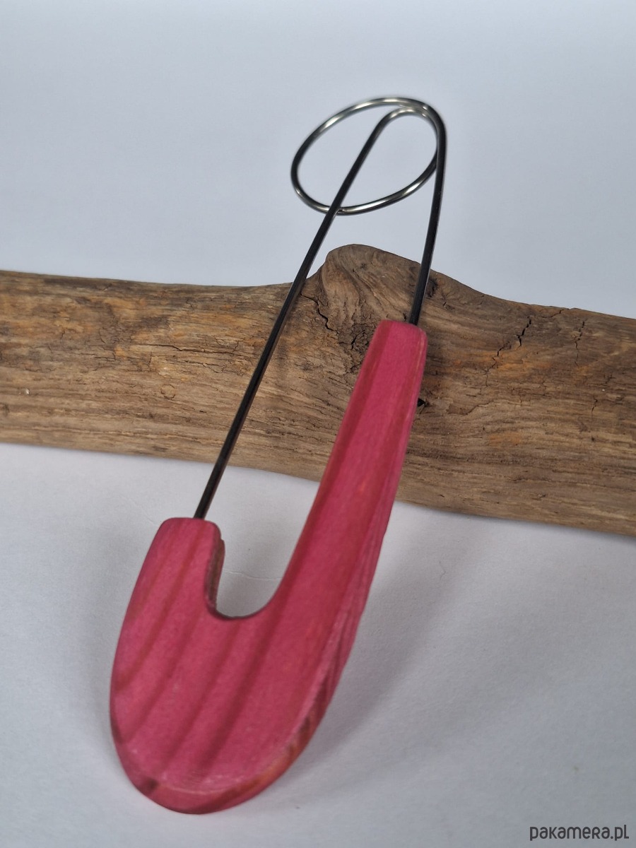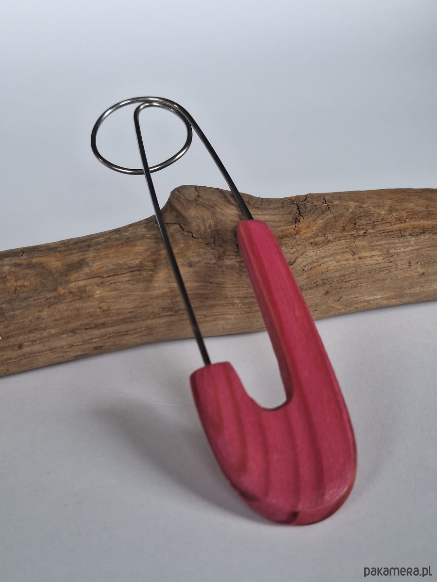 Agrafki wykonane z różnych gatunków drewna. W różnych kolorach, czarnym, czerwonym, zielonym, niebieskim lub niewyraźnym kolorze drewna.