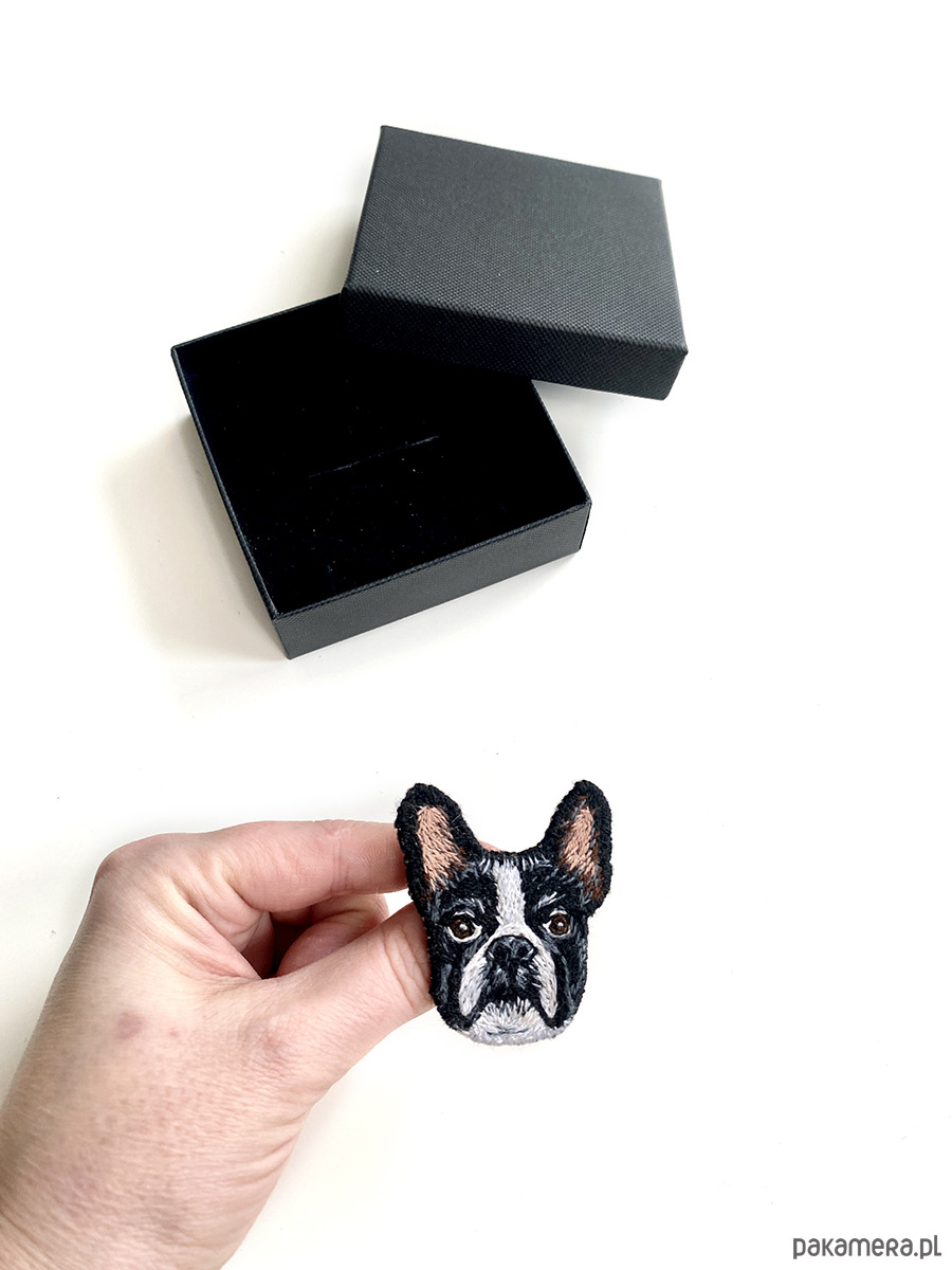 Broszka Buldożek UNIKAT - haft ręczny