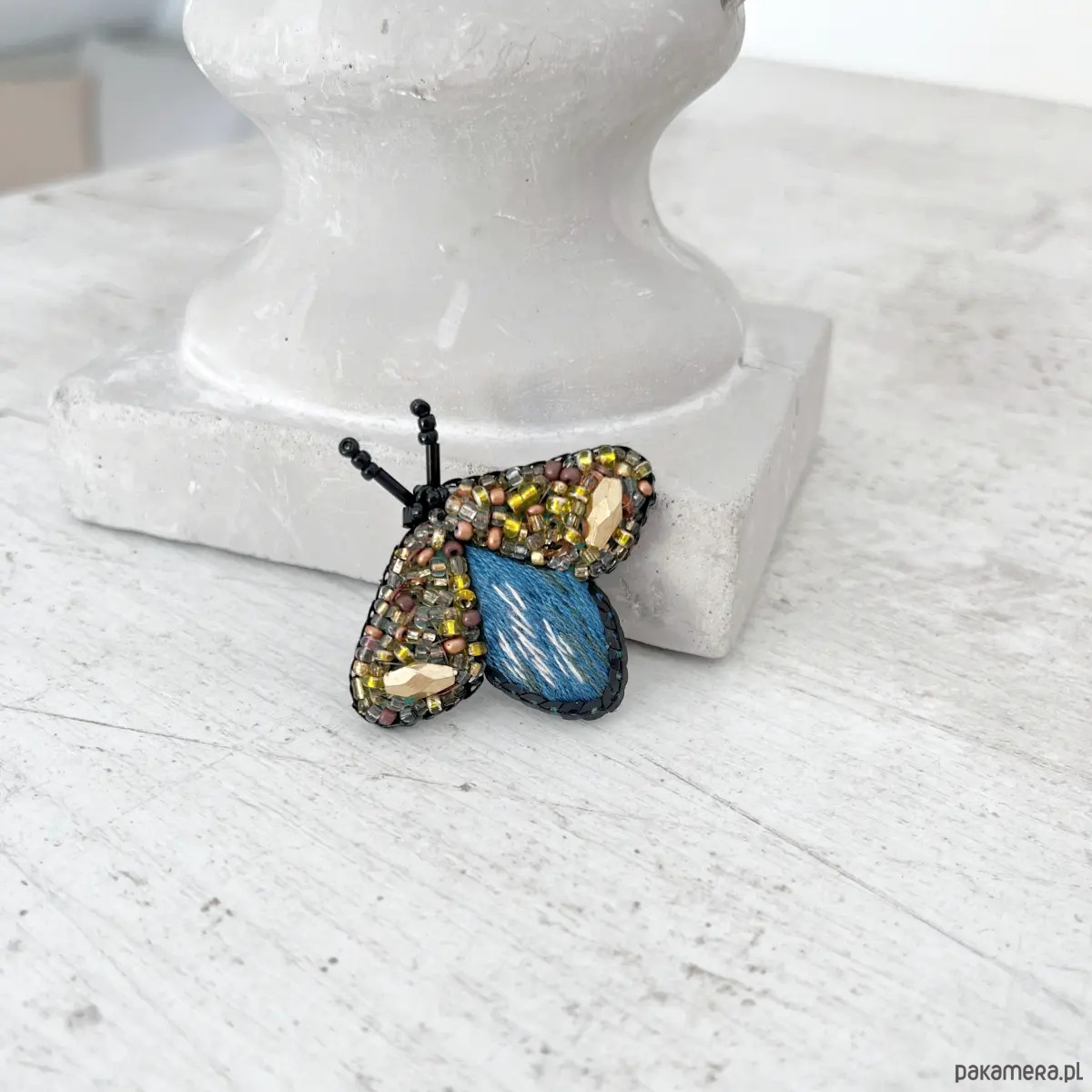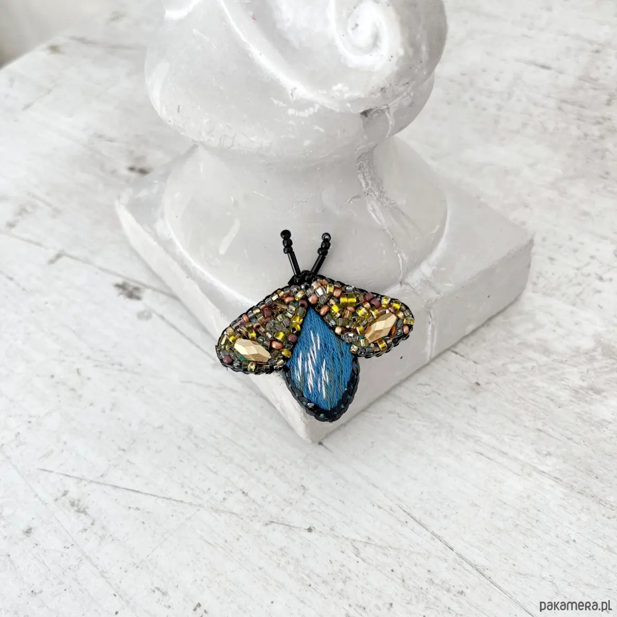 Broszka BZYK 34 ręcznie haftowana przypinka owady koraliki