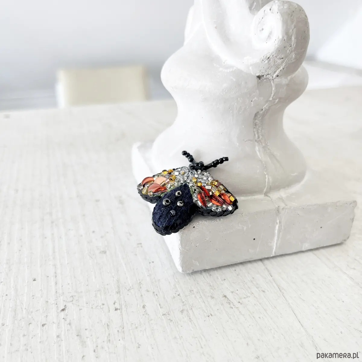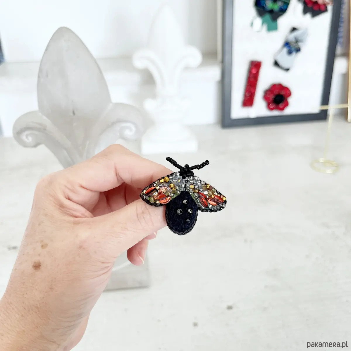 Broszka BZYK 4 ręcznie haftowana przypinka owady koraliki dzień kobiet