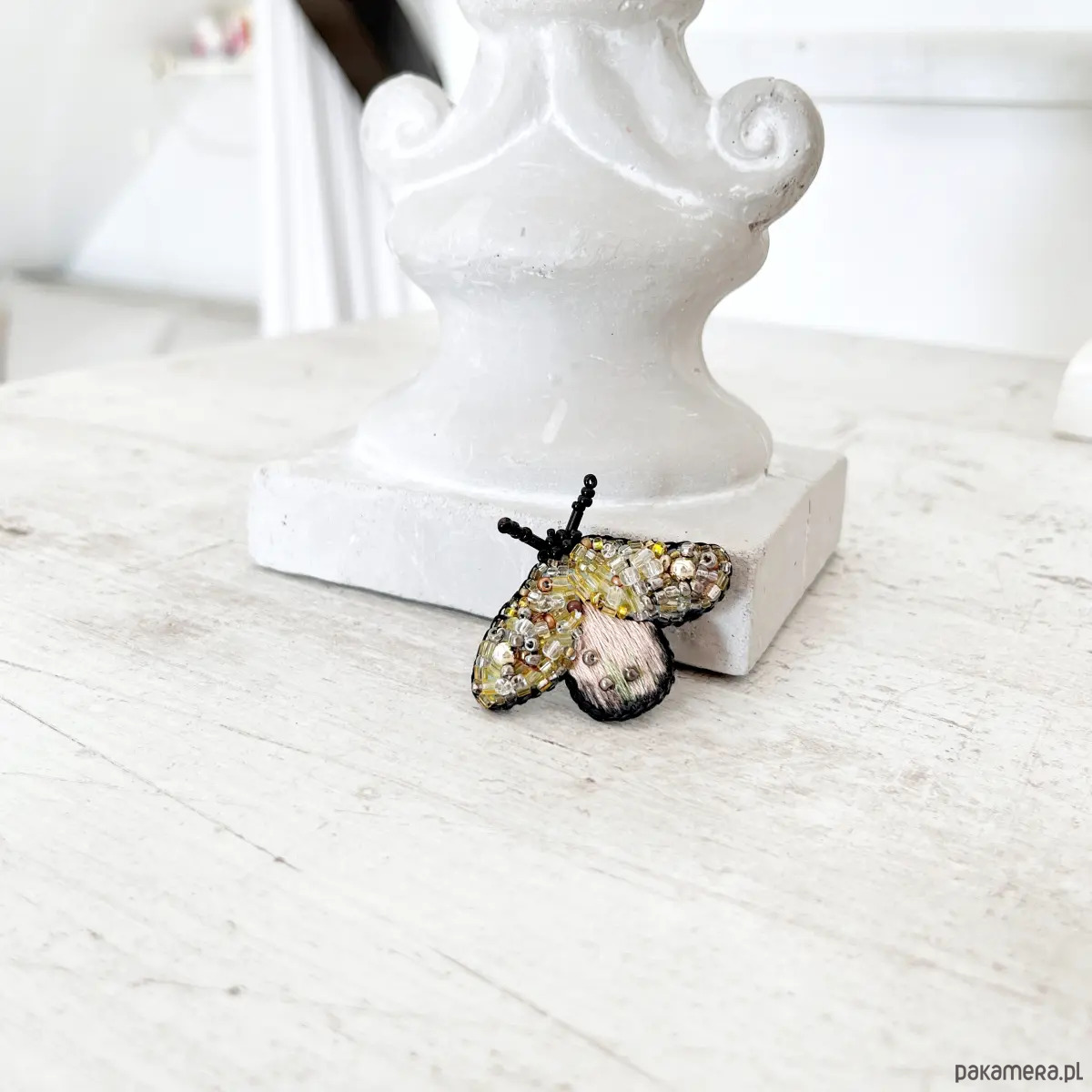 Broszka BZYK 47 ręcznie haftowana przypinka owady koraliki dzień kobiet