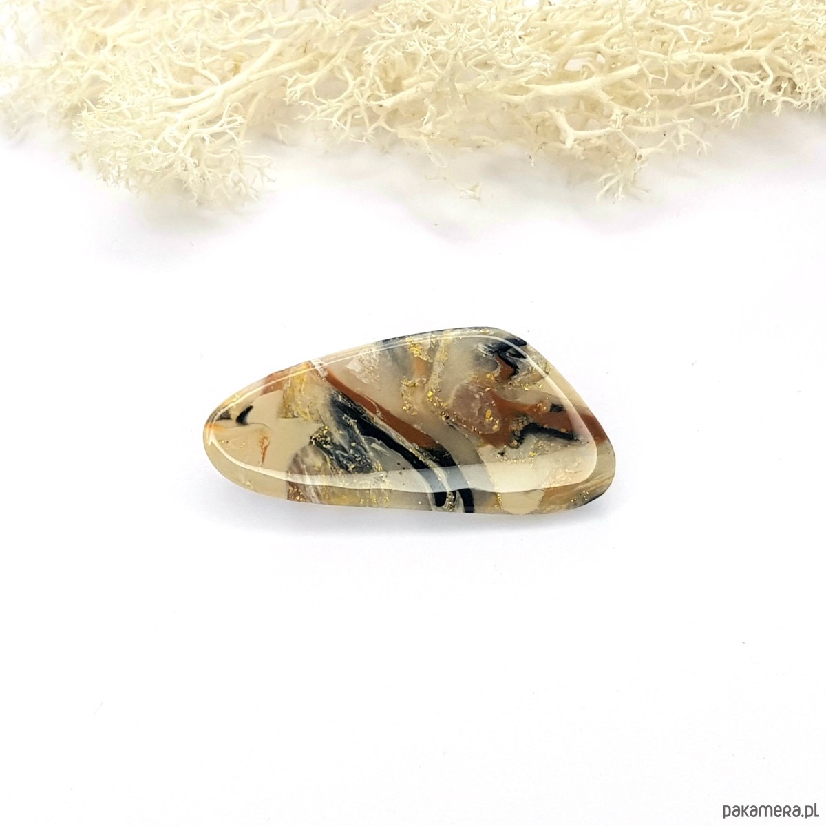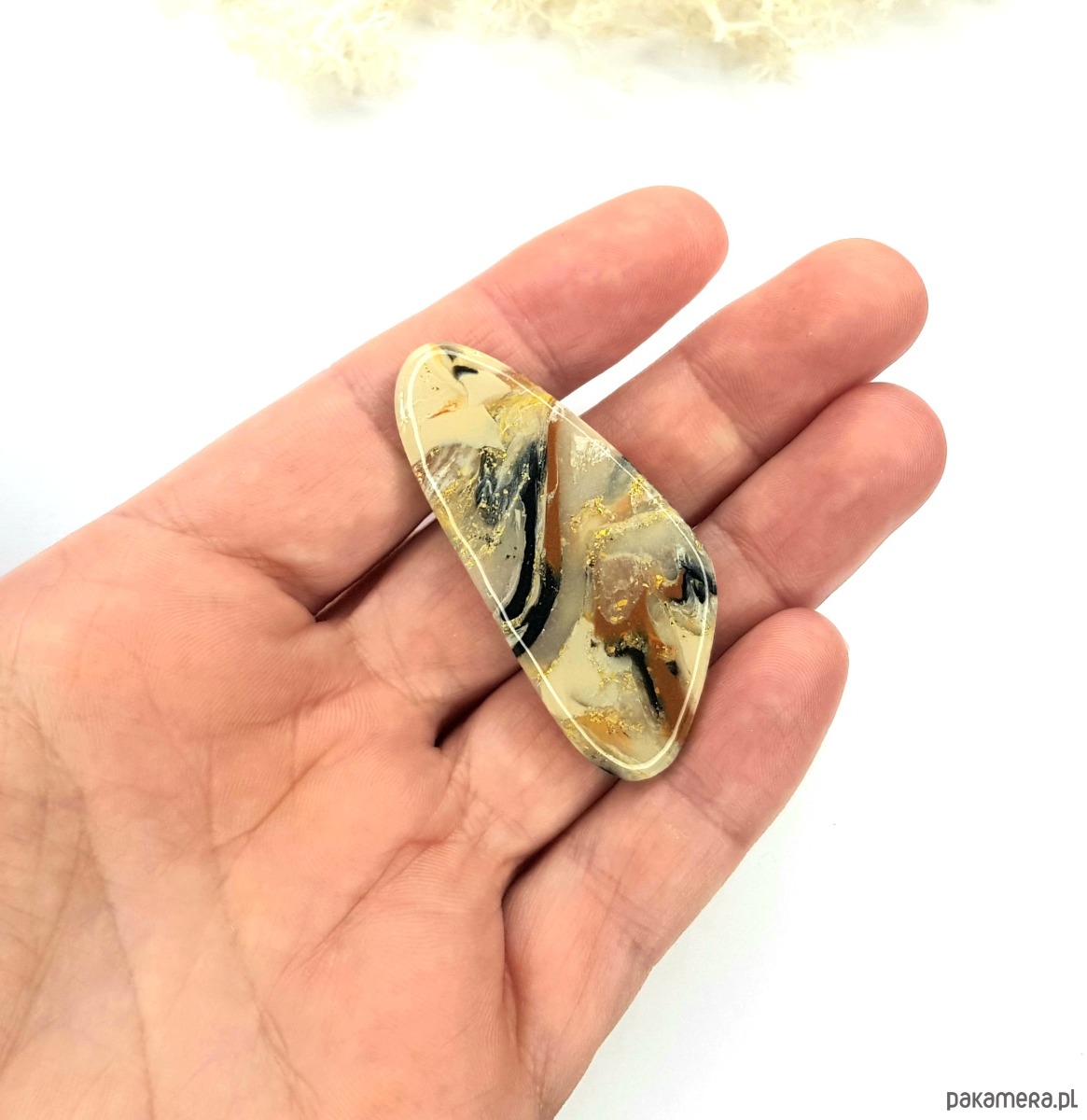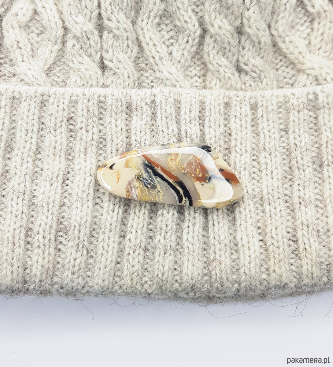 Ręcznie robiona broszka z gliny polimerowej dodatkowo polakierowana żywicą epoksydową.