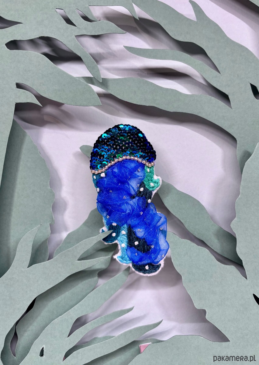 Jej galaretowate ciałko wciąż chłonie świetlne promienie, migocząc w algowozielonym i niebieskim odcieniu.
