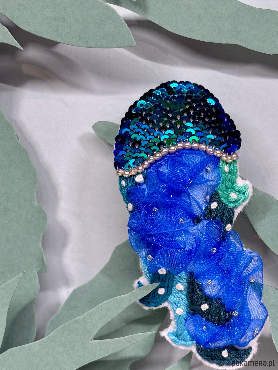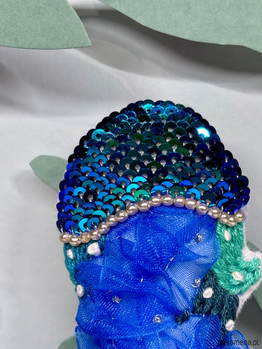 Inkrustowana metaliczną srebrną nicią i szklanymi perełkami cierpliwie czeka, aż będzie mogła komuś sprezentować ich blask.