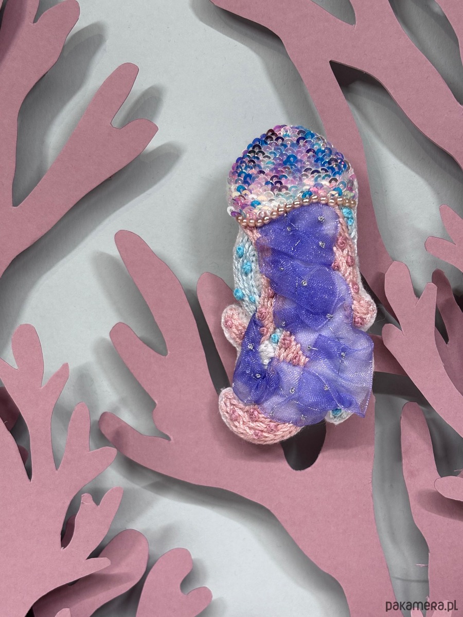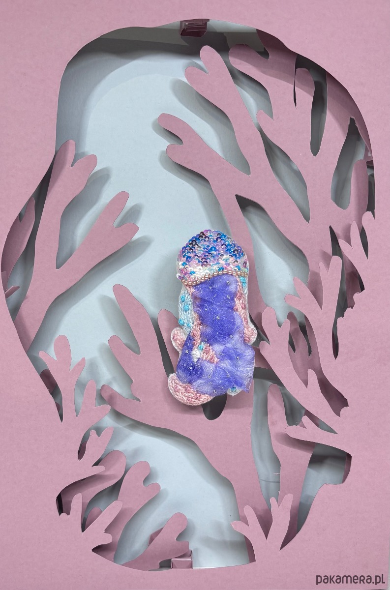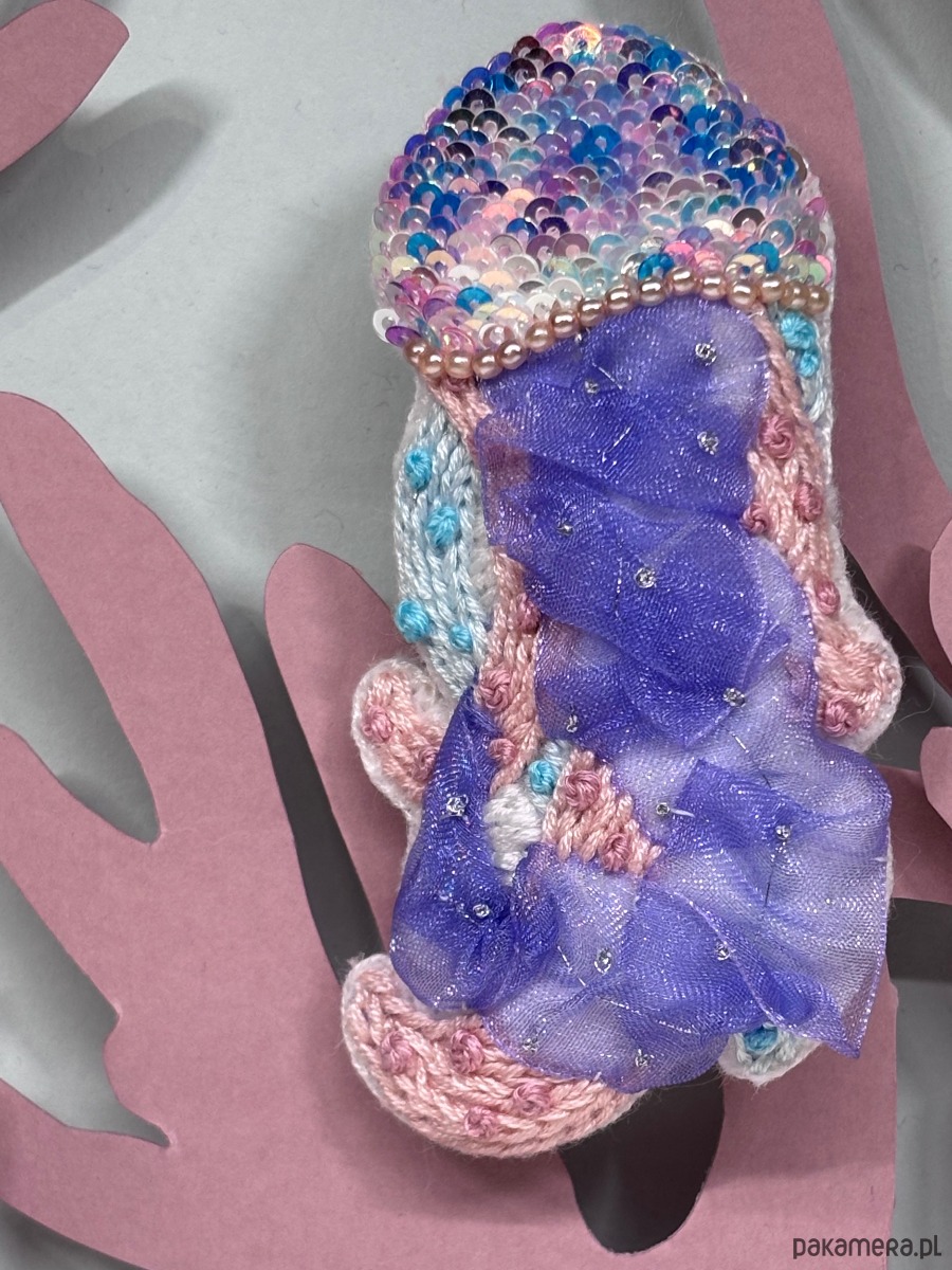 Inkrustowana metaliczną srebrną nicią i szklanymi perełkami cierpliwie czeka, aż będzie mogła komuś sprezentować ich blask.