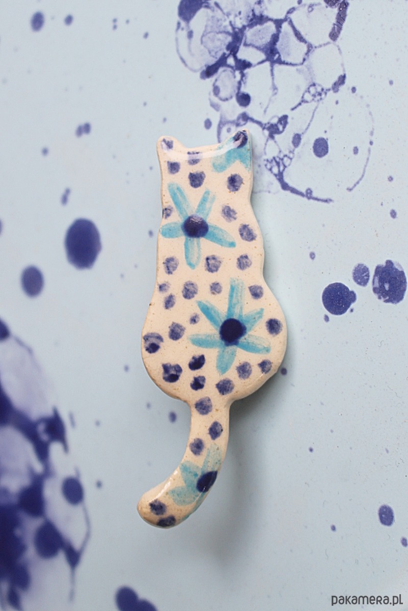 Wzór w niebieskie kwiatki i granatowe kropki.